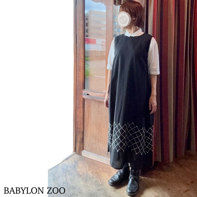 blue willowのコットンリネンノースリーブ刺繍ワンピース・千鳥