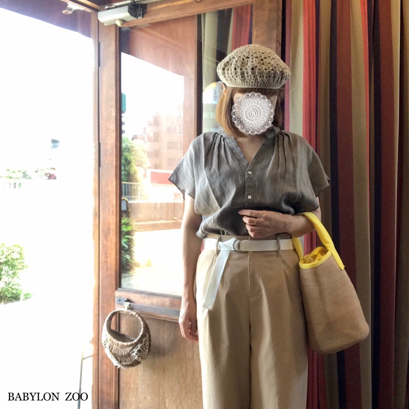 トップスをインして白いベルトでアクセントづけして下さいね!