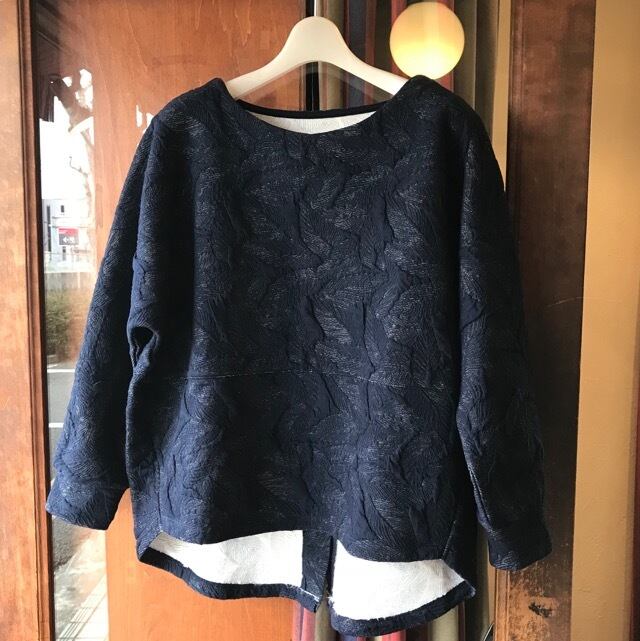 トレーナーよりやや薄手くらいの厚さで、後ろだけ丈が長くなったデザインです。