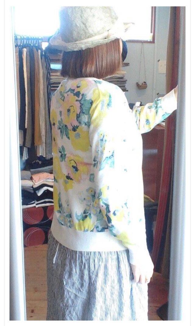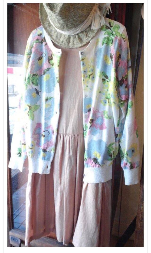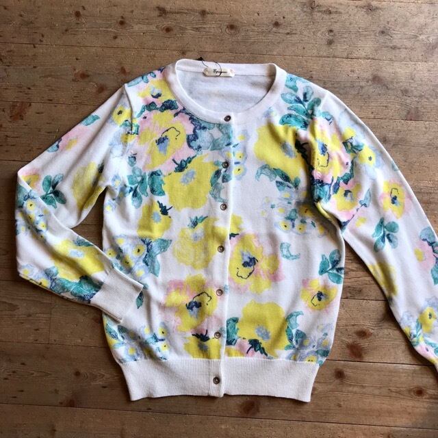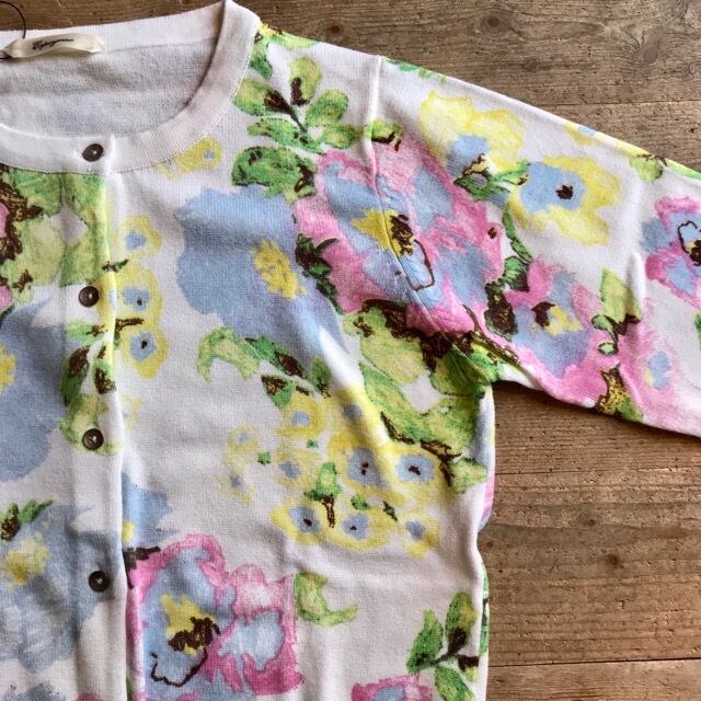 春のコーデにぴったりな色とりどりのお花が散りばめられているカーディガン。