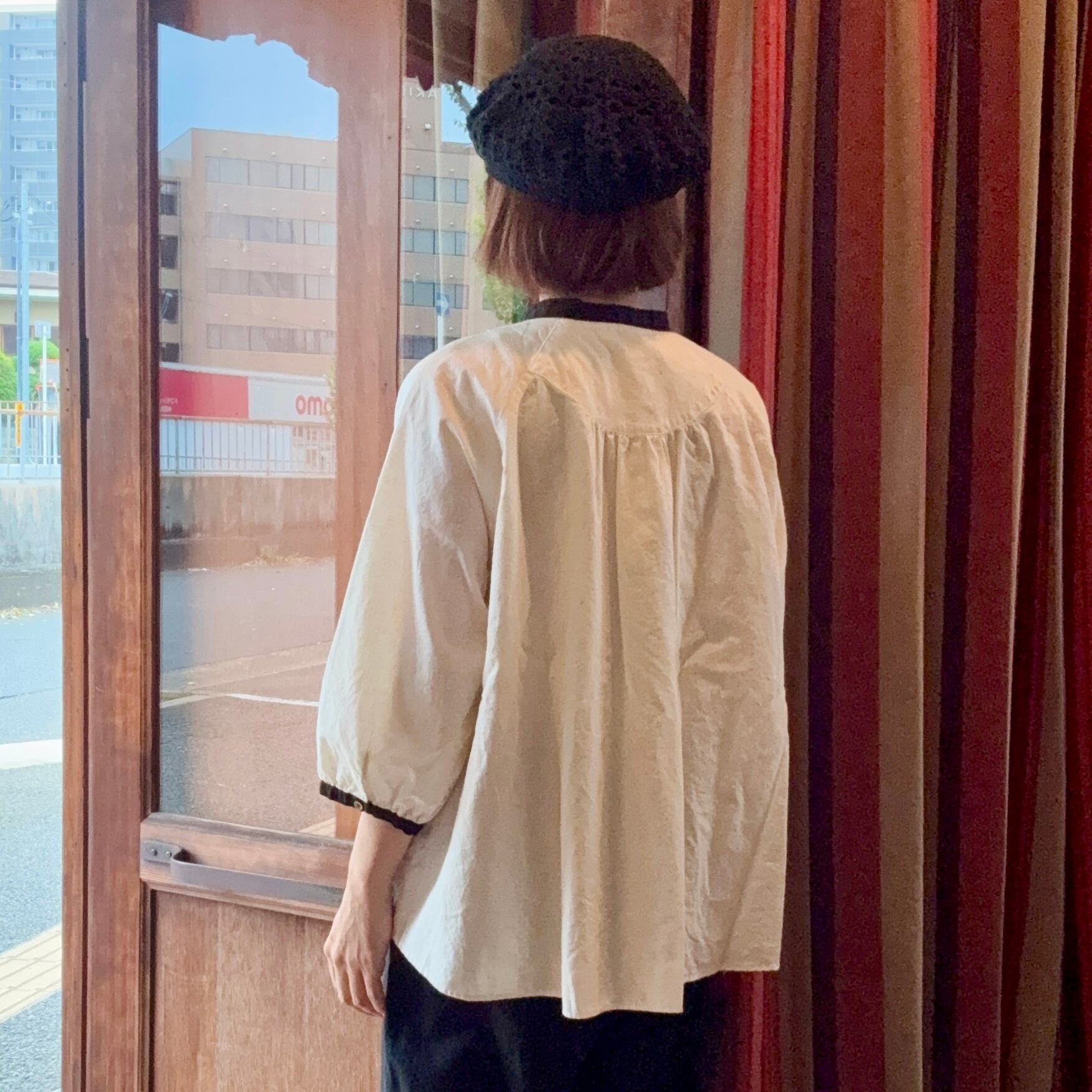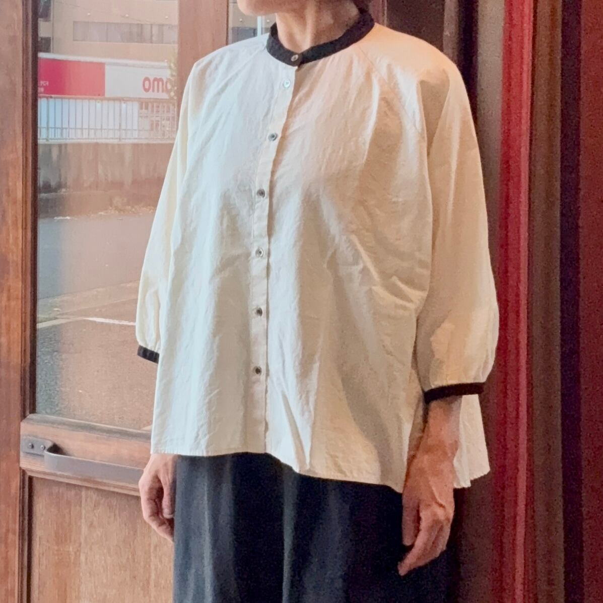 nachukaraのコットンリネンキャンブリックバンドカラーブラウス・ナチュラル