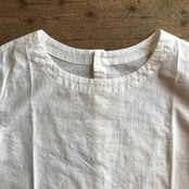 ほどよく開いた首まわりに、ややゆったりとした身幅の着やすいシルエットです。