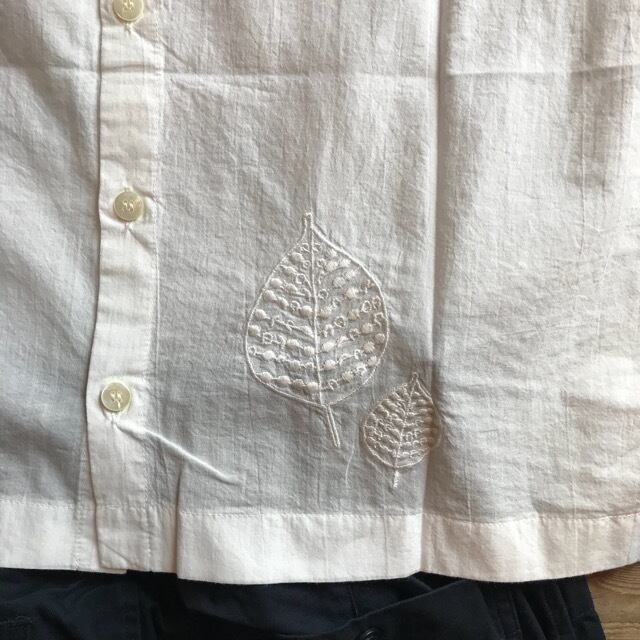 wash washの葉っぱ刺繍 後ろ開きブラウス