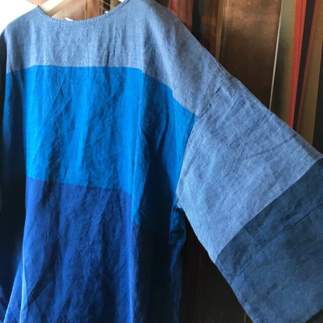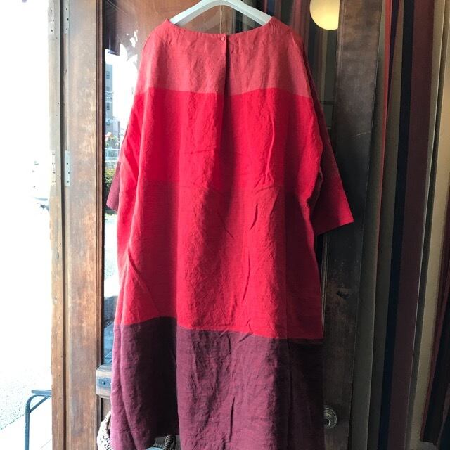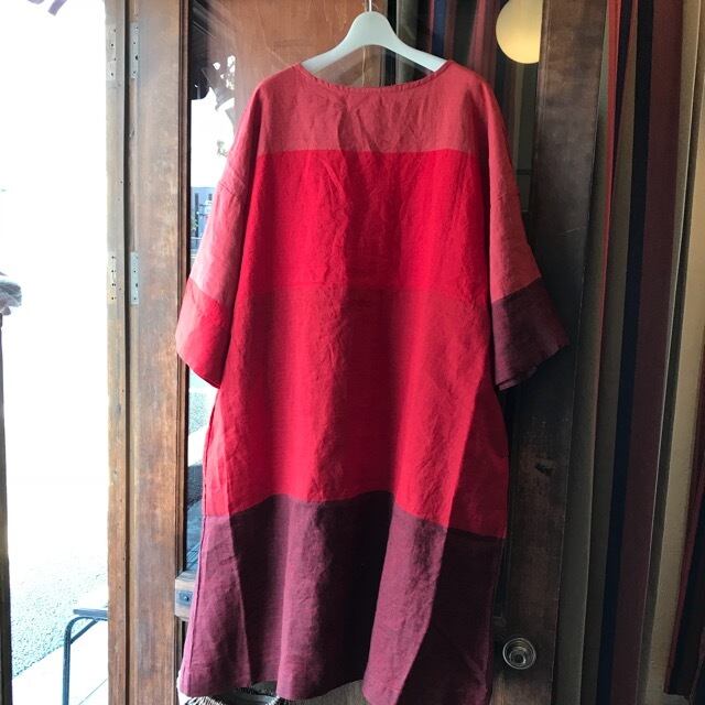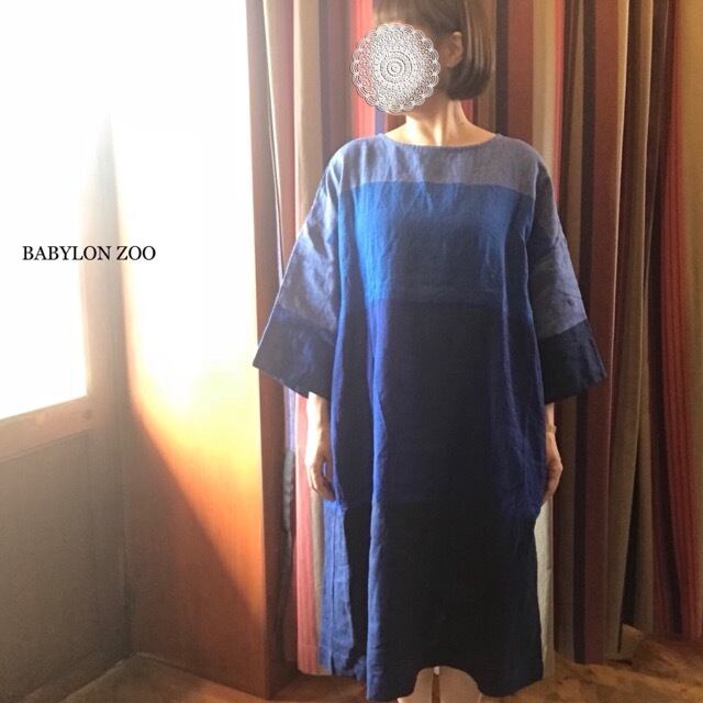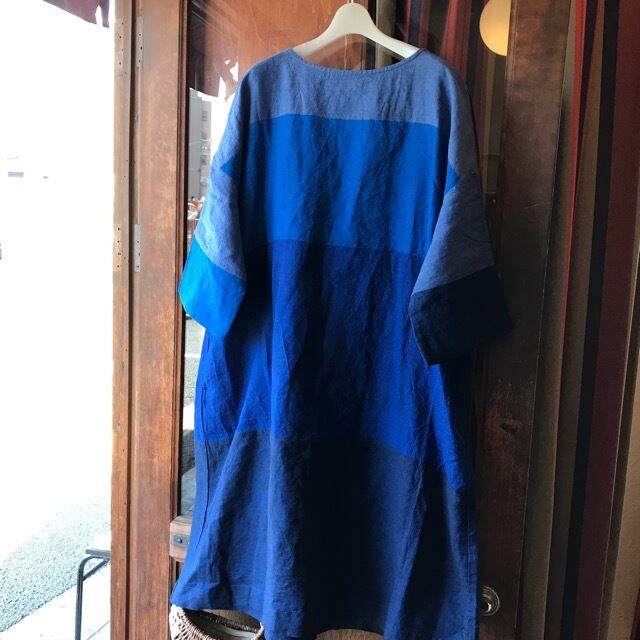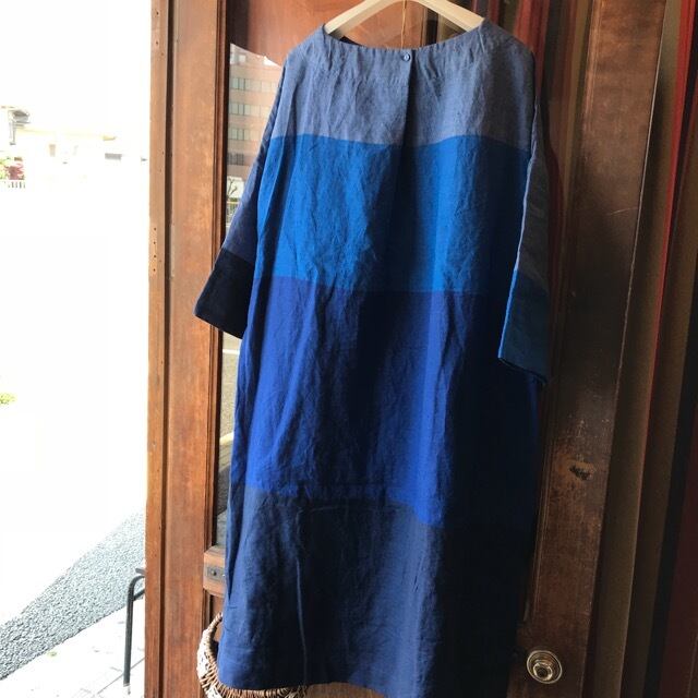 blue willowのグラデーション太ボーダー リネンワンピースです。
