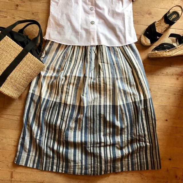はっきりとしたネイビー系のストライプで、涼しげな印象。