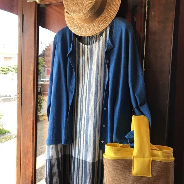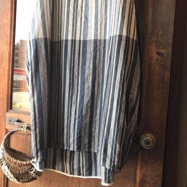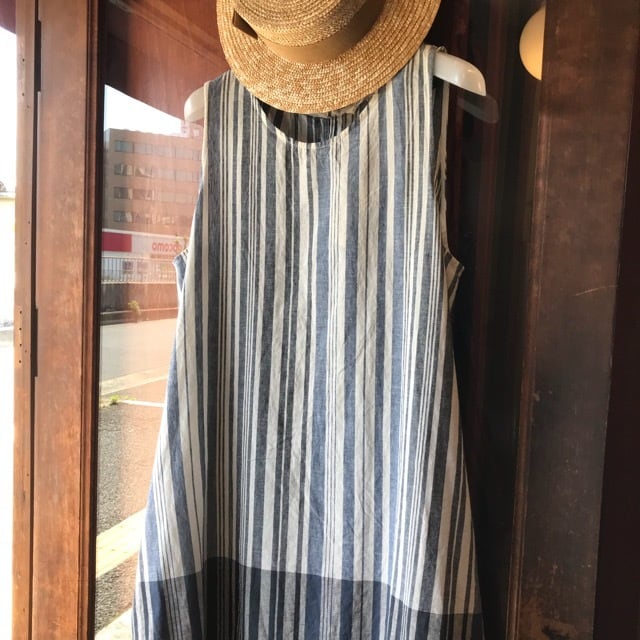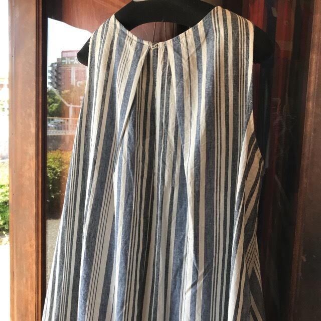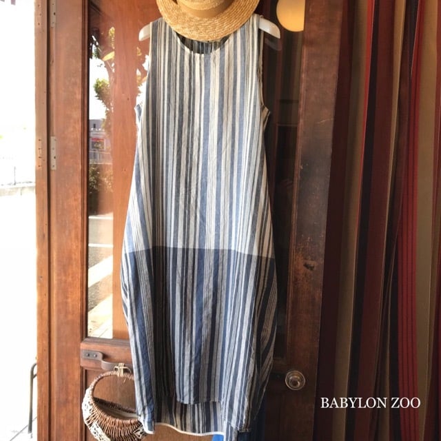 blue willowの大柄ストライプ ノースリーブコクーンワンピースです。