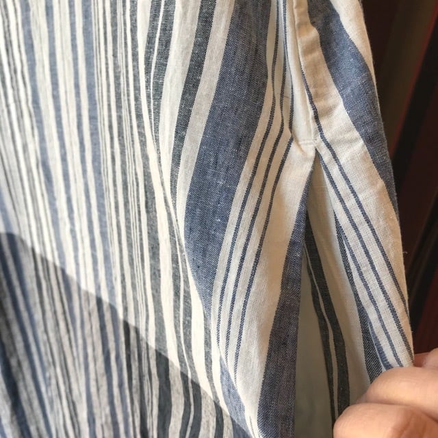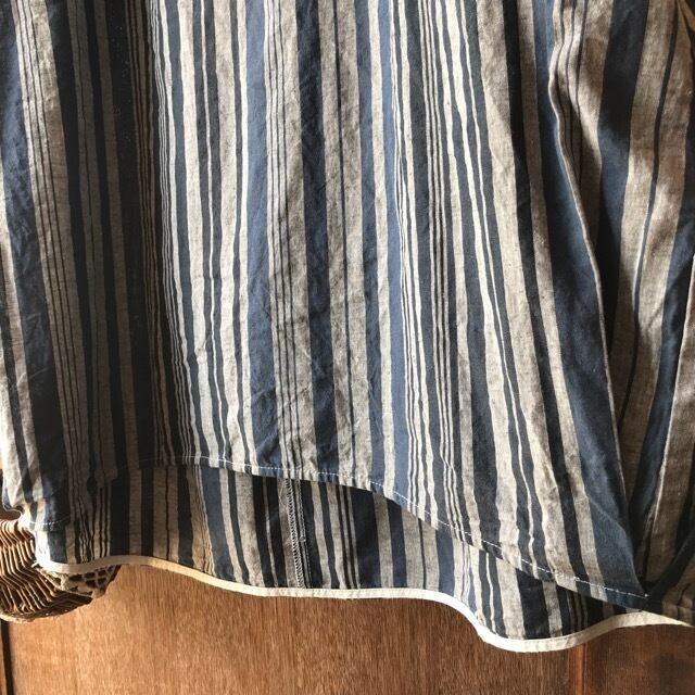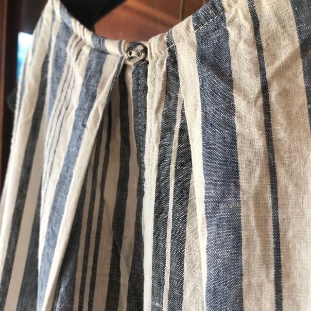 blue willowの大柄ストライプ ノースリーブコクーンワンピース