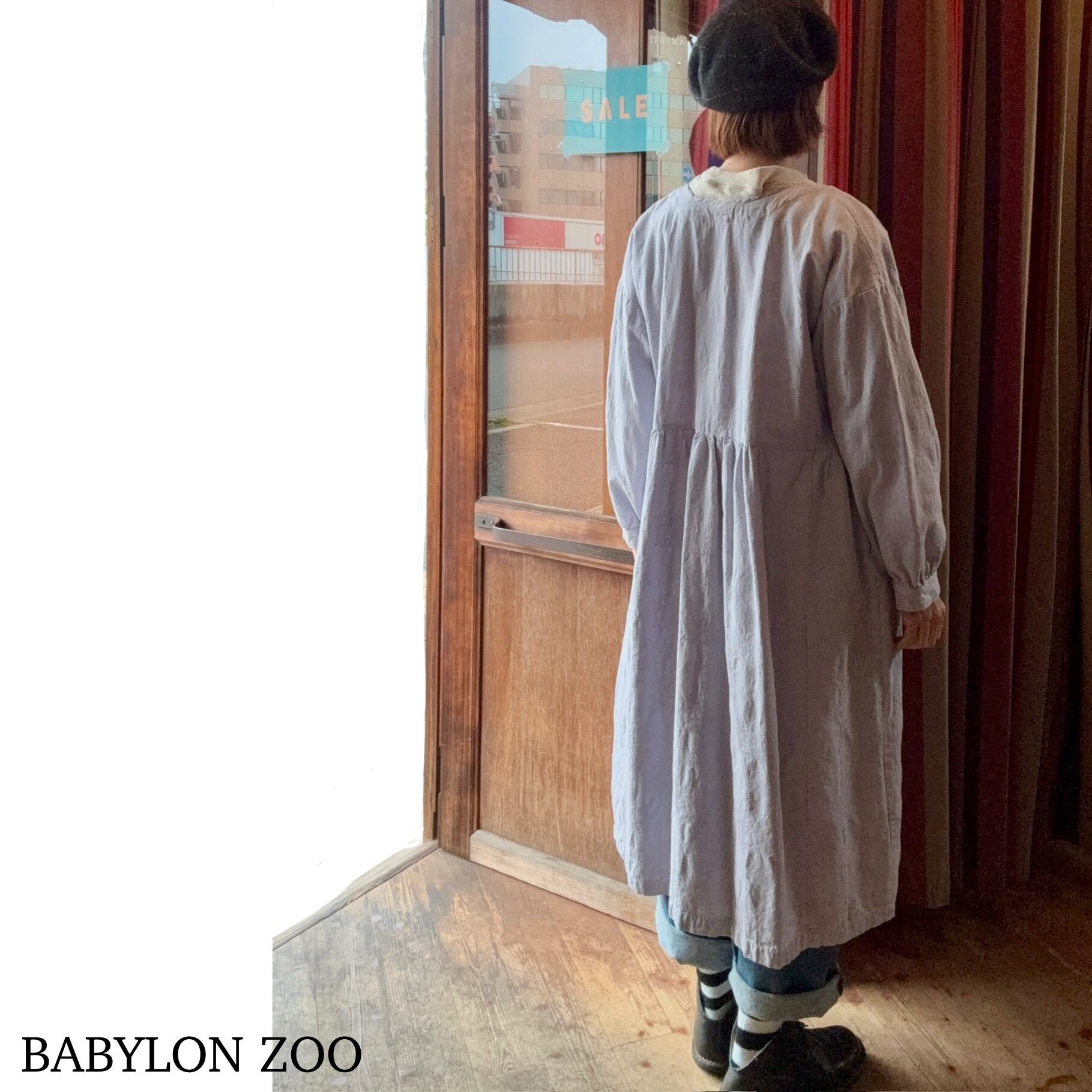 ボタンを留めてワンピースとして。