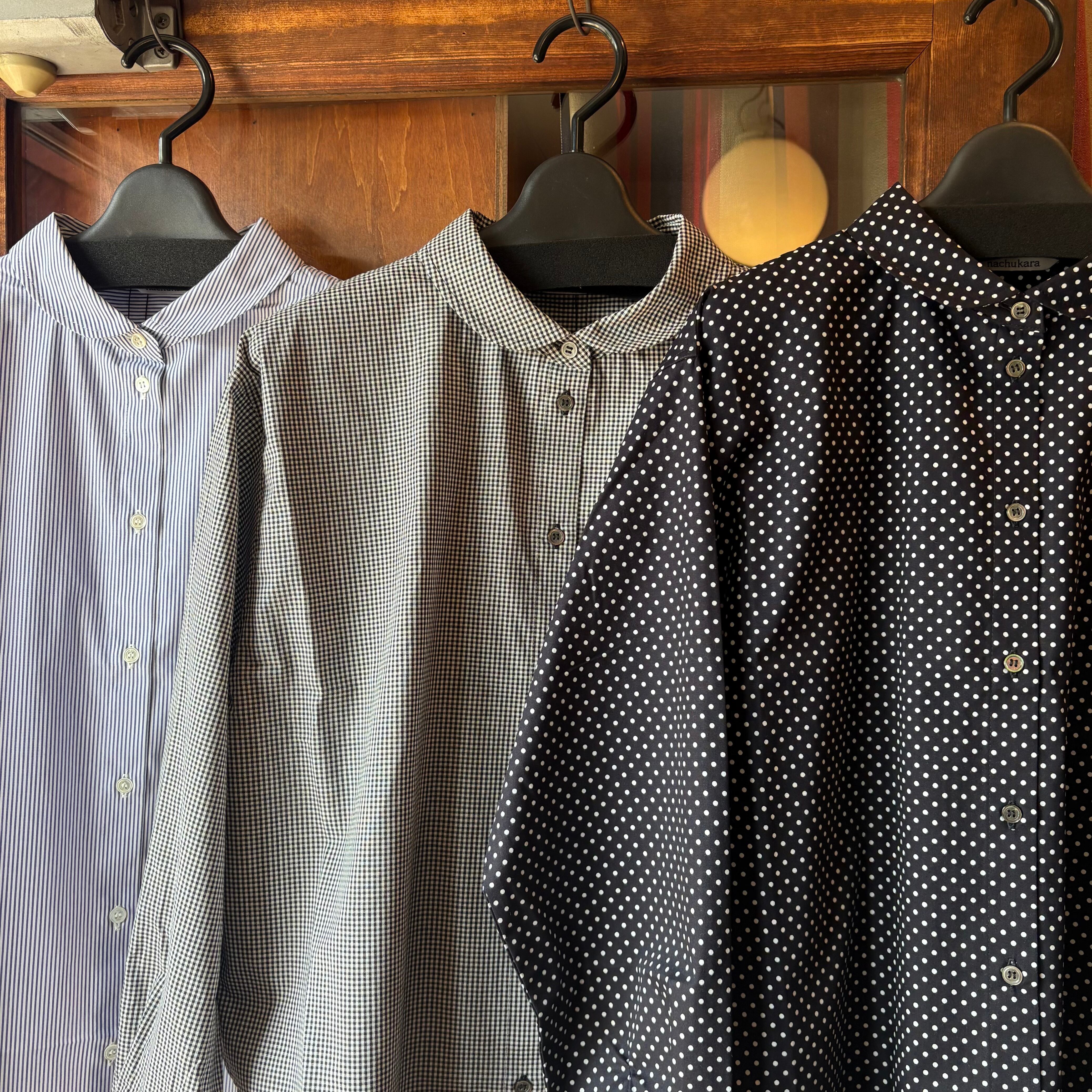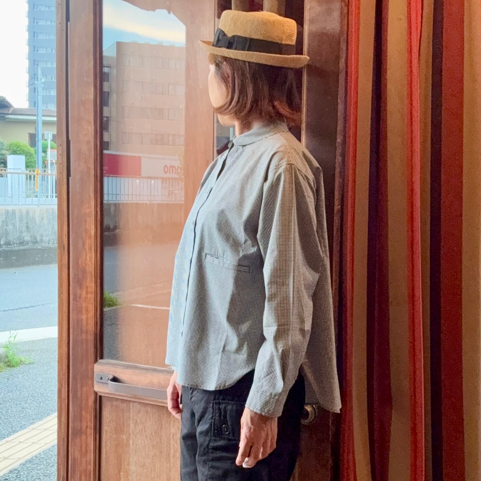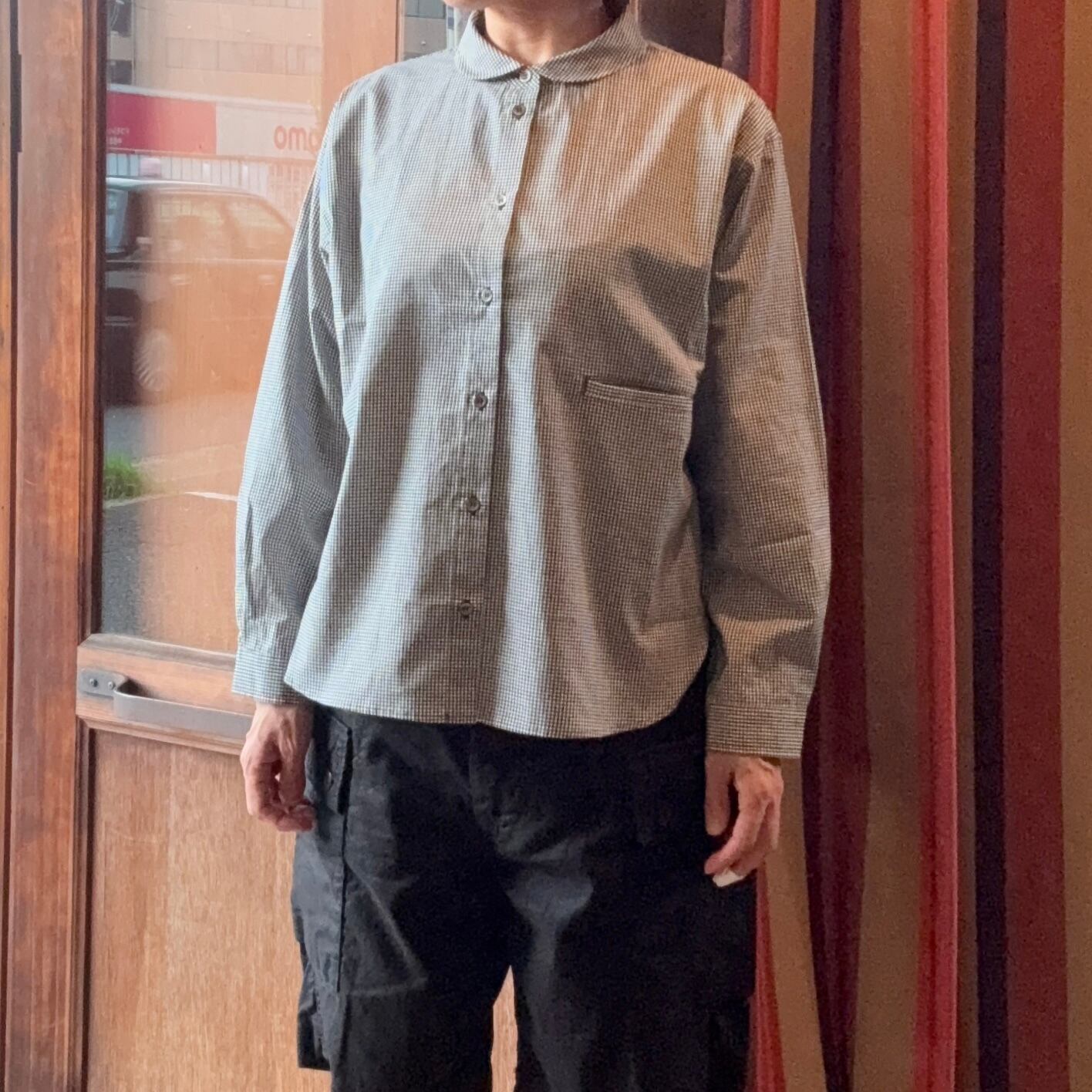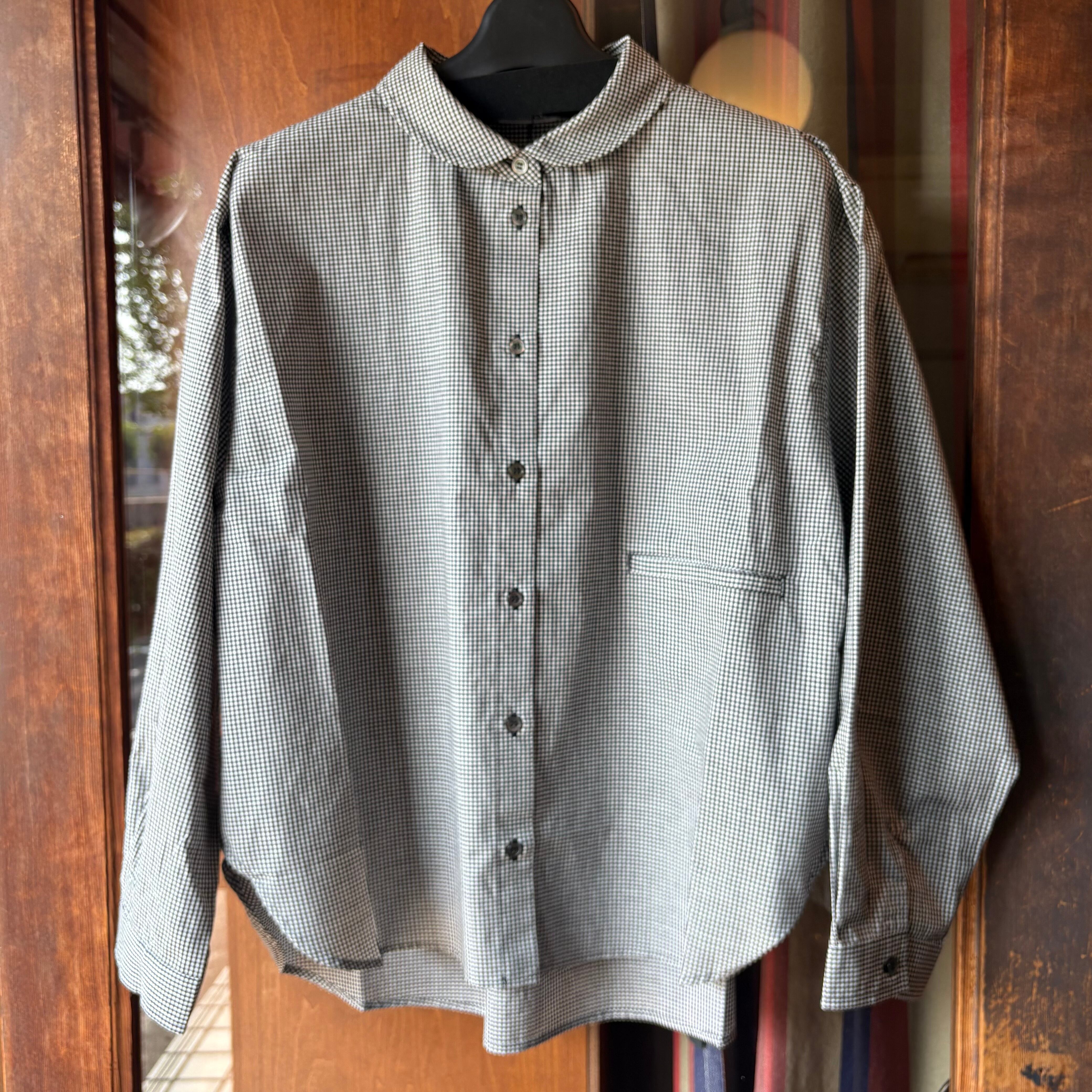 nachukaraのコットンラウンドカラーシャツ(ギンガムチェック)