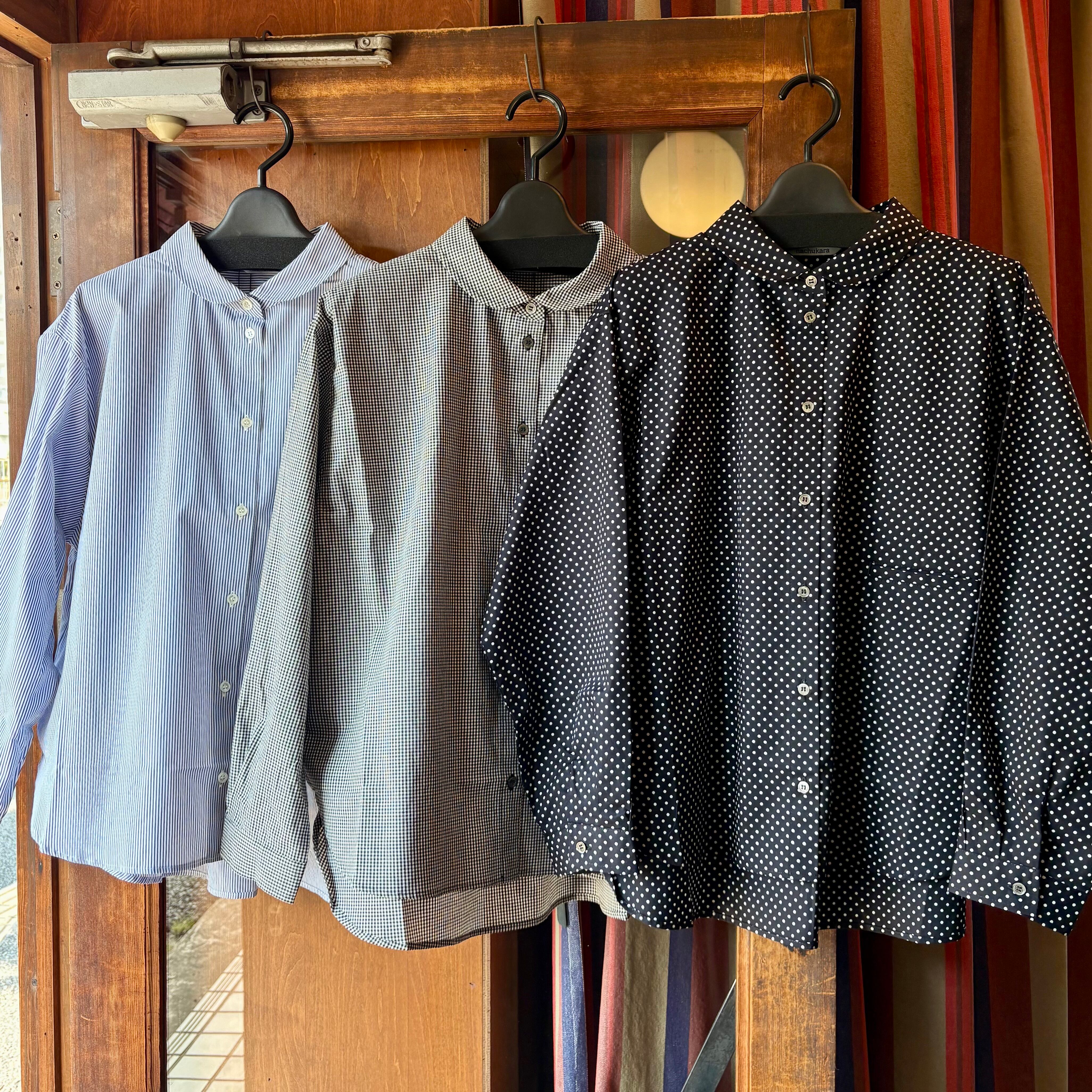 カラー:写真左より)ネイビーストライプ、ブラックギンガムチェック、ブラックドット