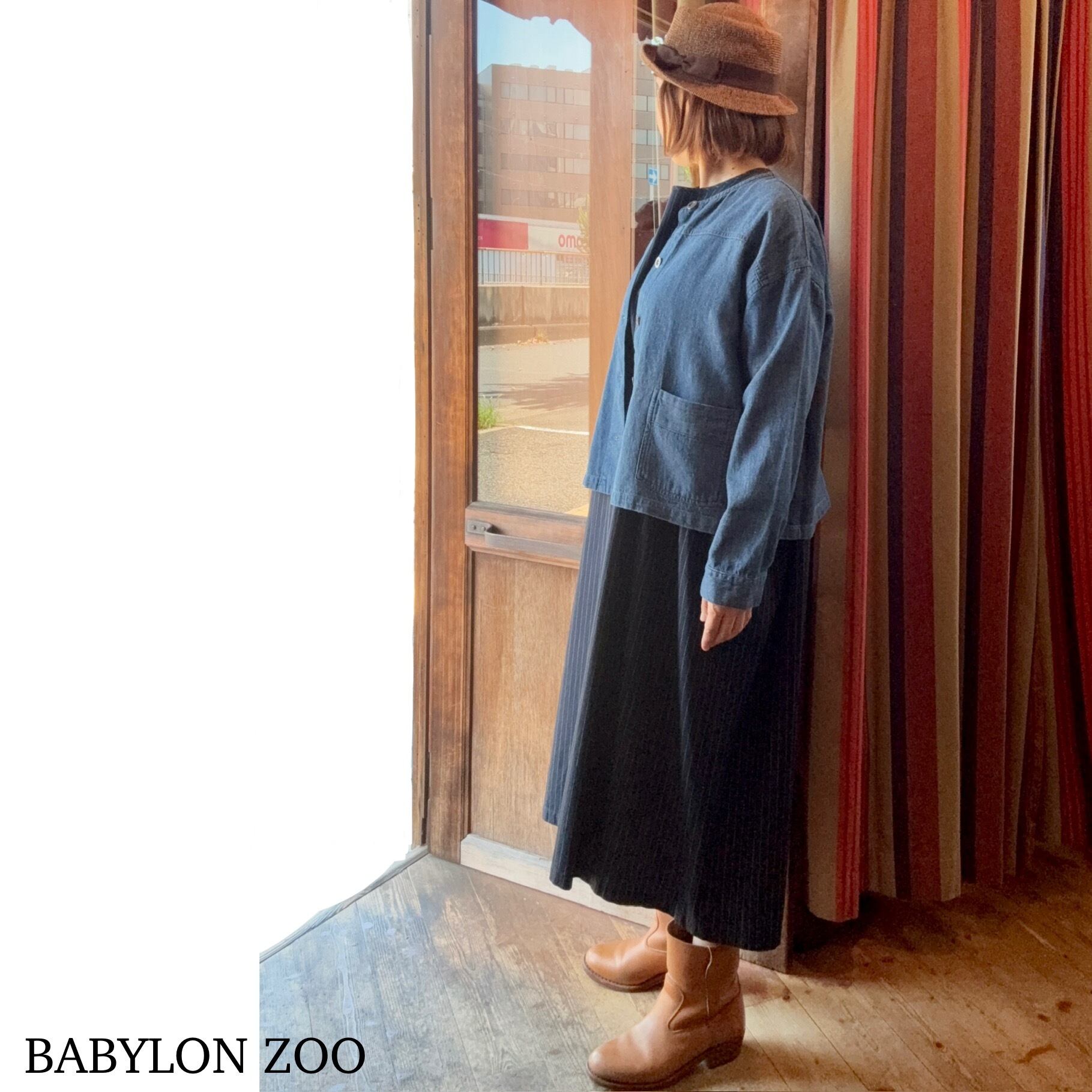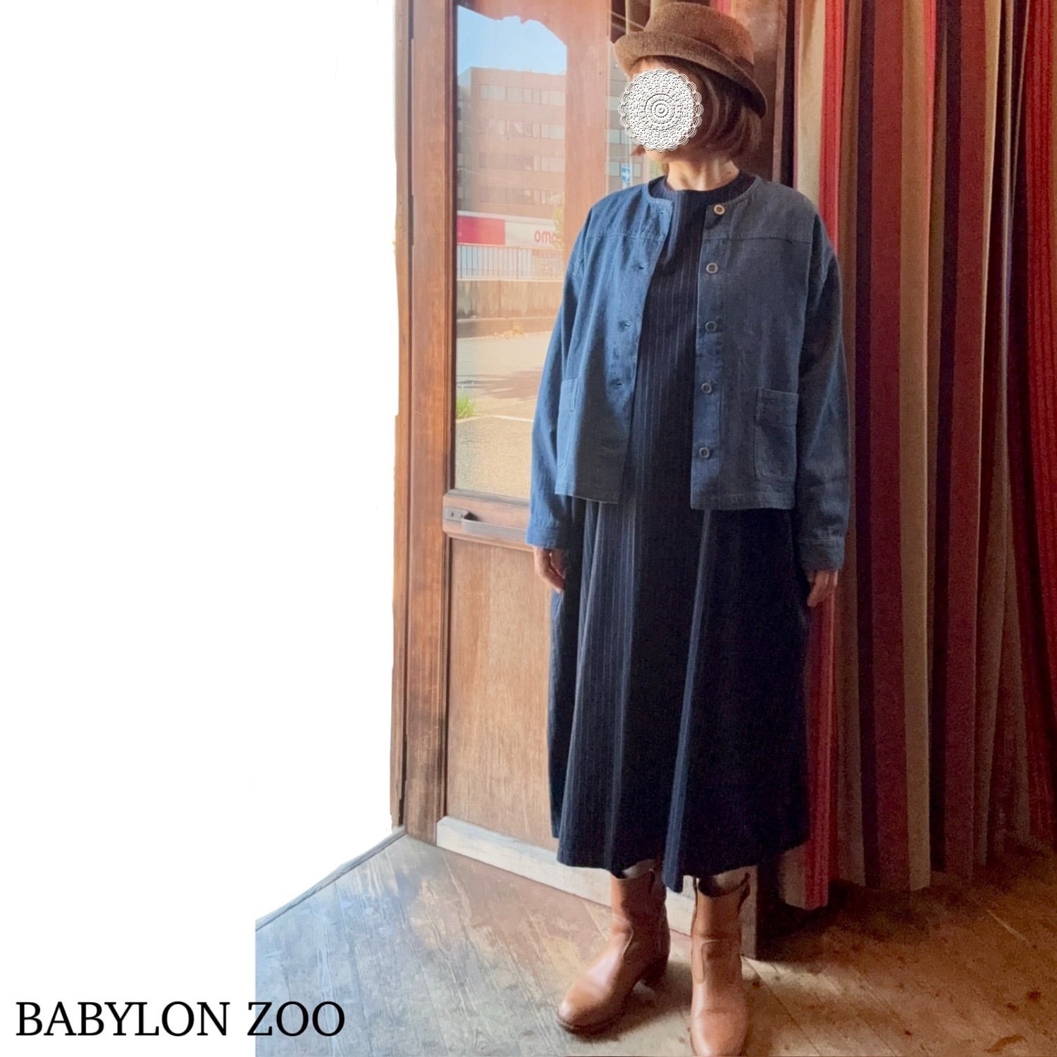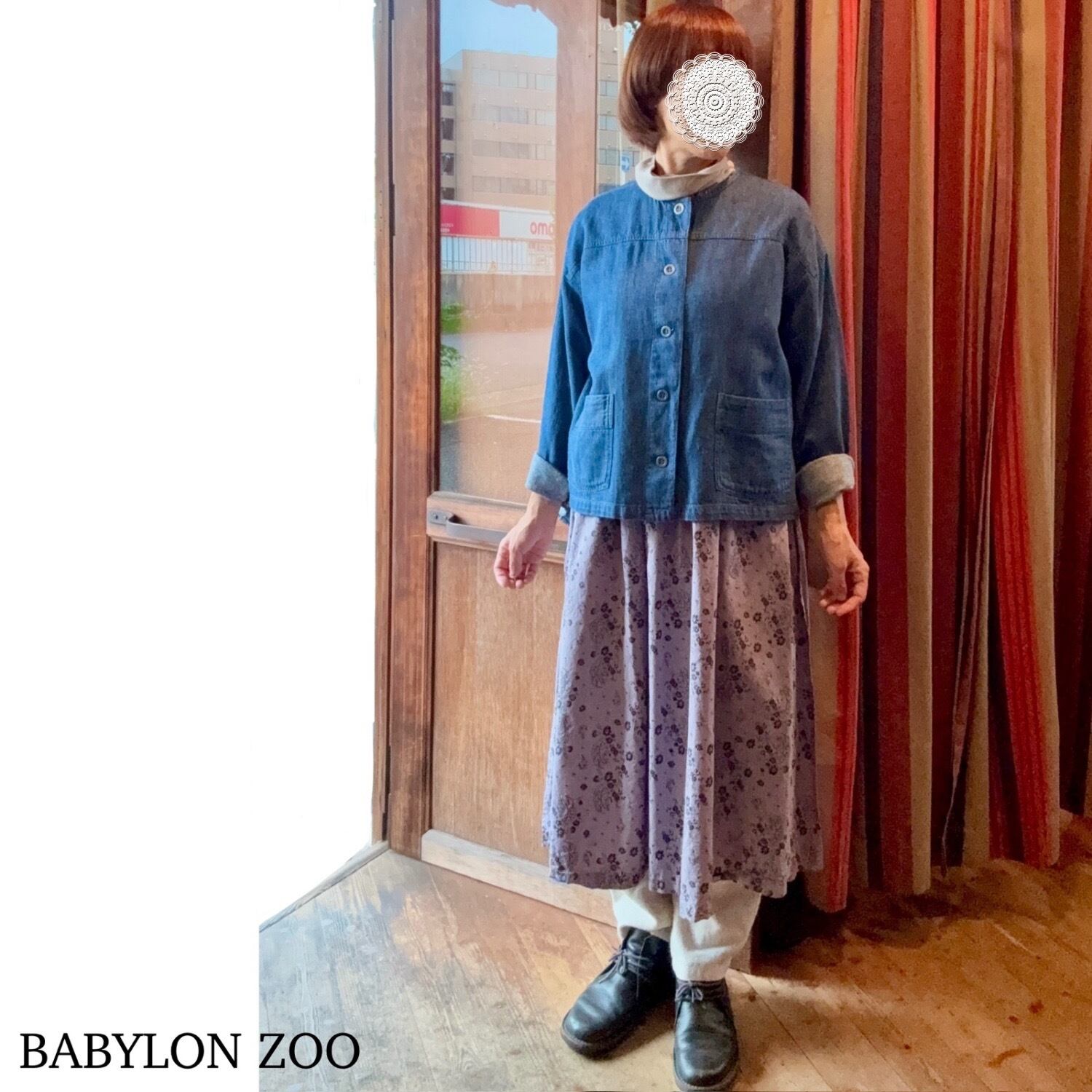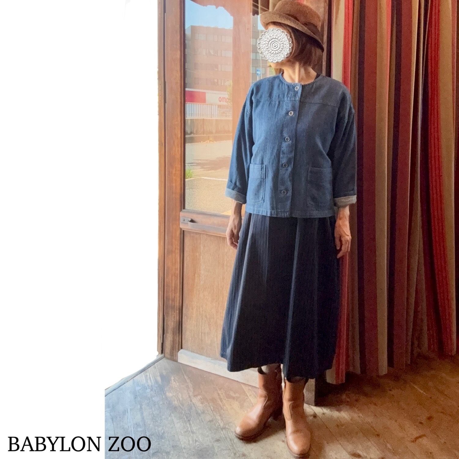 nachukaraのコットンリネンデニム ノーカラージャケット。