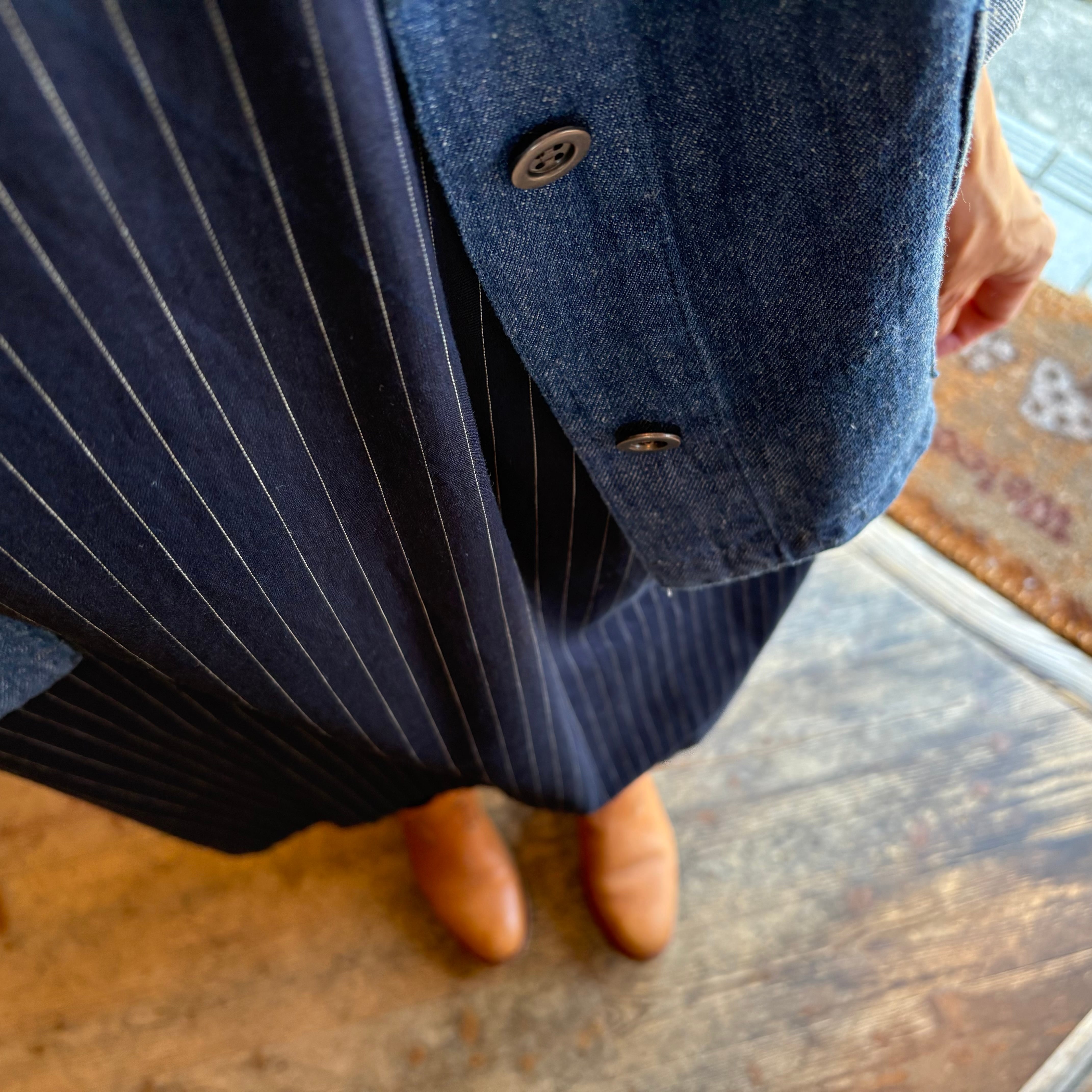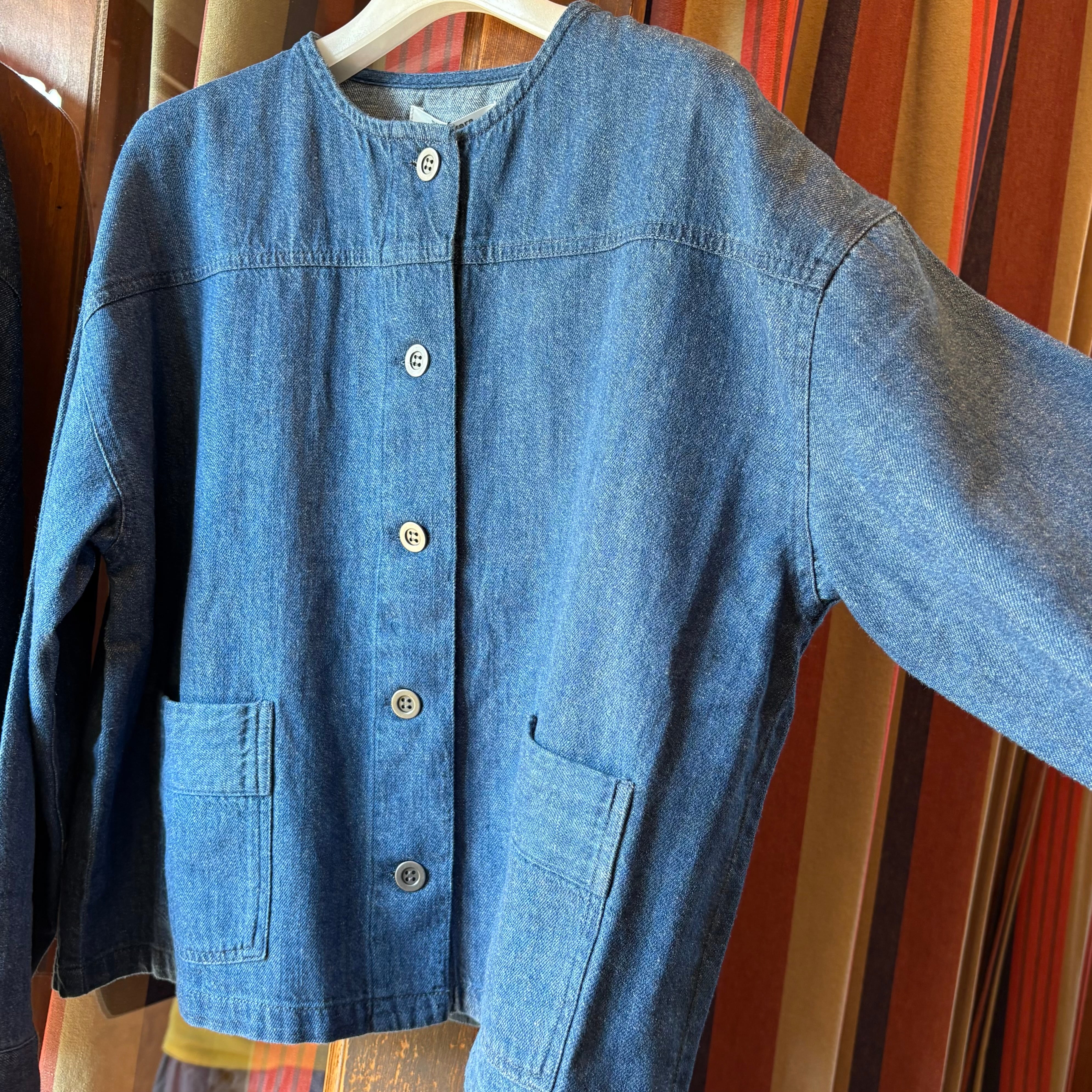 nachukaraのコットンリネンデニム ノーカラージャケット(ブルー)