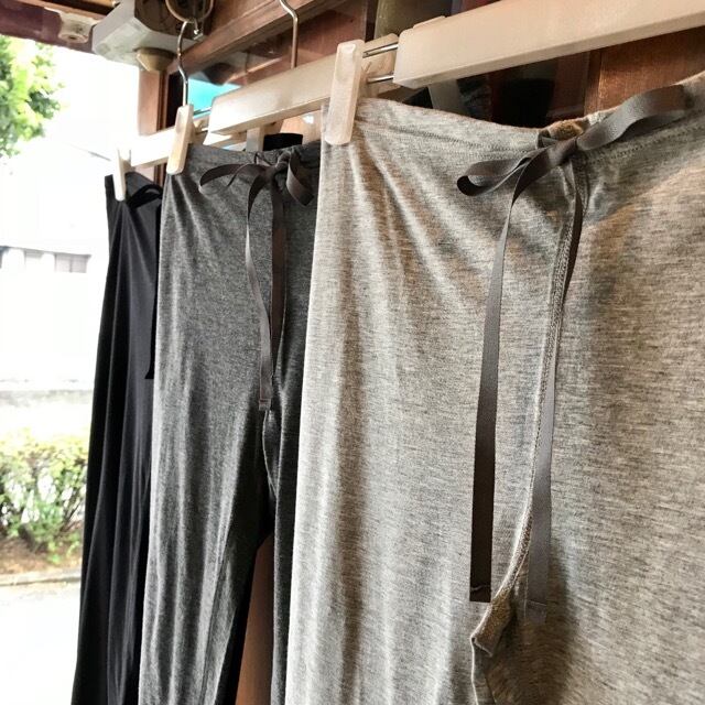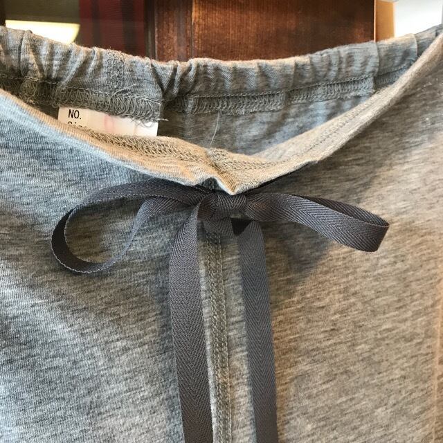 ウエストは後ろのみゴム、リボンが通っていて調節できるので様々な体型の方に穿いて頂けます。
