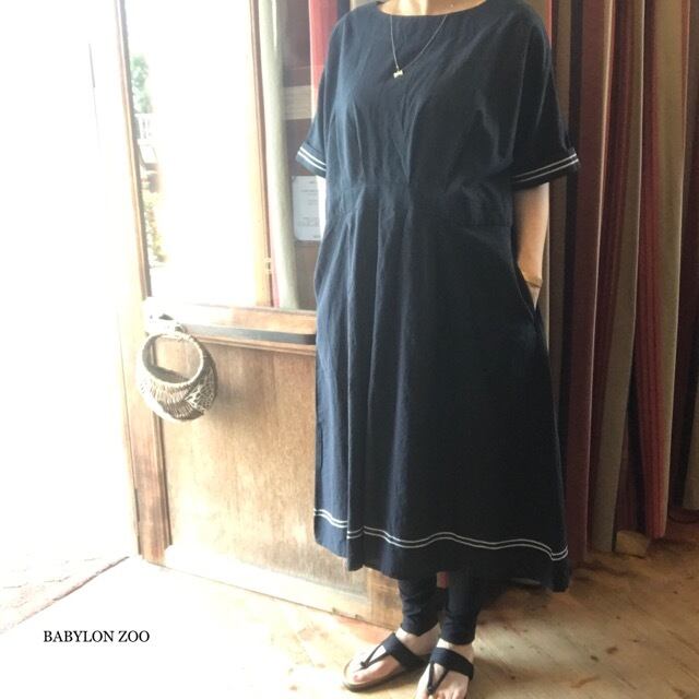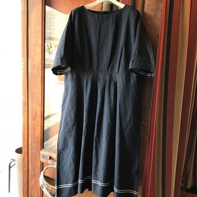 blue willowのコットンリネン 裾ドビーボーダーワンピースです。