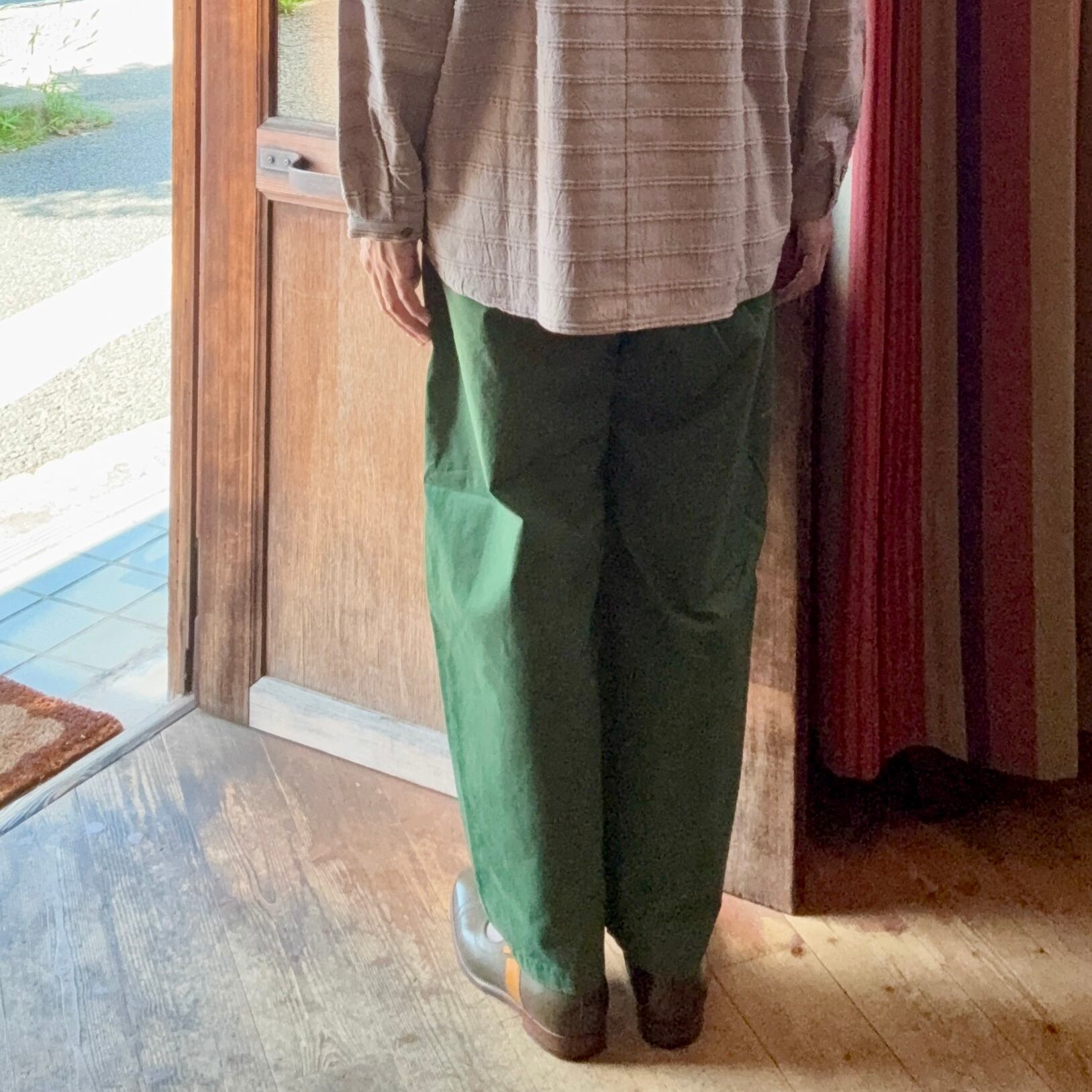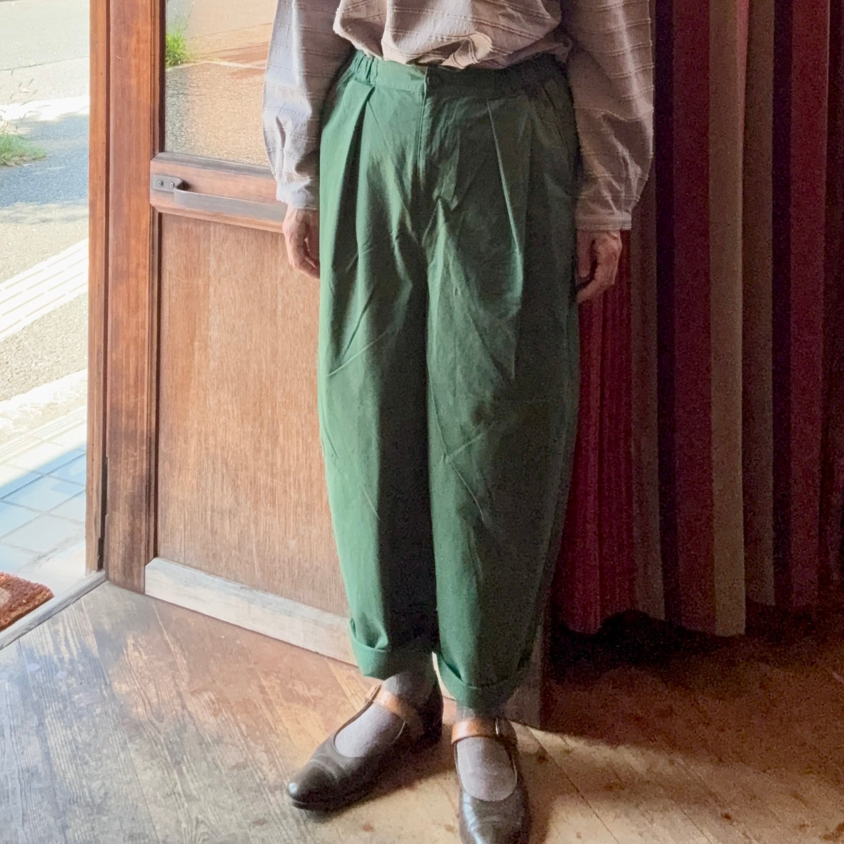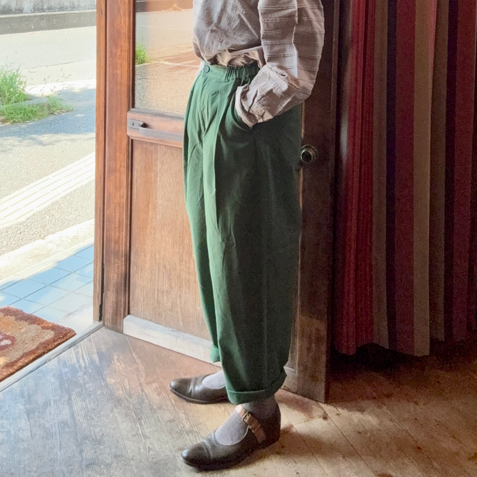nachukaraのピーチツイル タックテーパードパンツ・グリーン