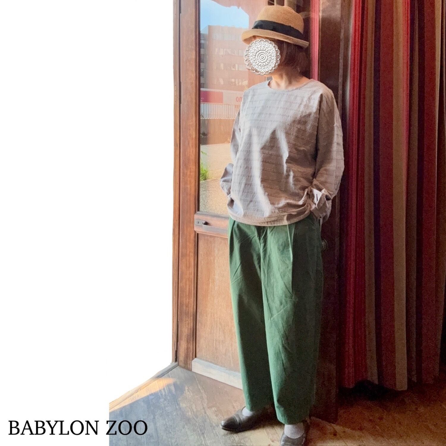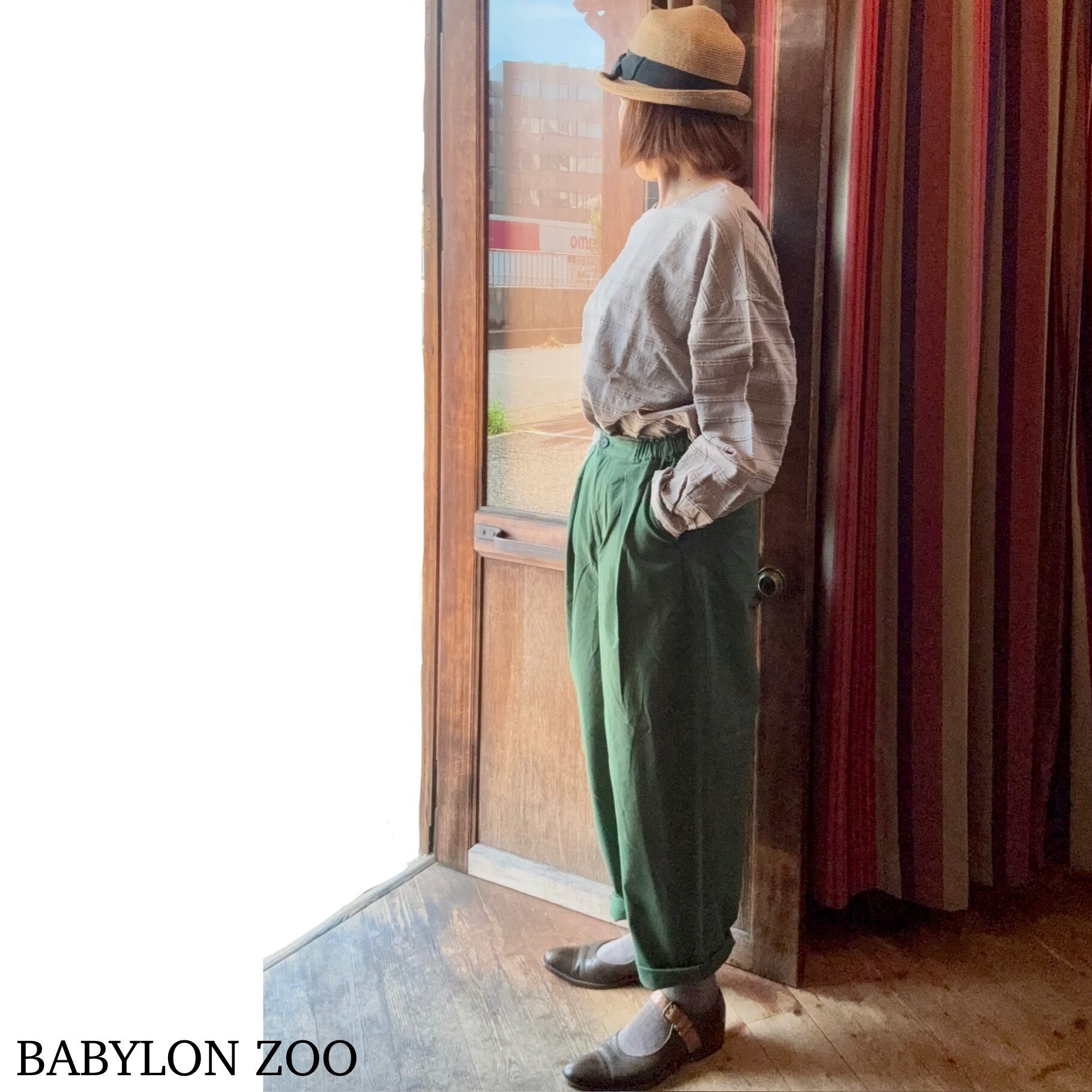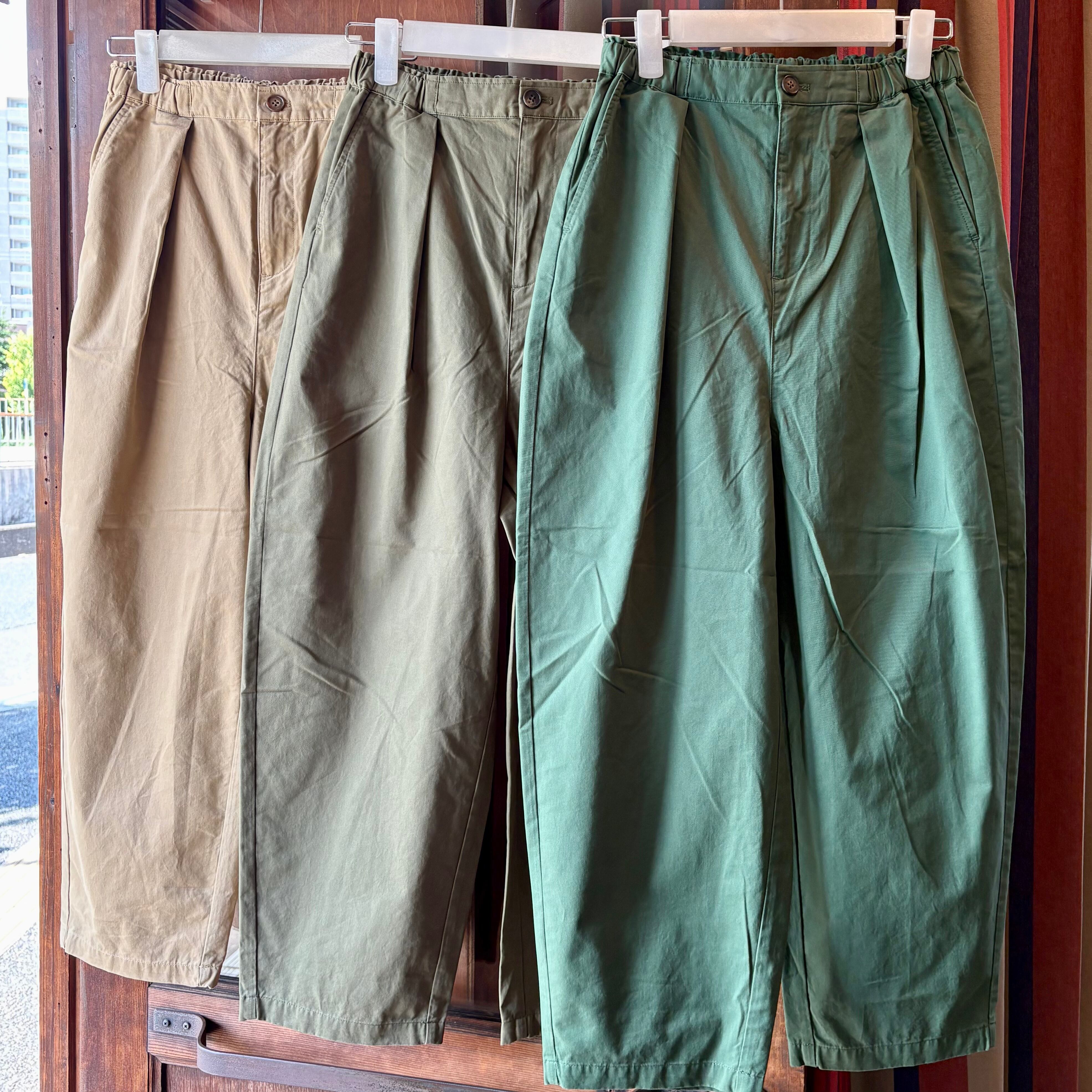 nachukaraのピーチツイル タックテーパードパンツ・グリーン