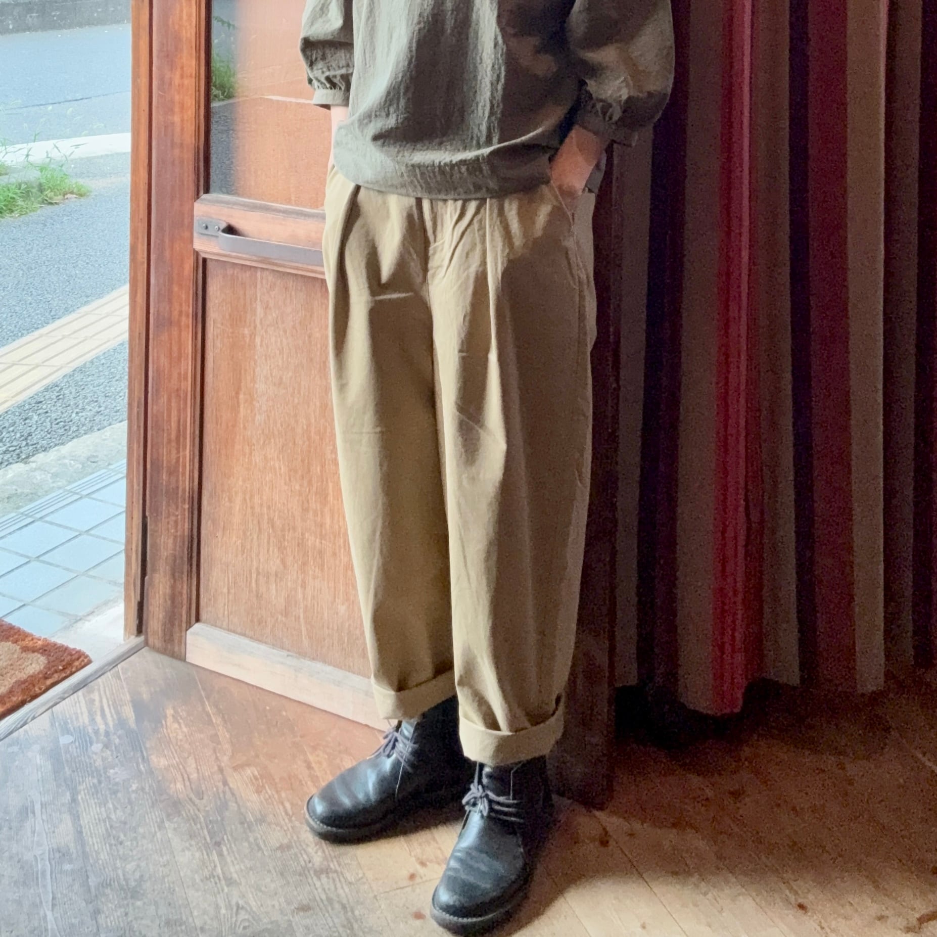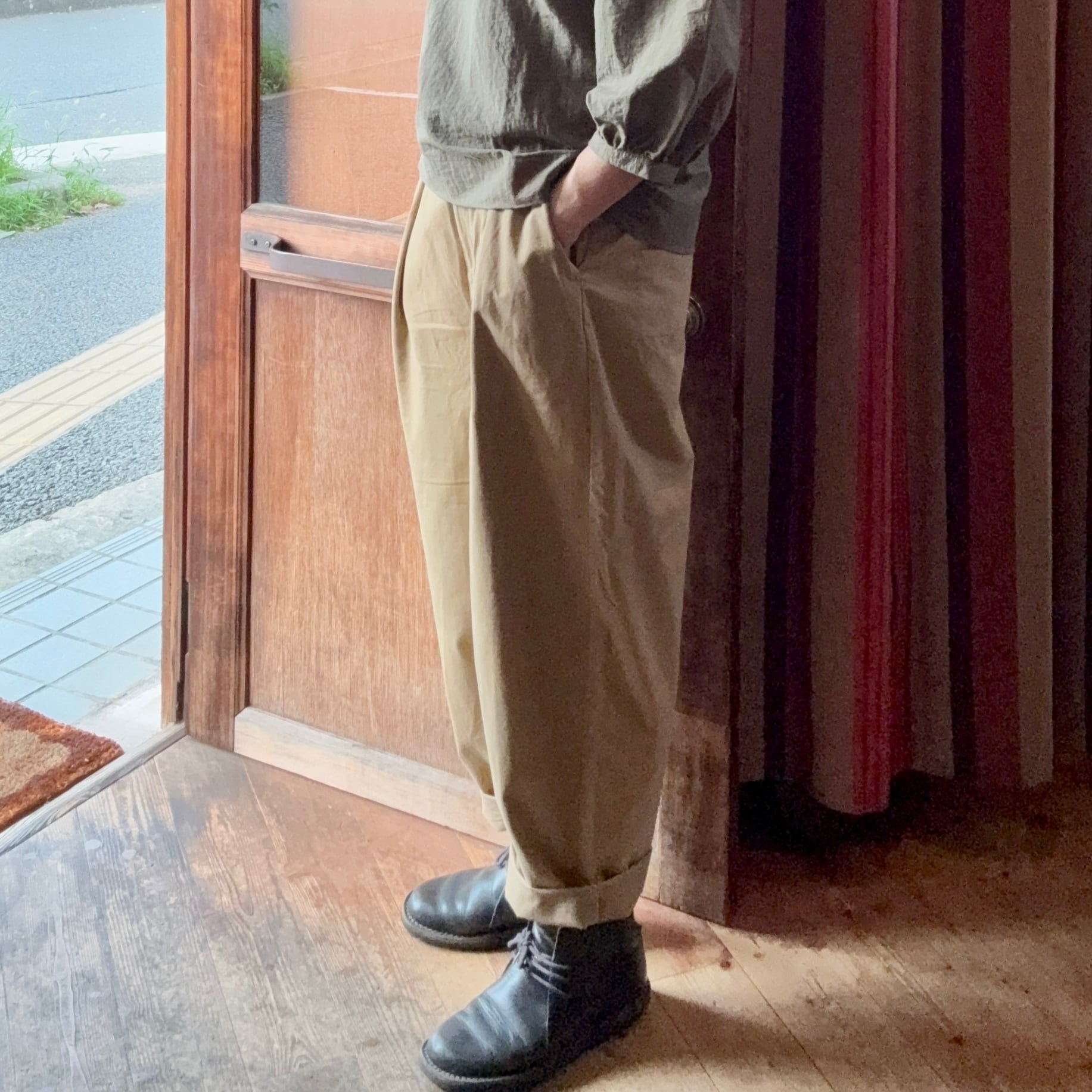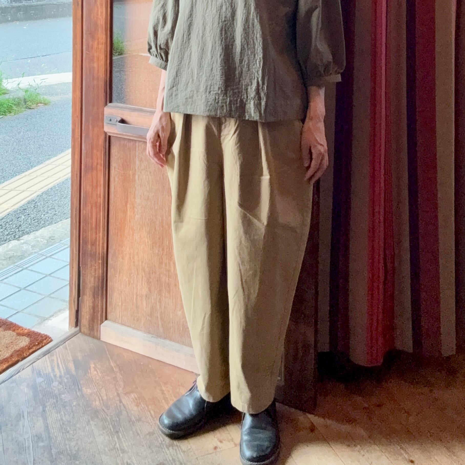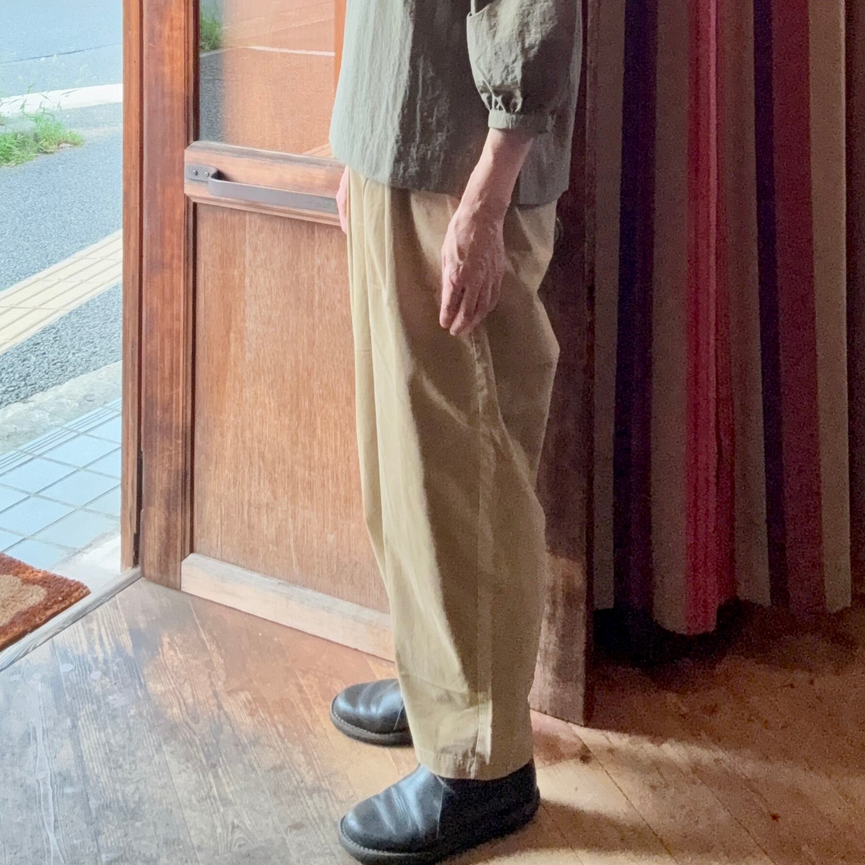 nachukaraのピーチツイル タックテーパードパンツ・ベージュ
