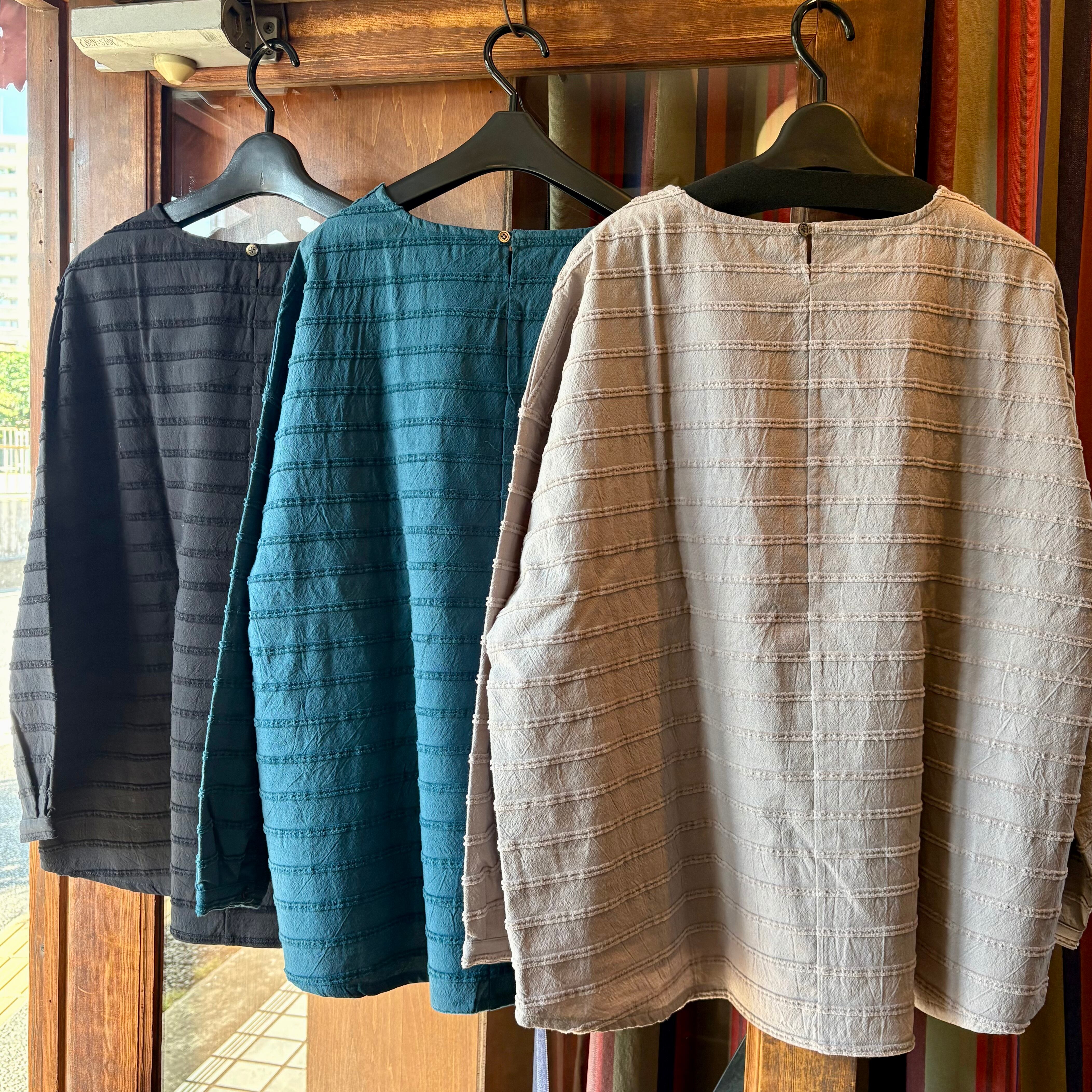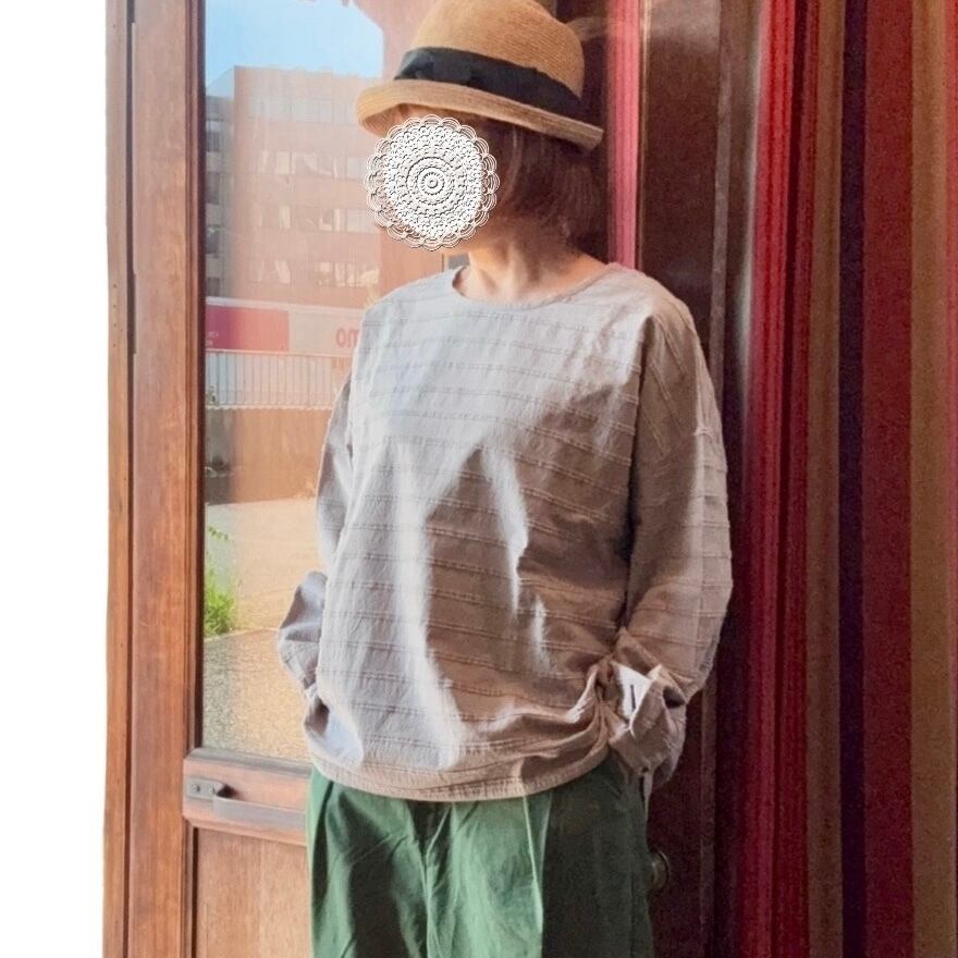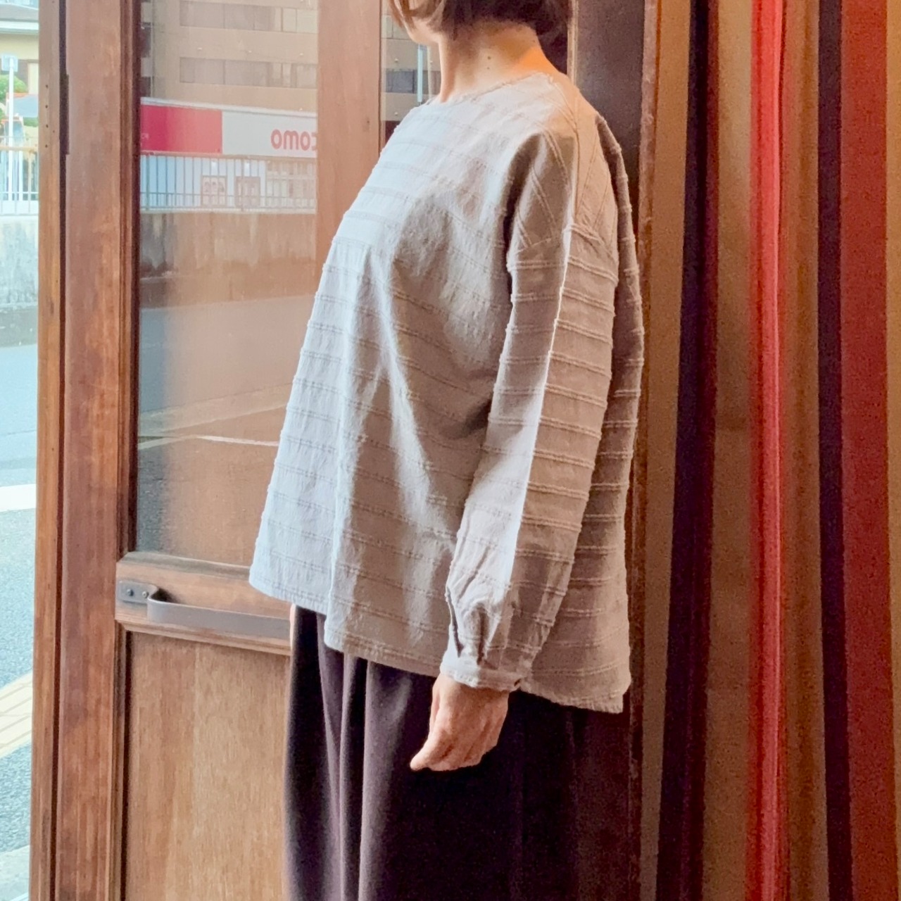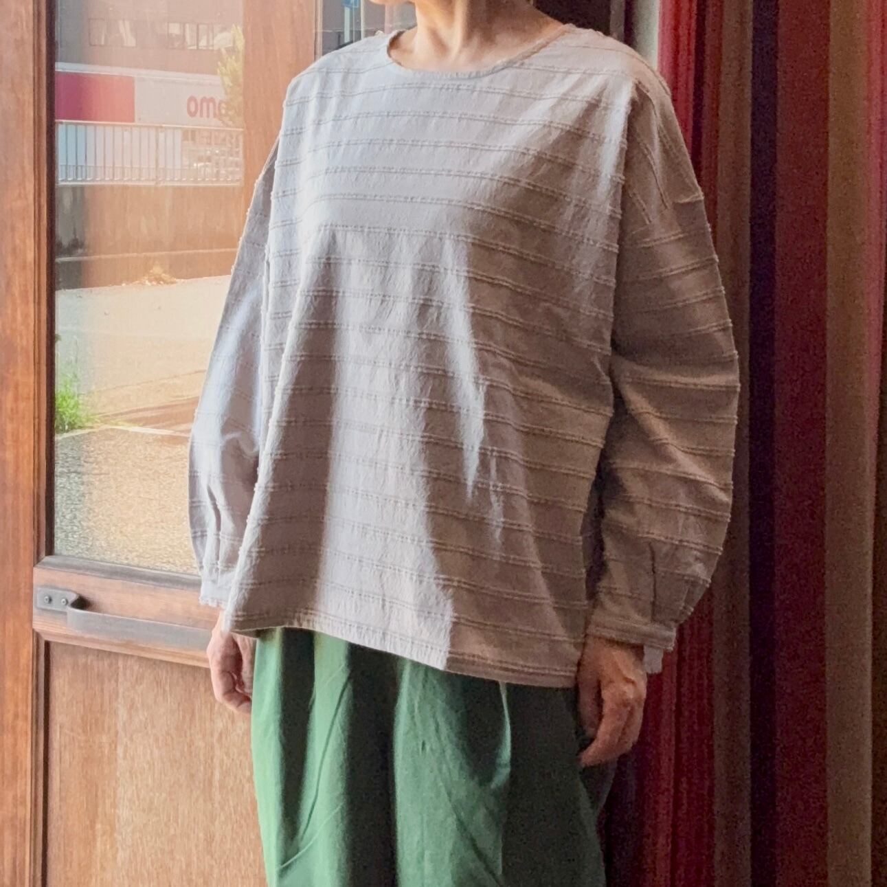 シンプルなプルオーバーブラウス。重ね着も楽しめます。