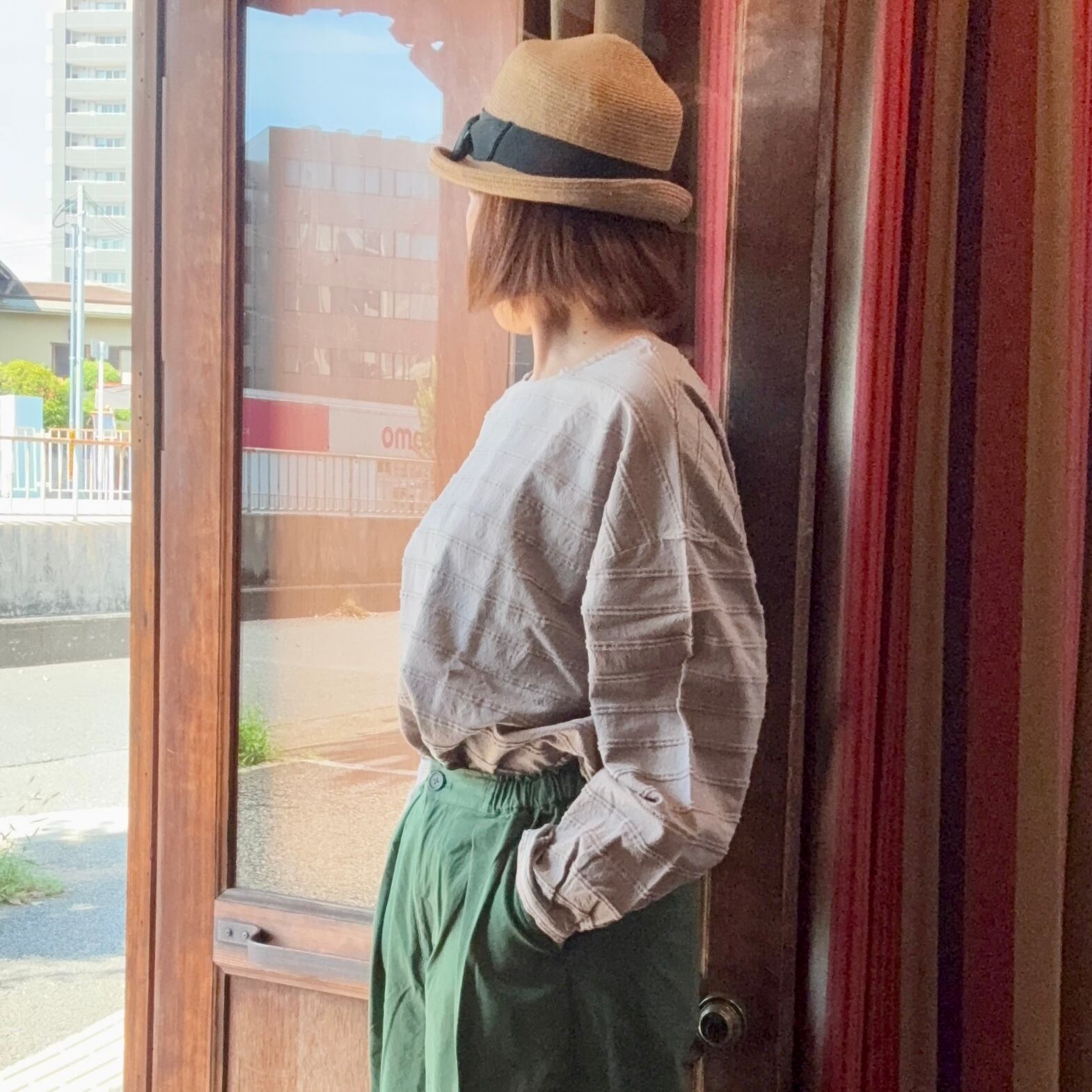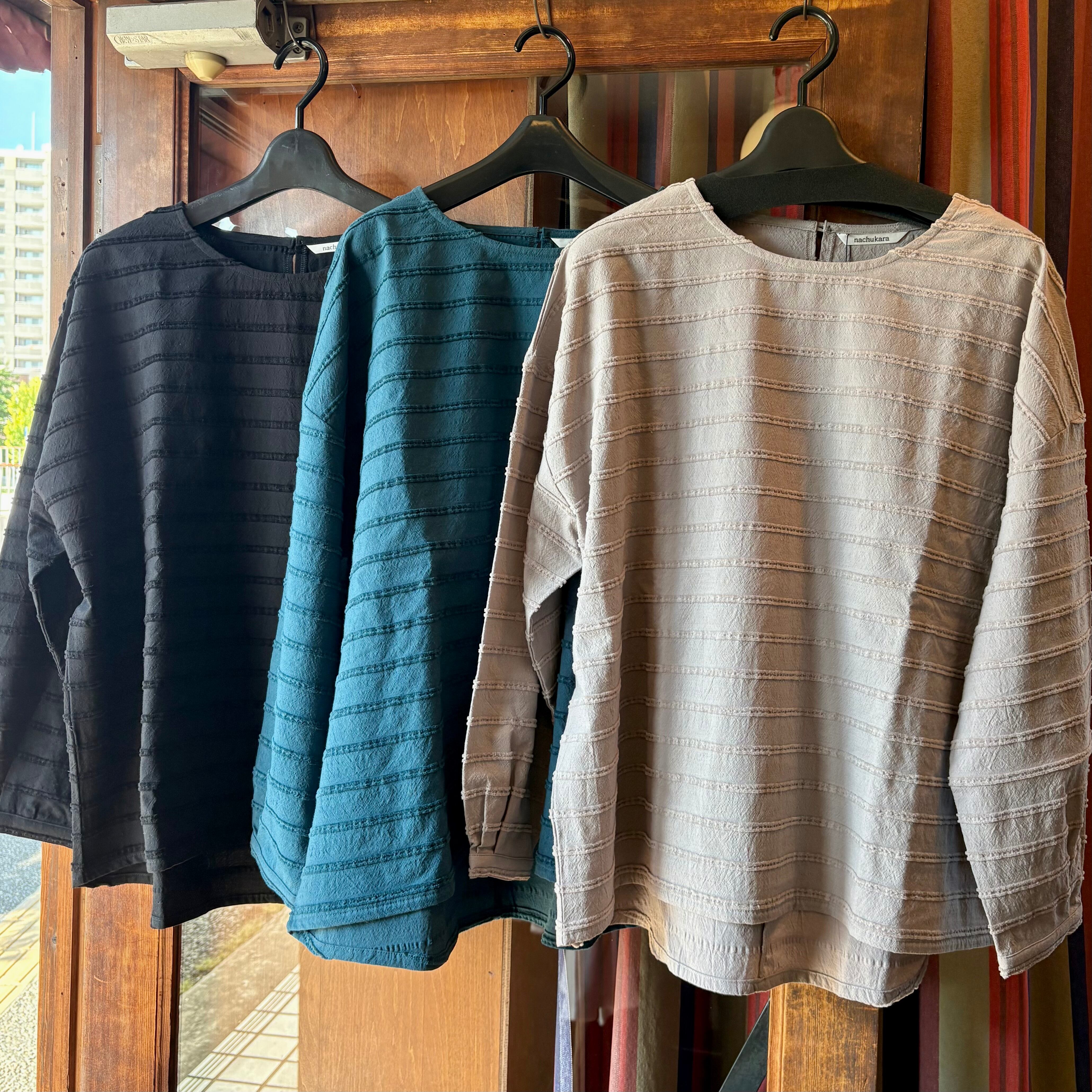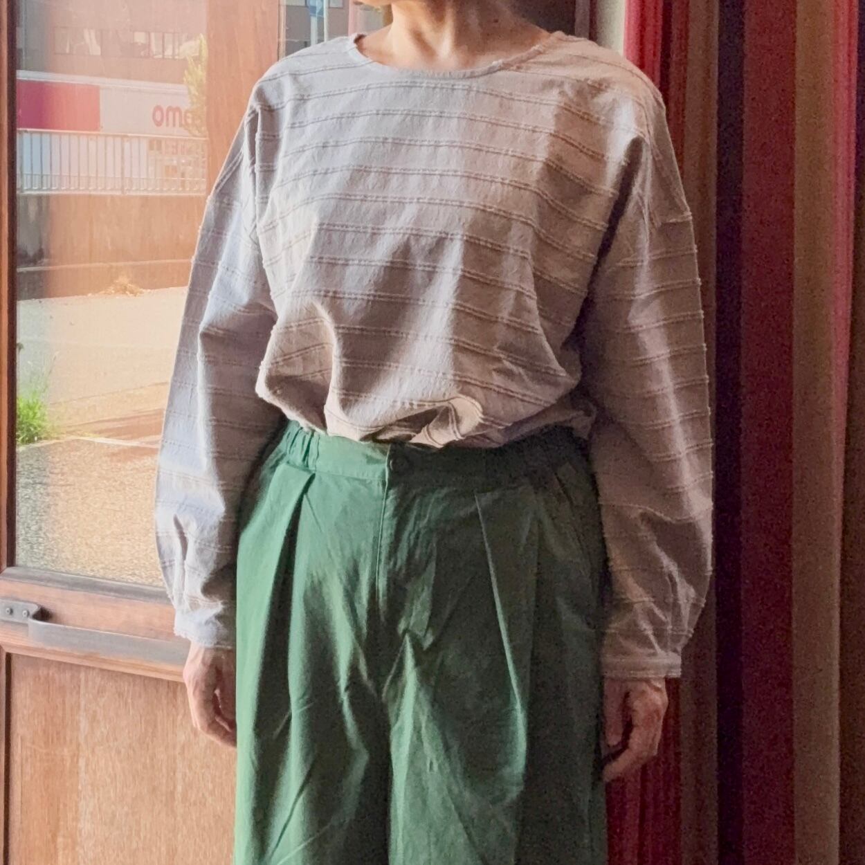 シンプルなプルオーバーブラウス。重ね着も楽しめます。
