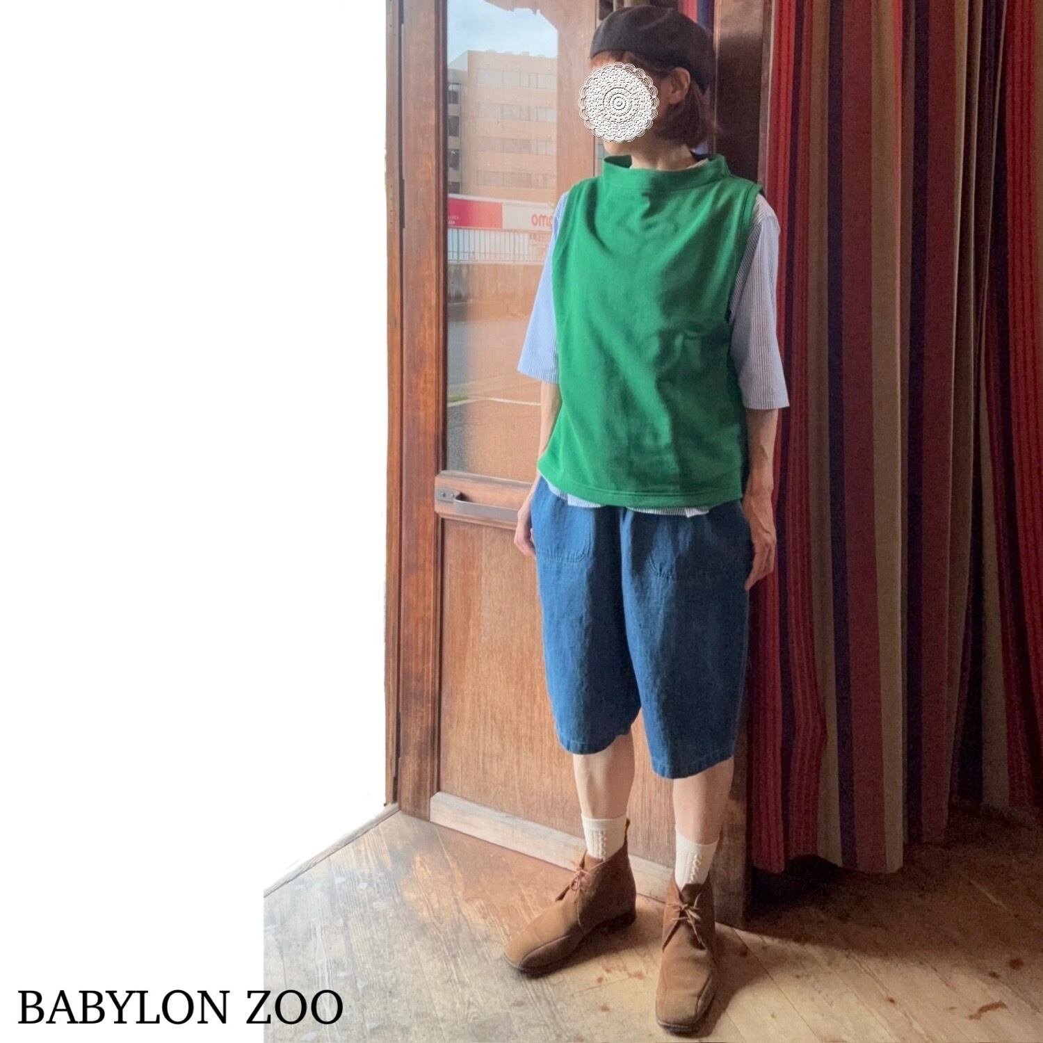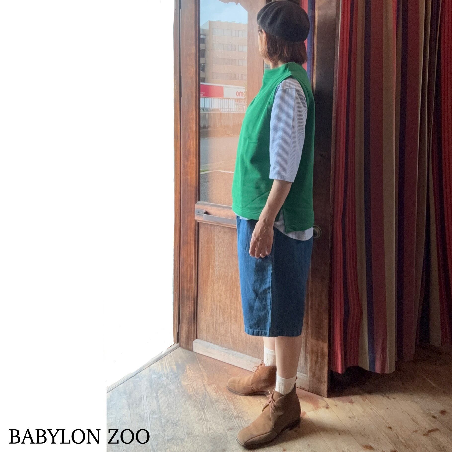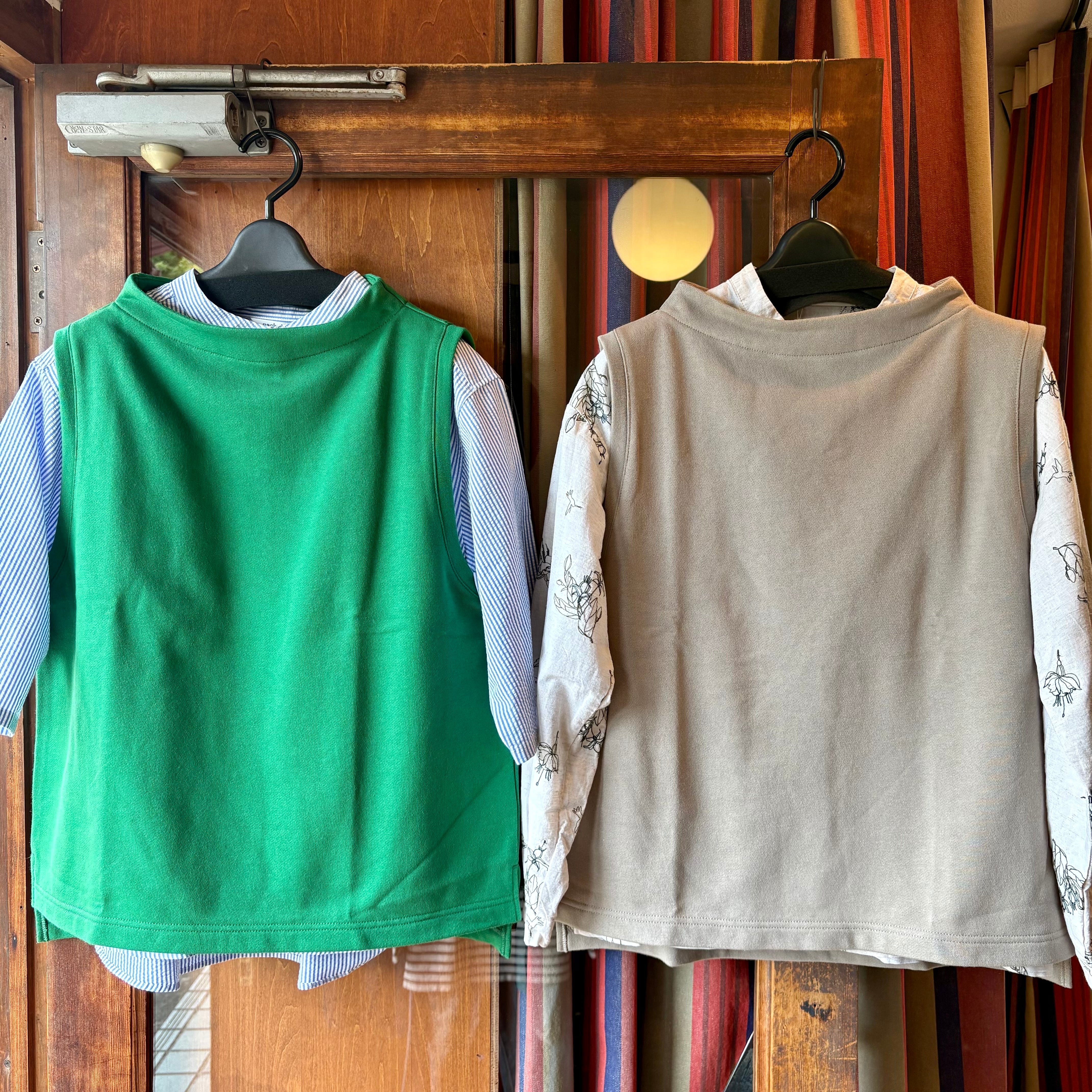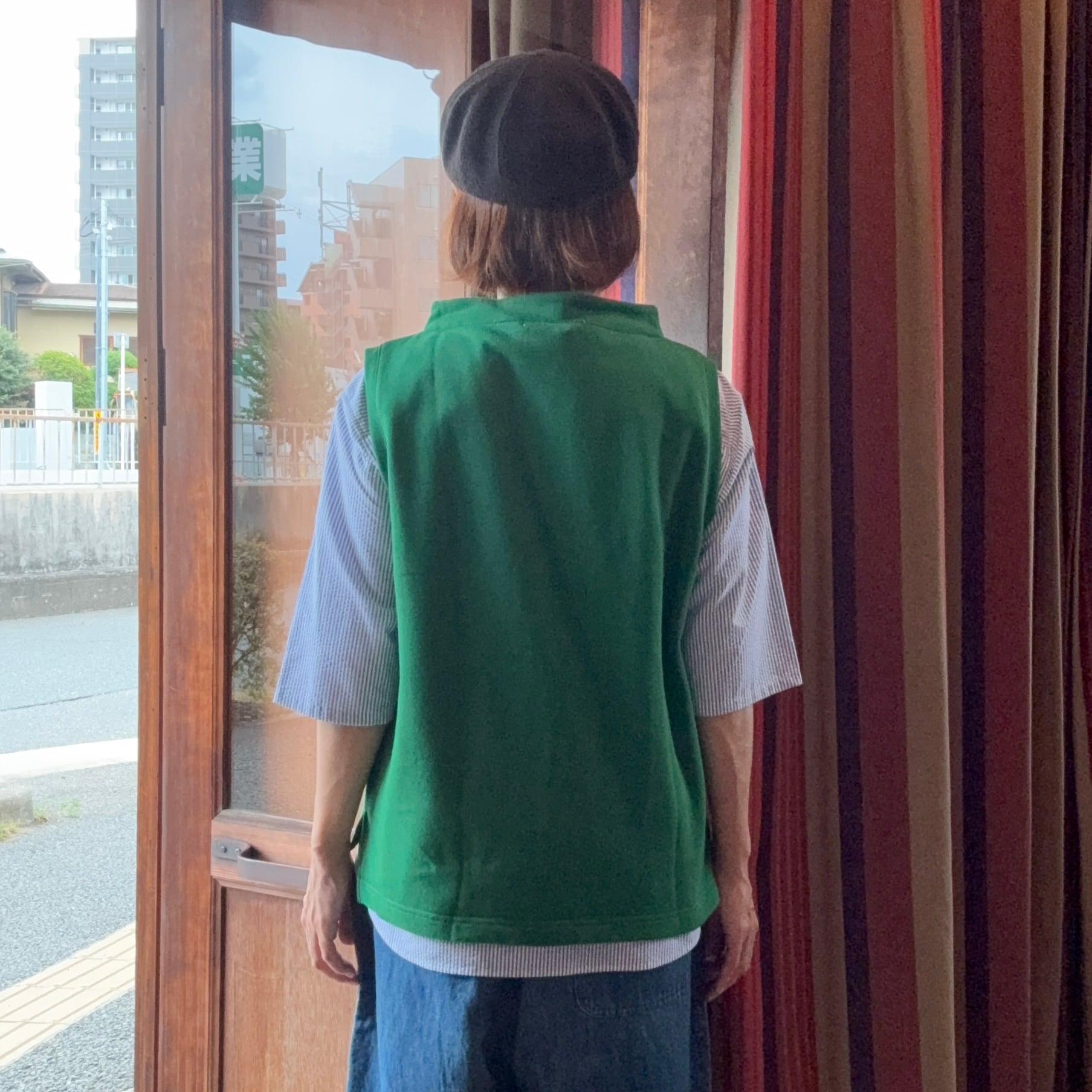 nachukaraのセントラル裏毛ボトルネックベスト・グリーン
