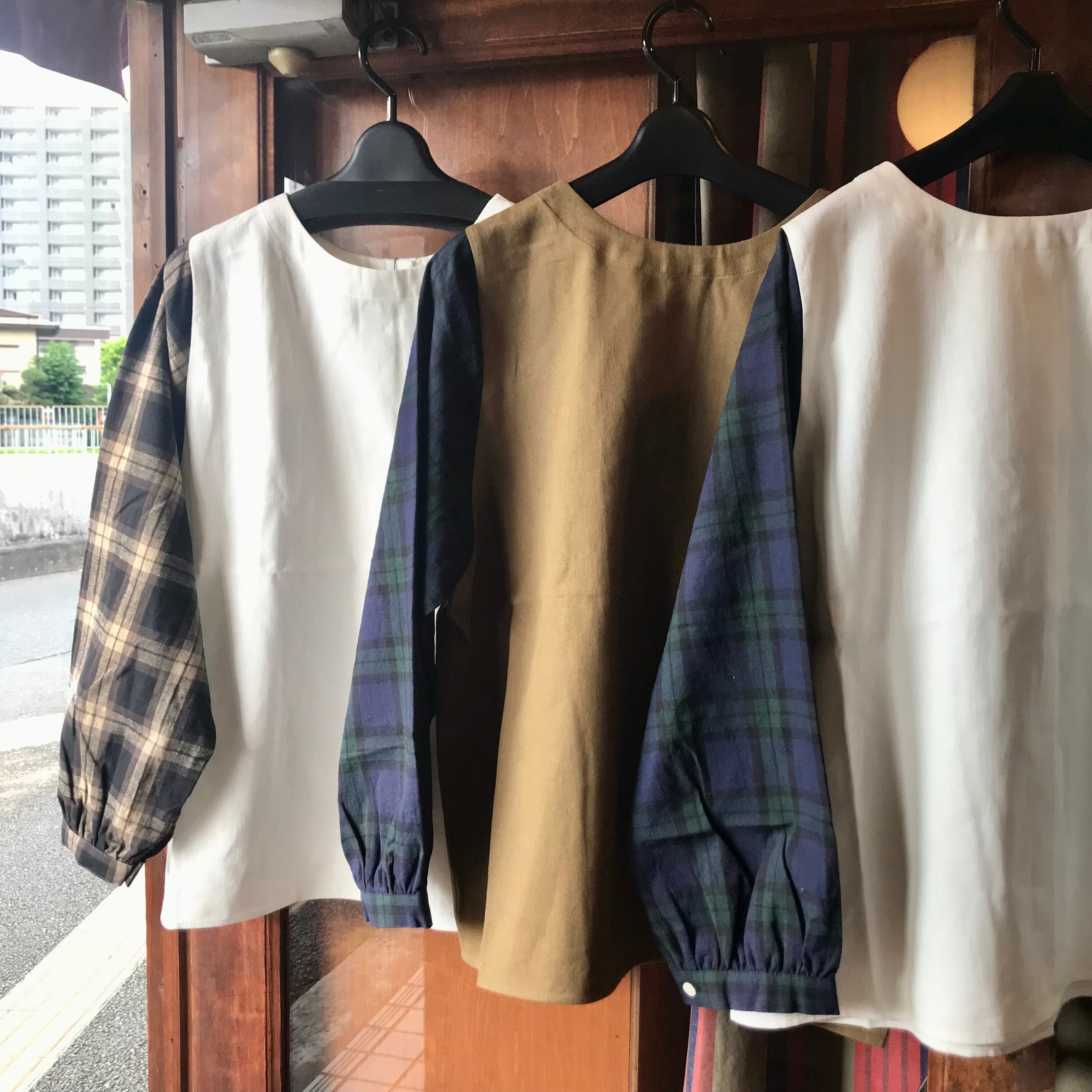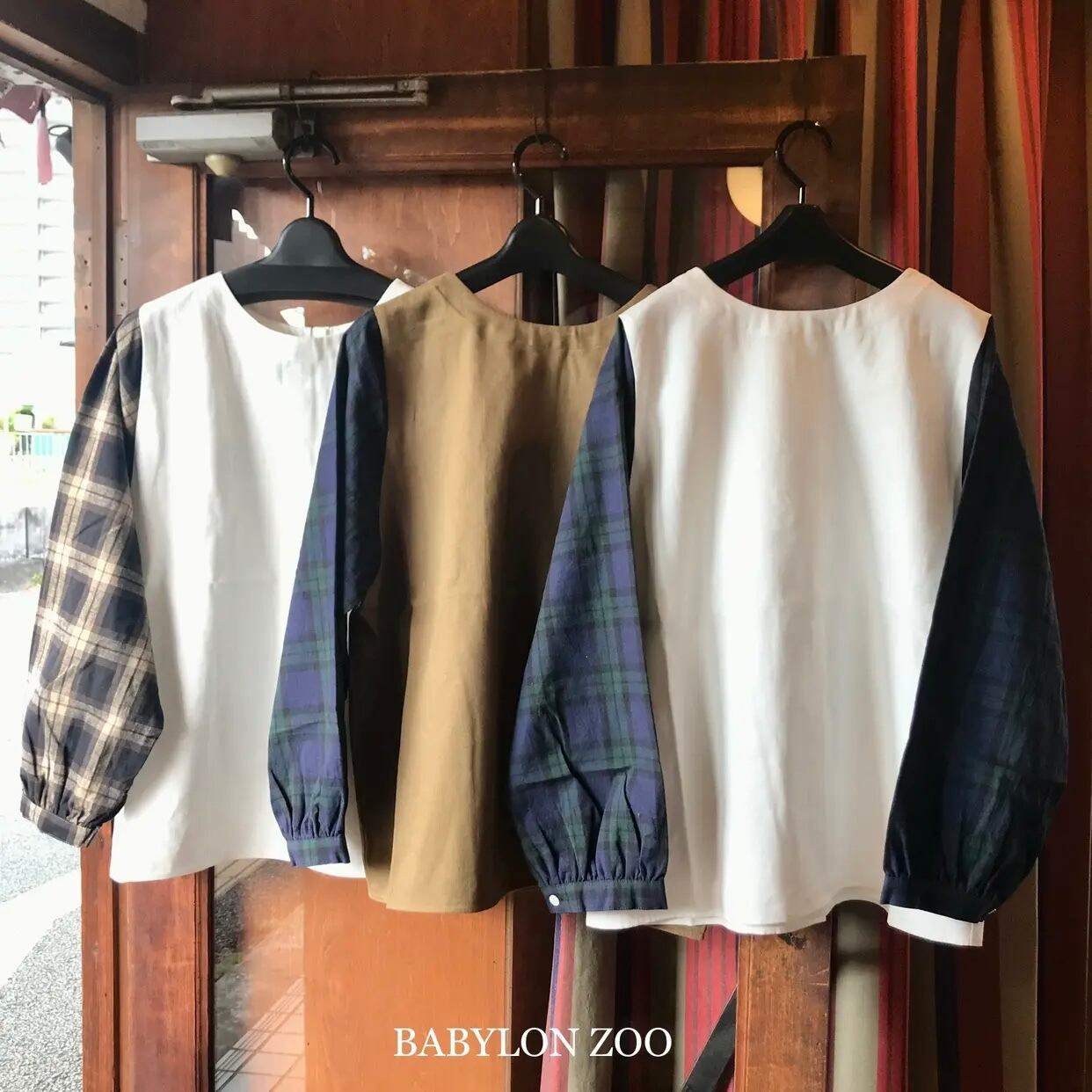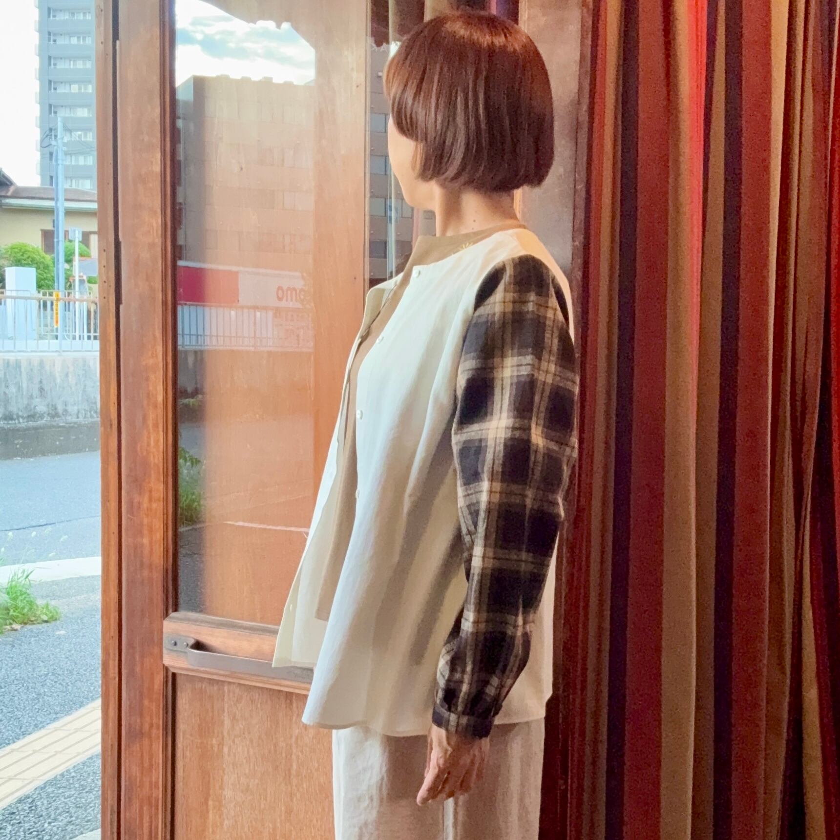 nachukaraの袖柄使い2wayブラウス・ホワイト×ベージュチェック