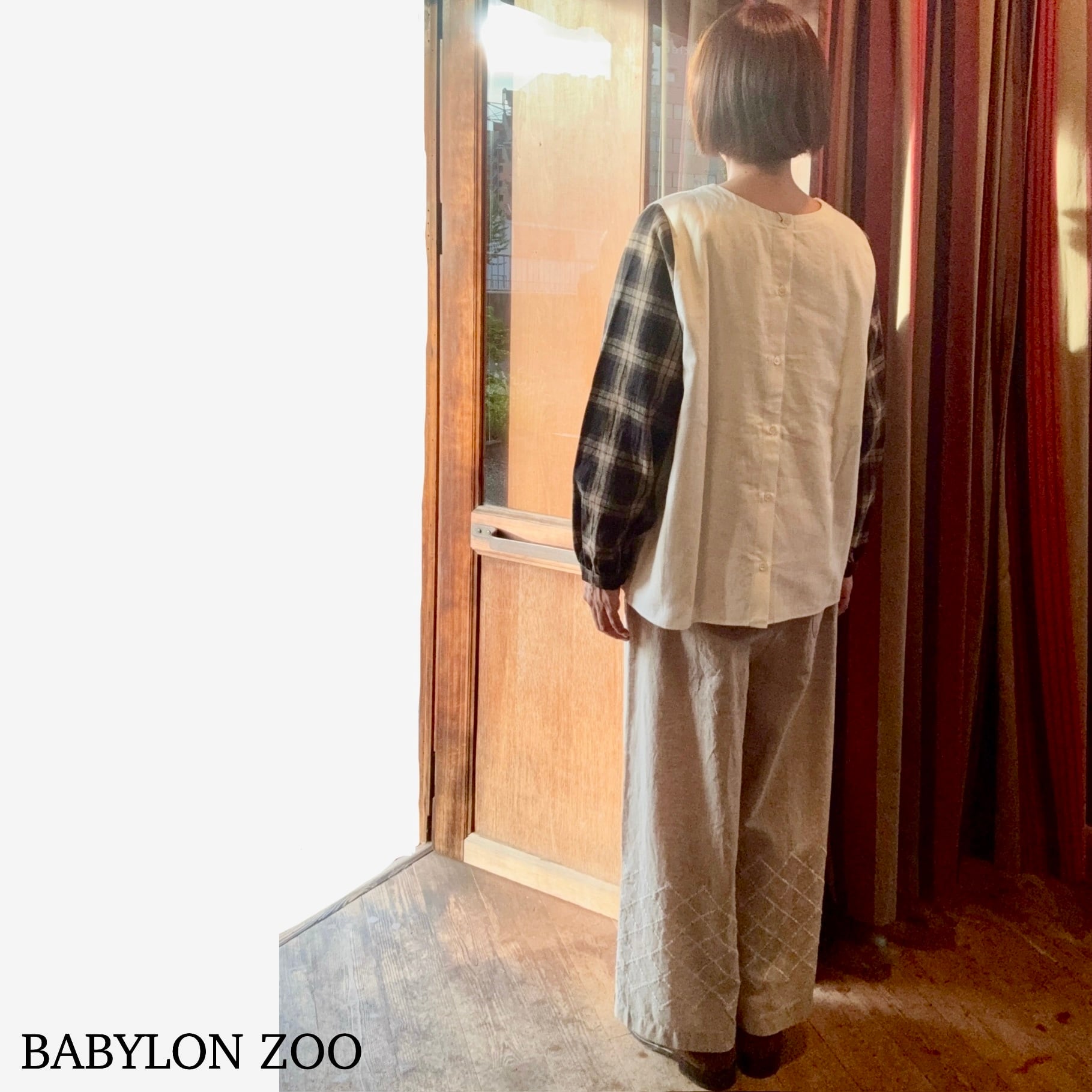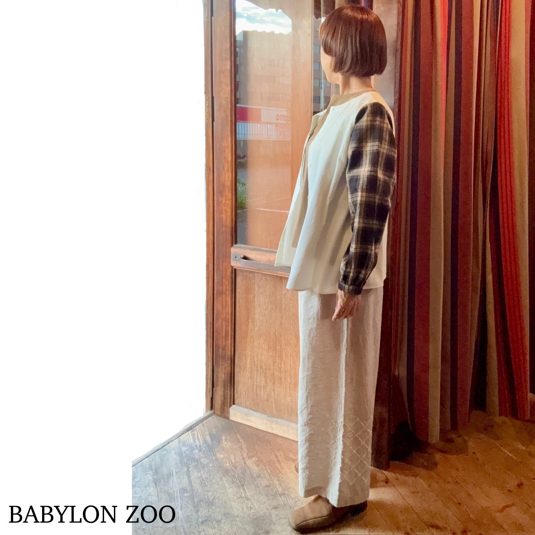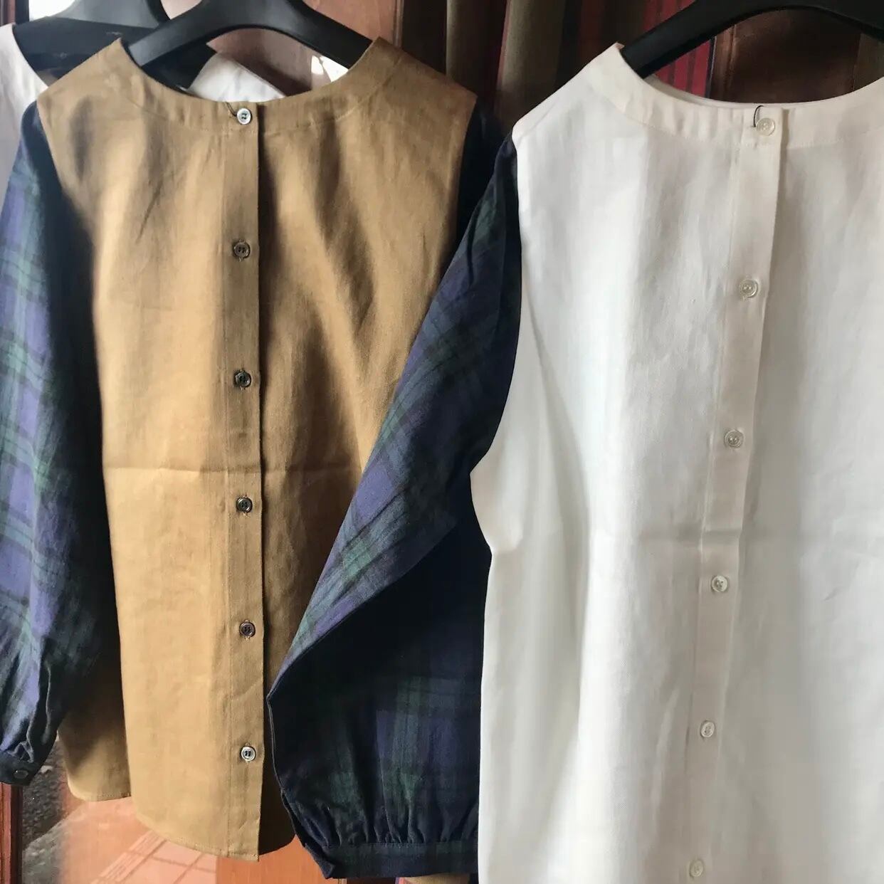 nachukaraの袖柄使い2wayブラウス・ホワイト×ベージュチェック