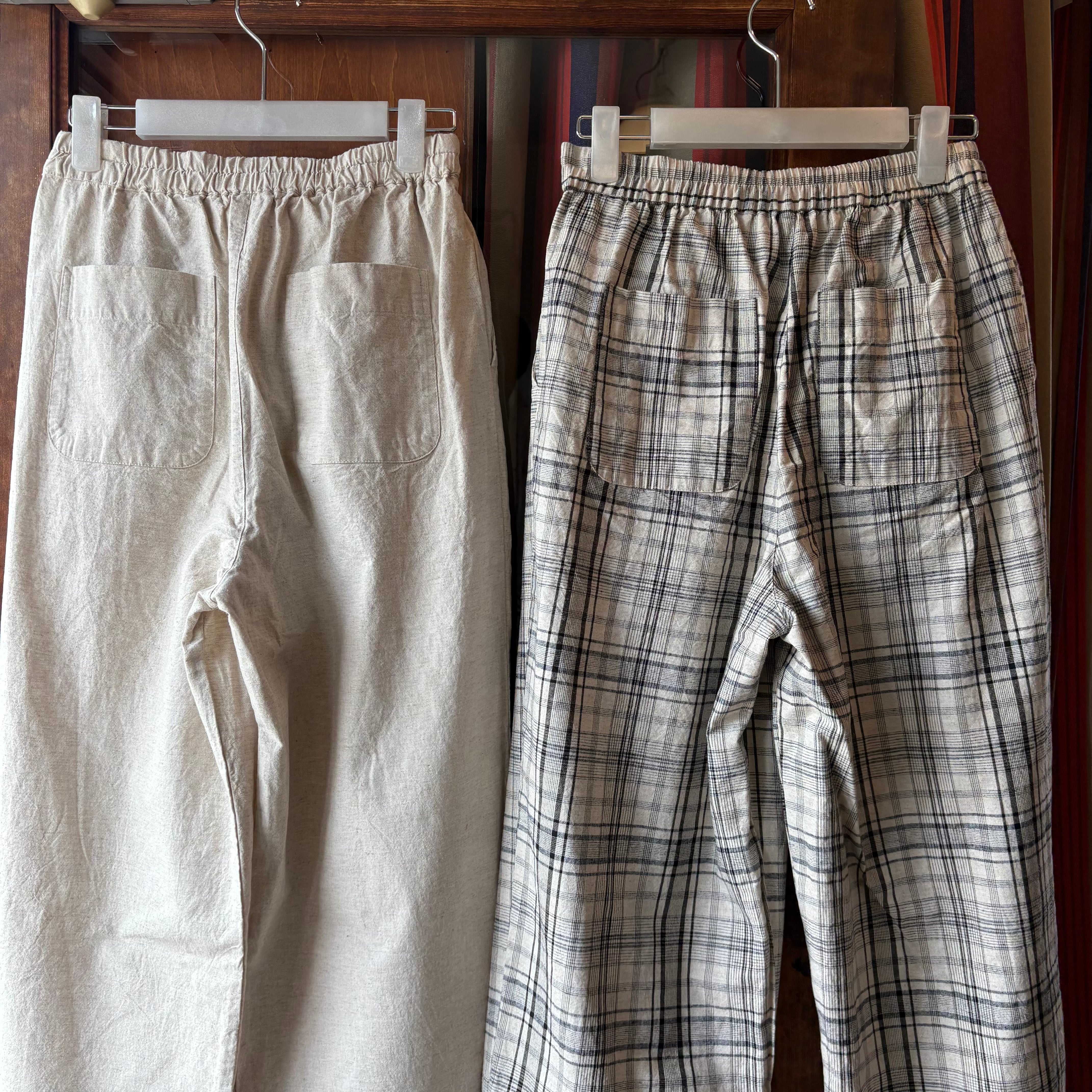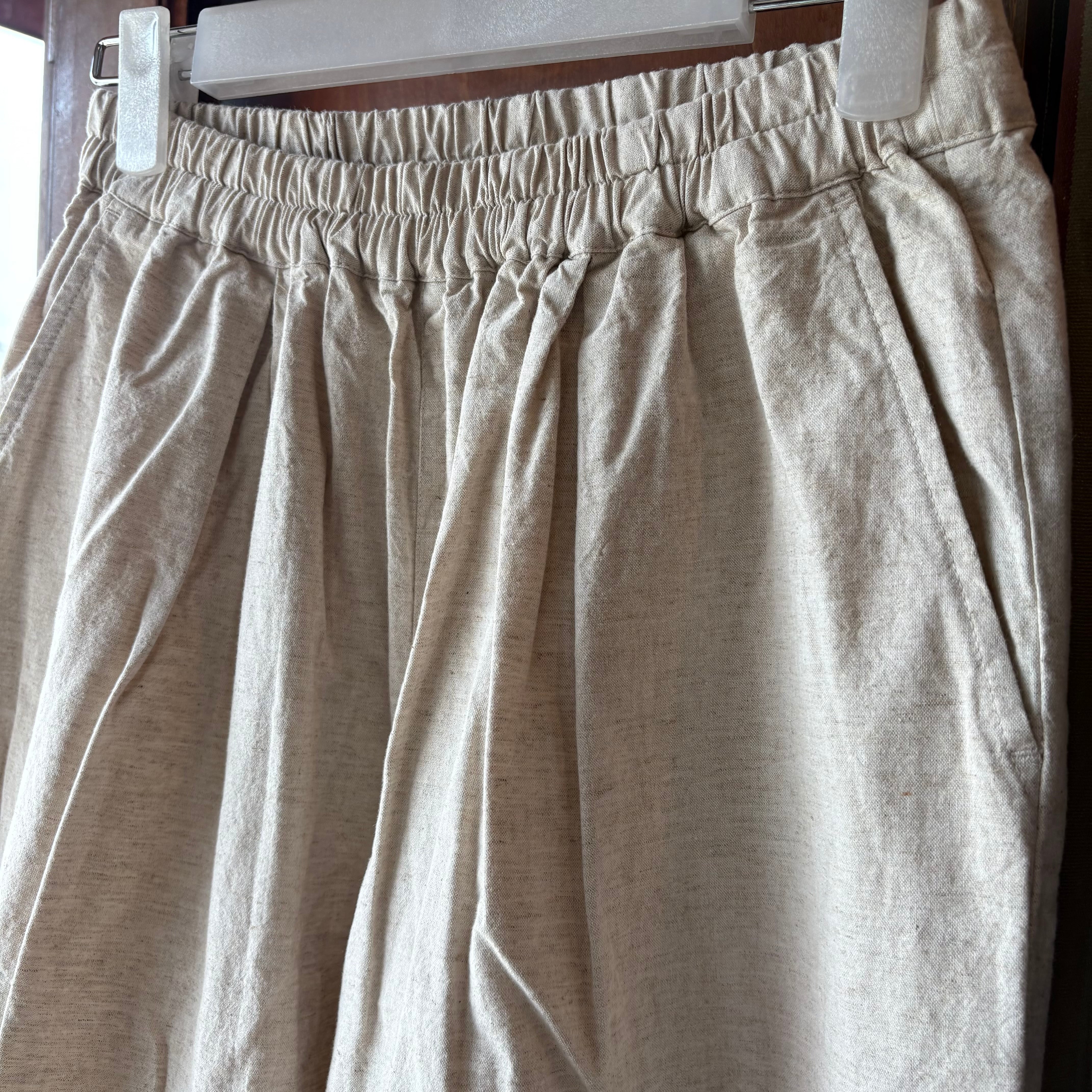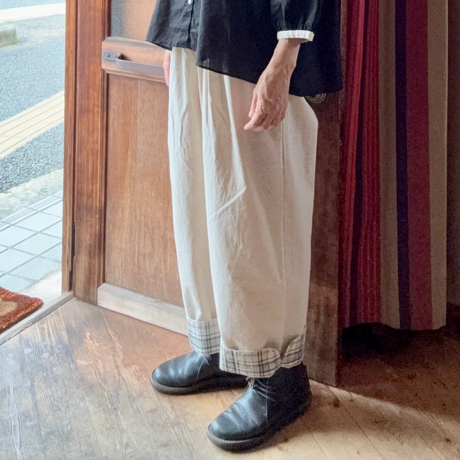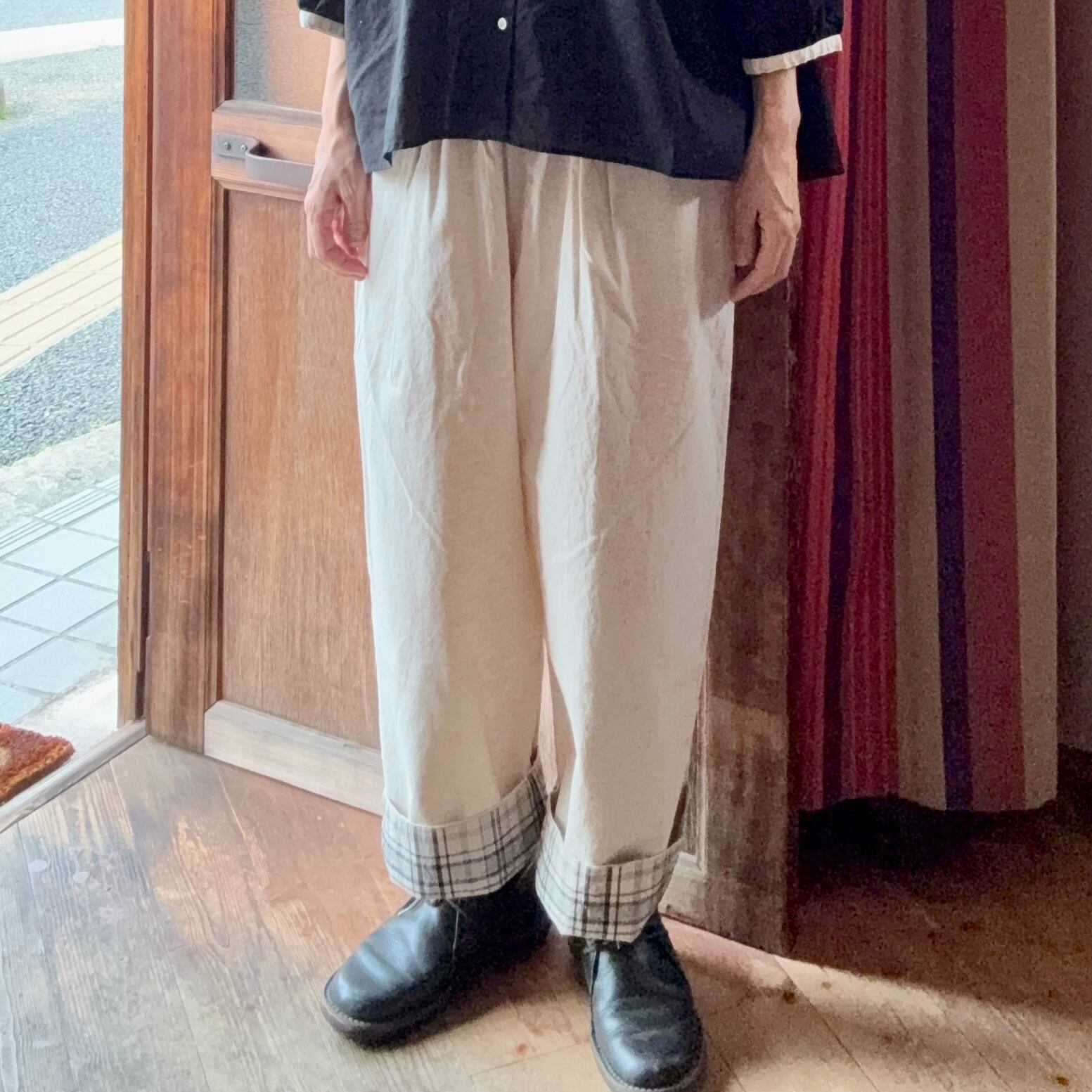 tukuroiのコットンリネン裾折り返し2wayパンツ・生成り