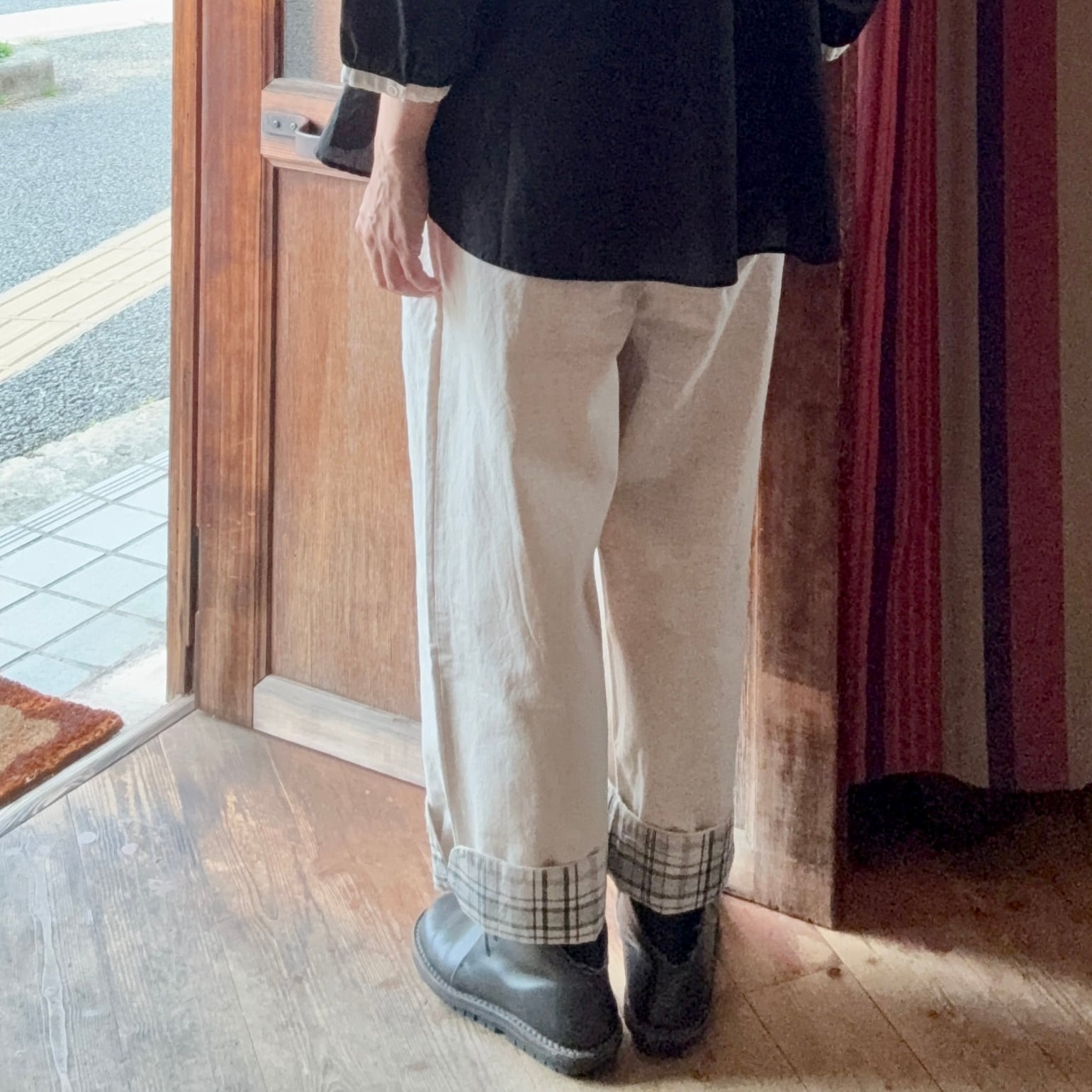 tukuroiのコットンリネン裾折り返し2wayパンツ