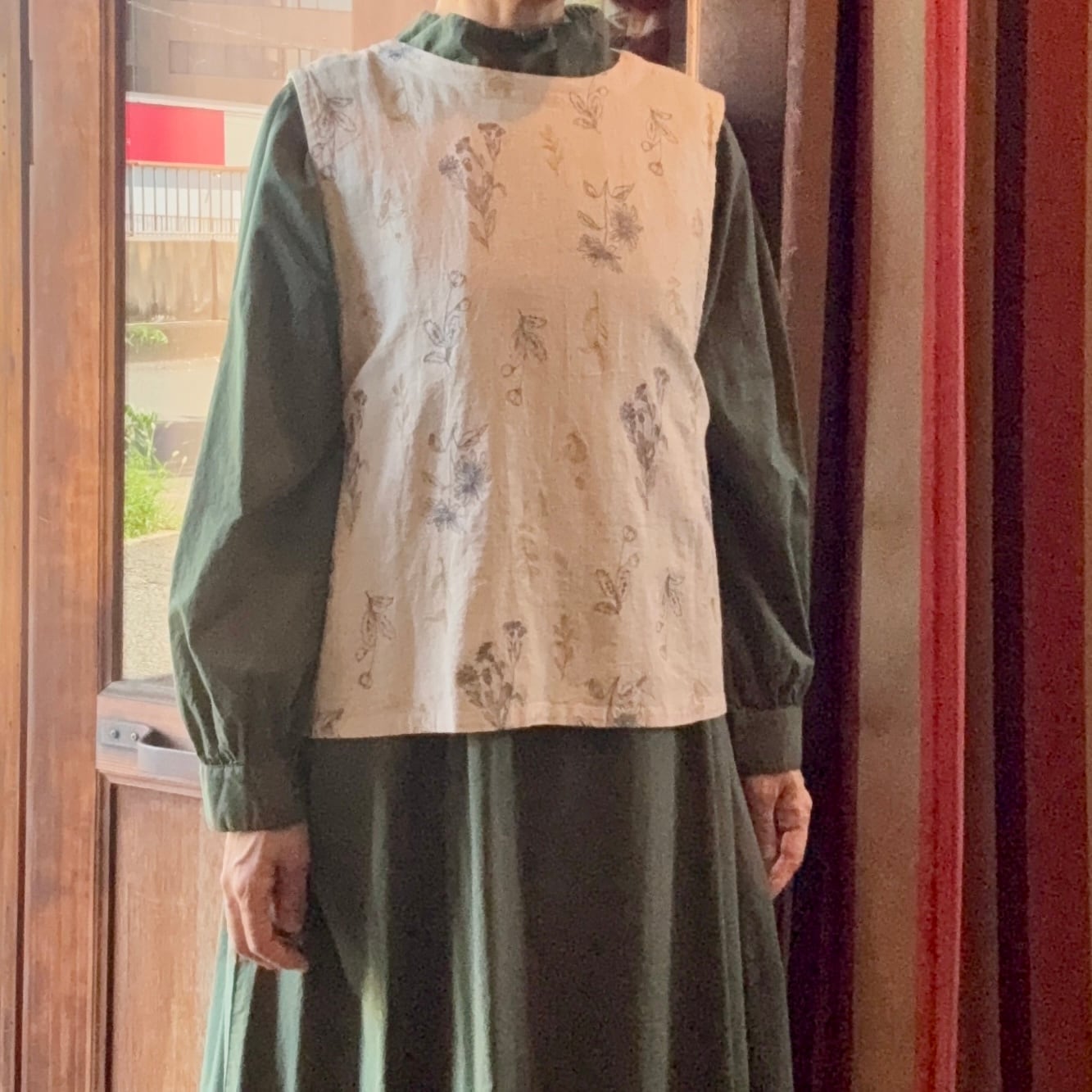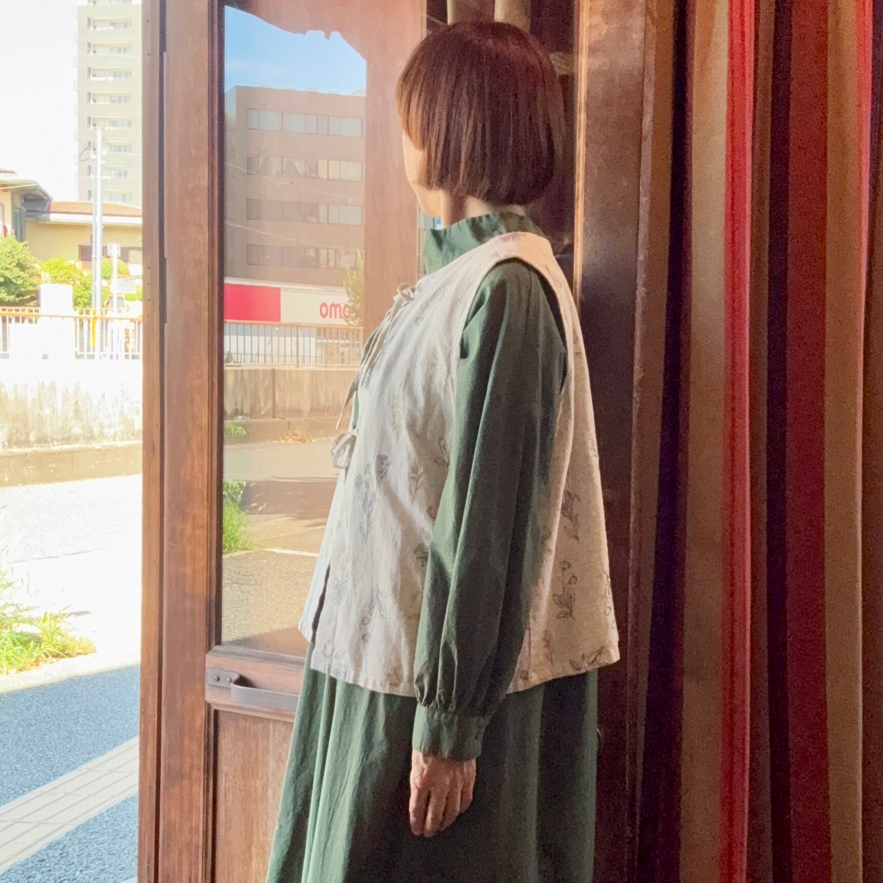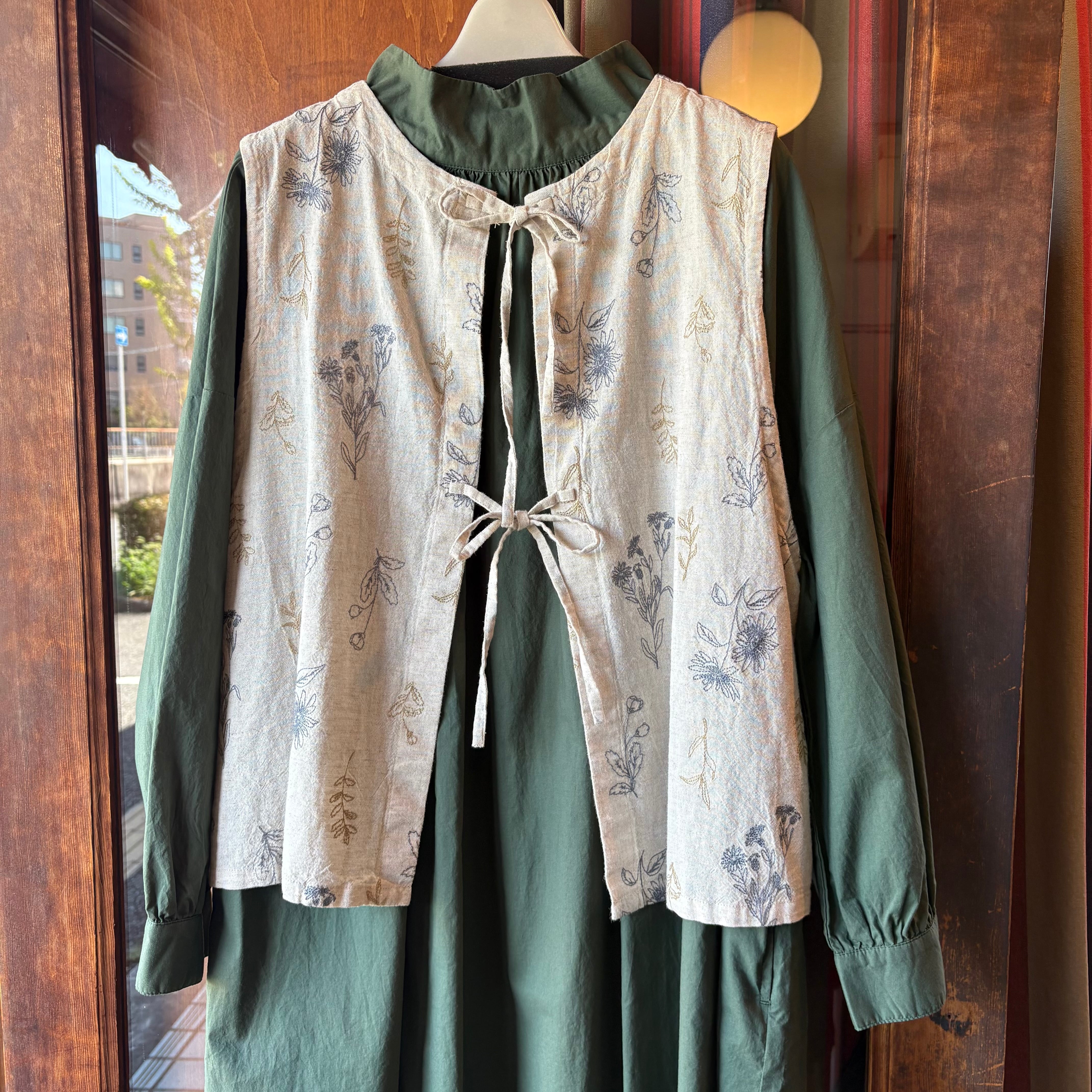 tukuroiのコットンリネンフラワー刺繍2wayベスト・生成り