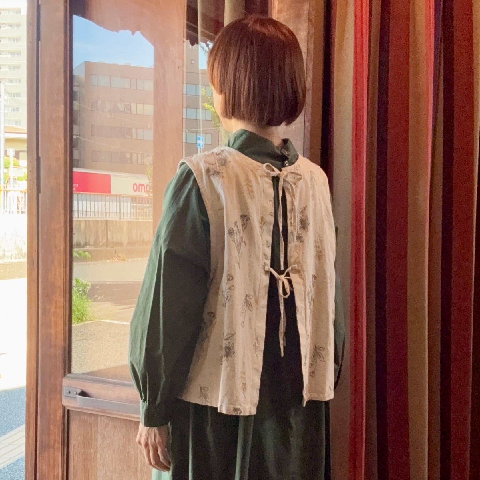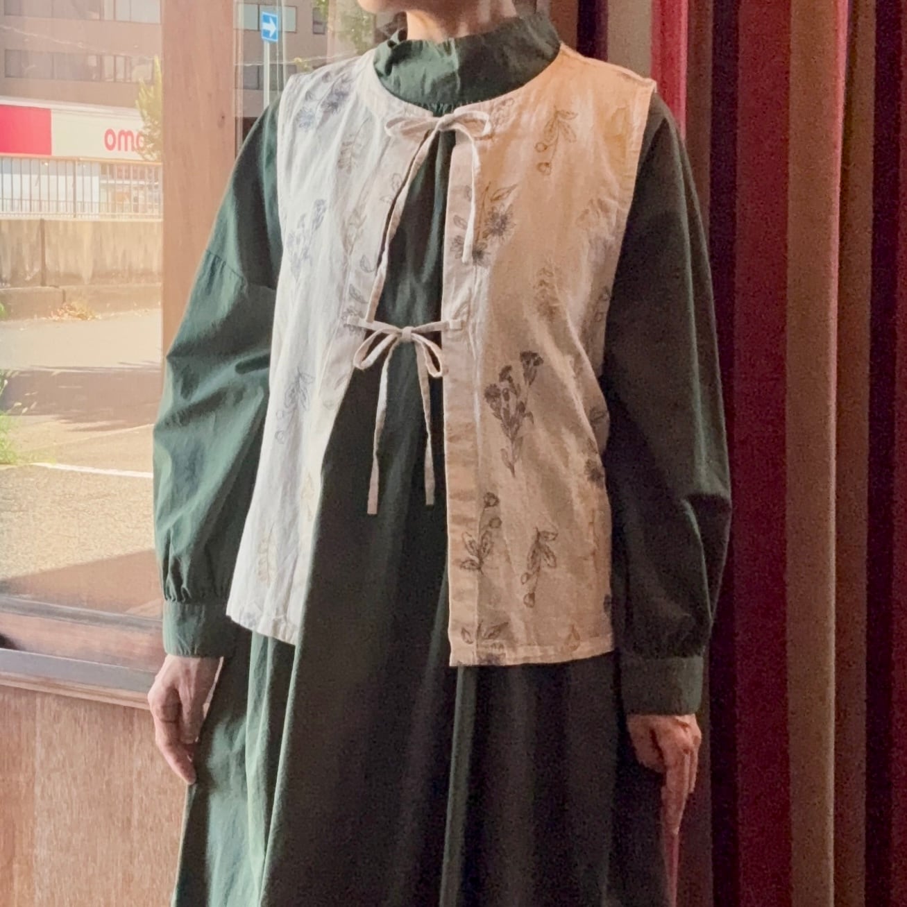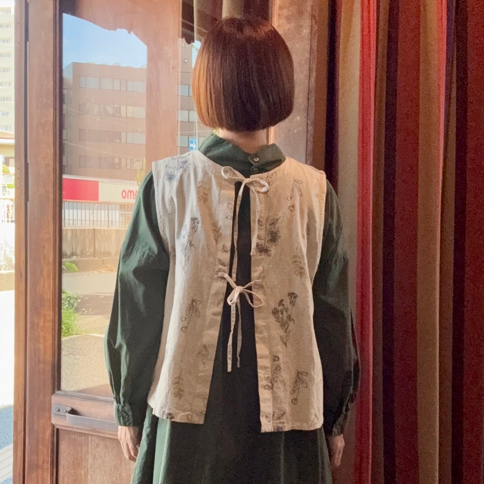 オリジナルのフラワー刺繍。前後2wayベストです。