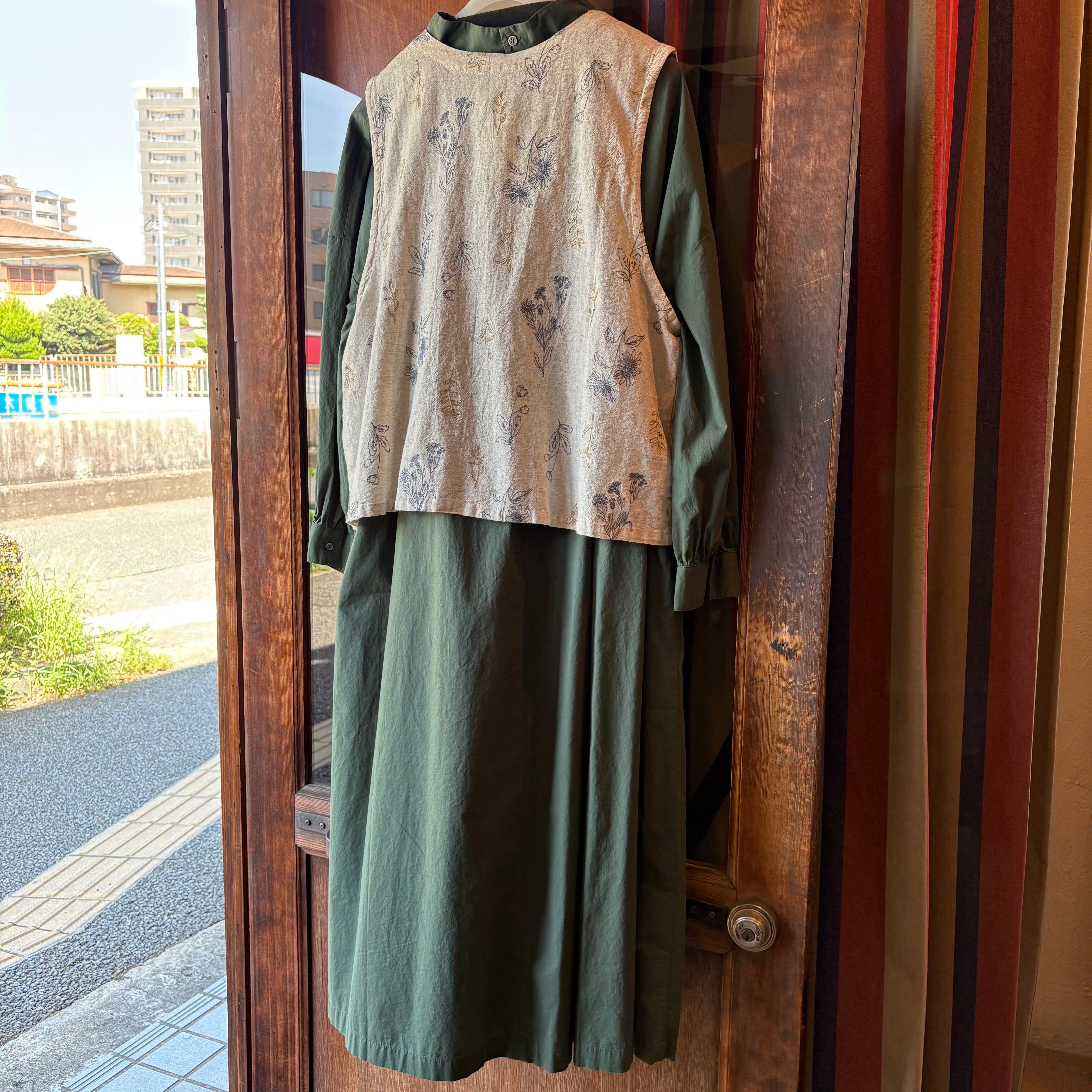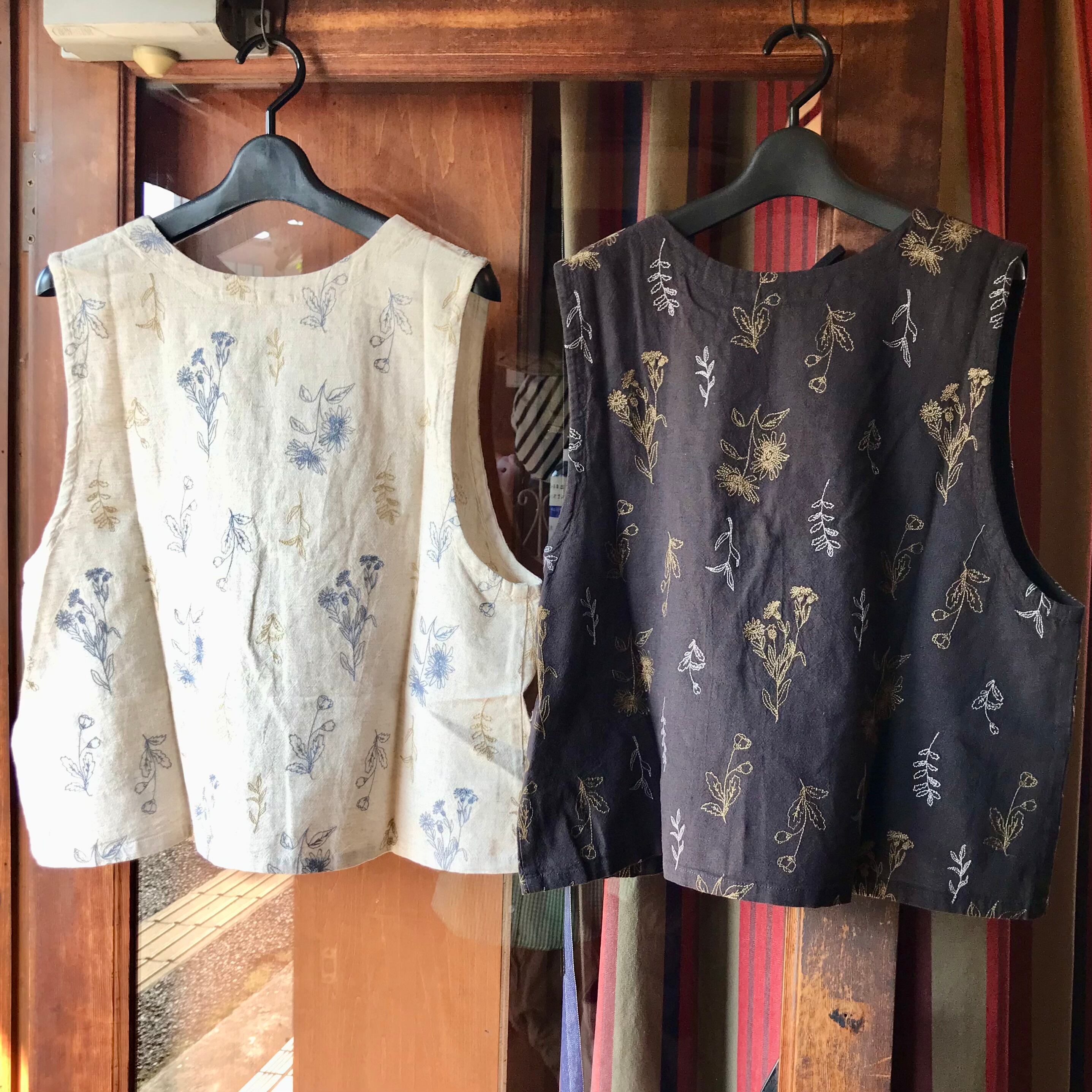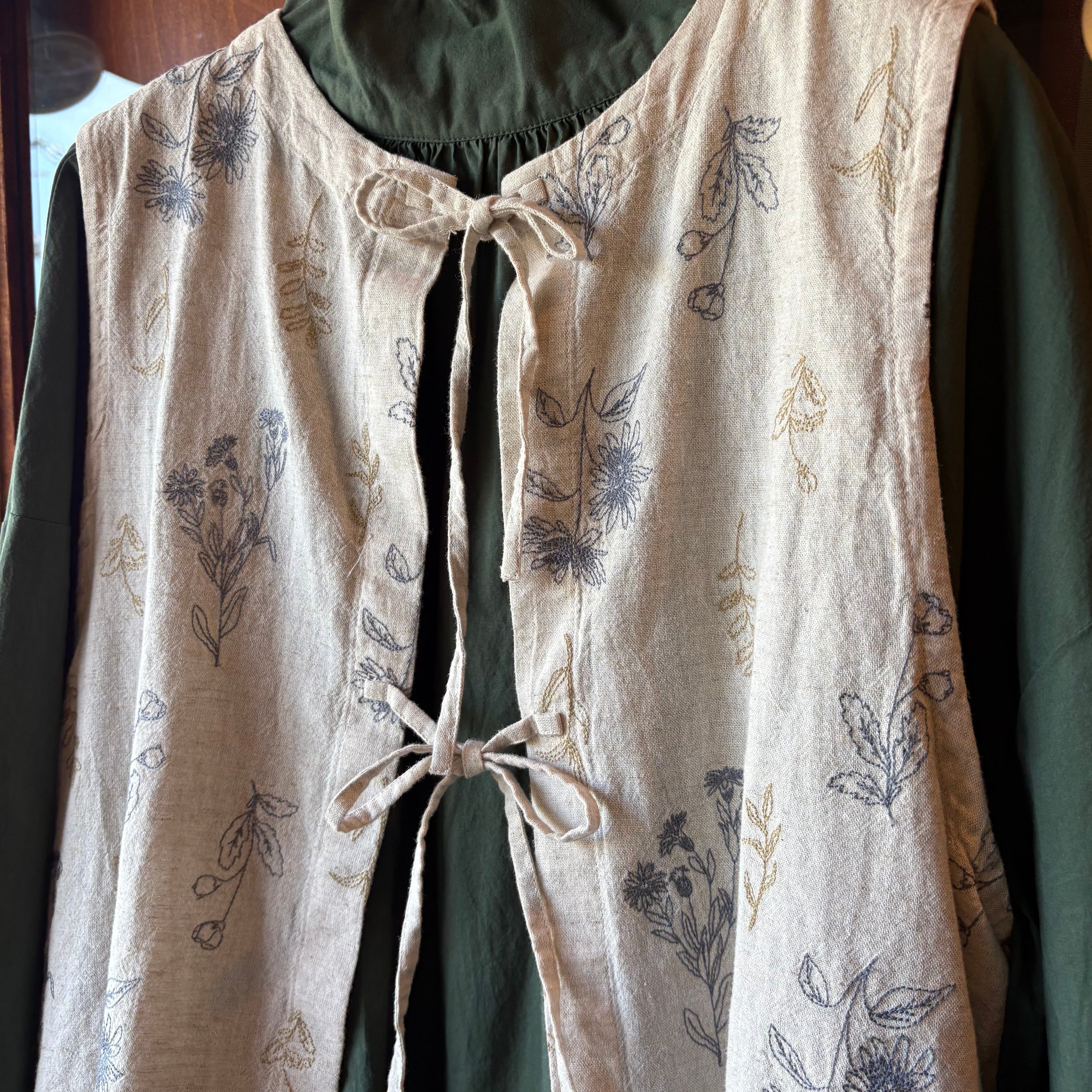 tukuroiのコットンリネンフラワー刺繍2wayベスト