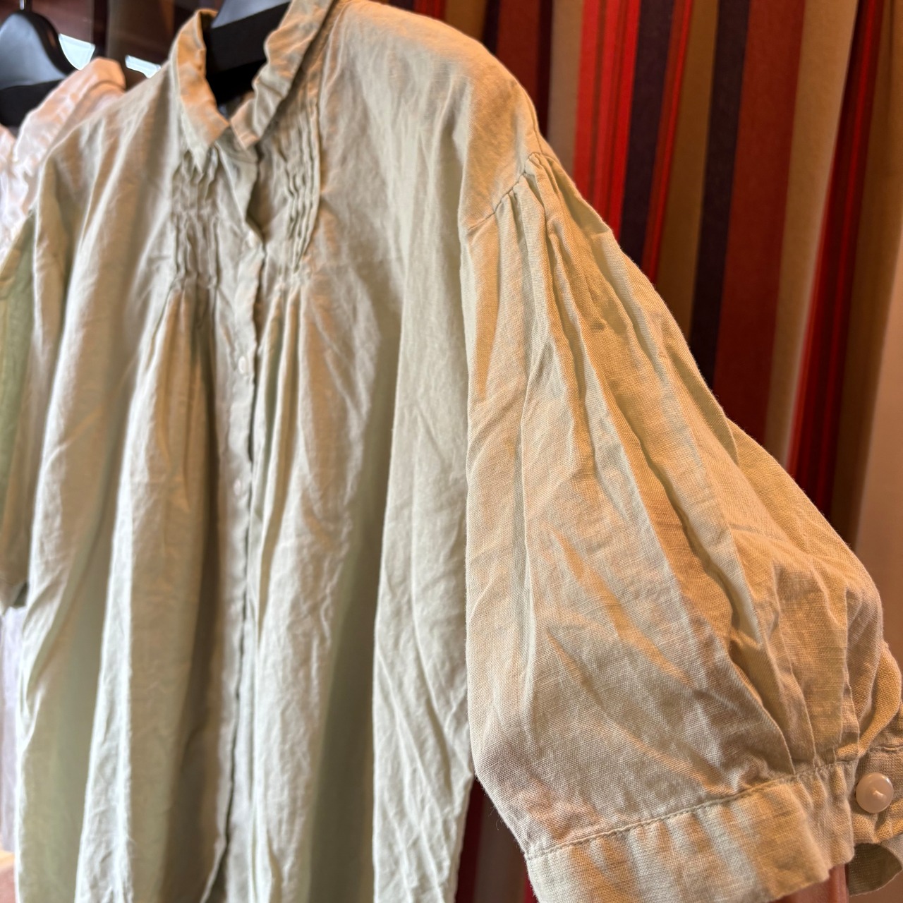 tukuroiのコットンリネンガーゼピンタック6分袖ブラウス。