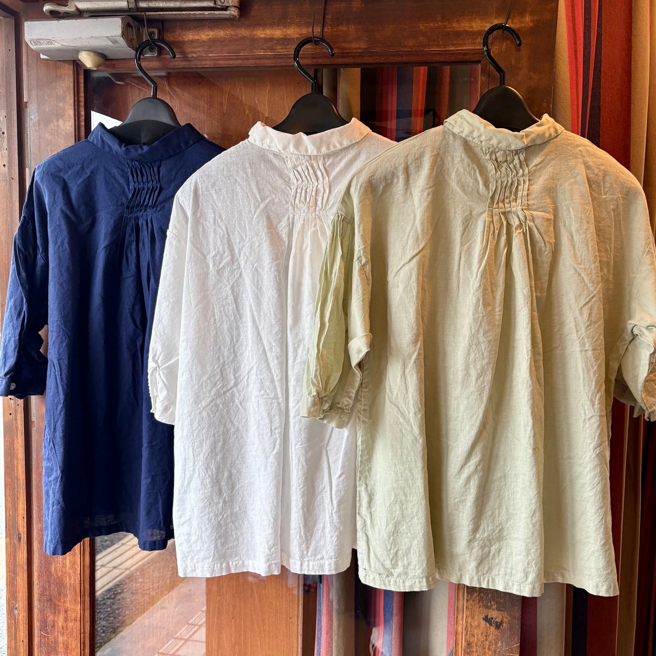 tukuroiのコットンリネンガーゼピンタック6分袖ブラウス。