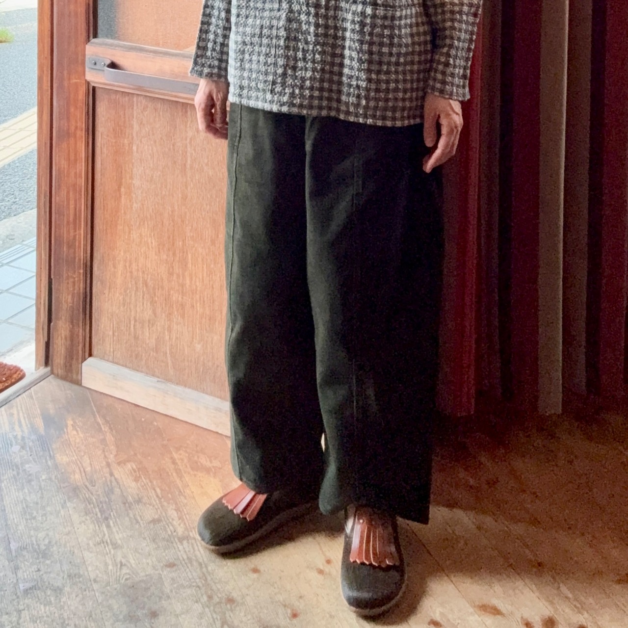 nachukaraの太畝コーデュロイワイドパンツ・ダークグリーン