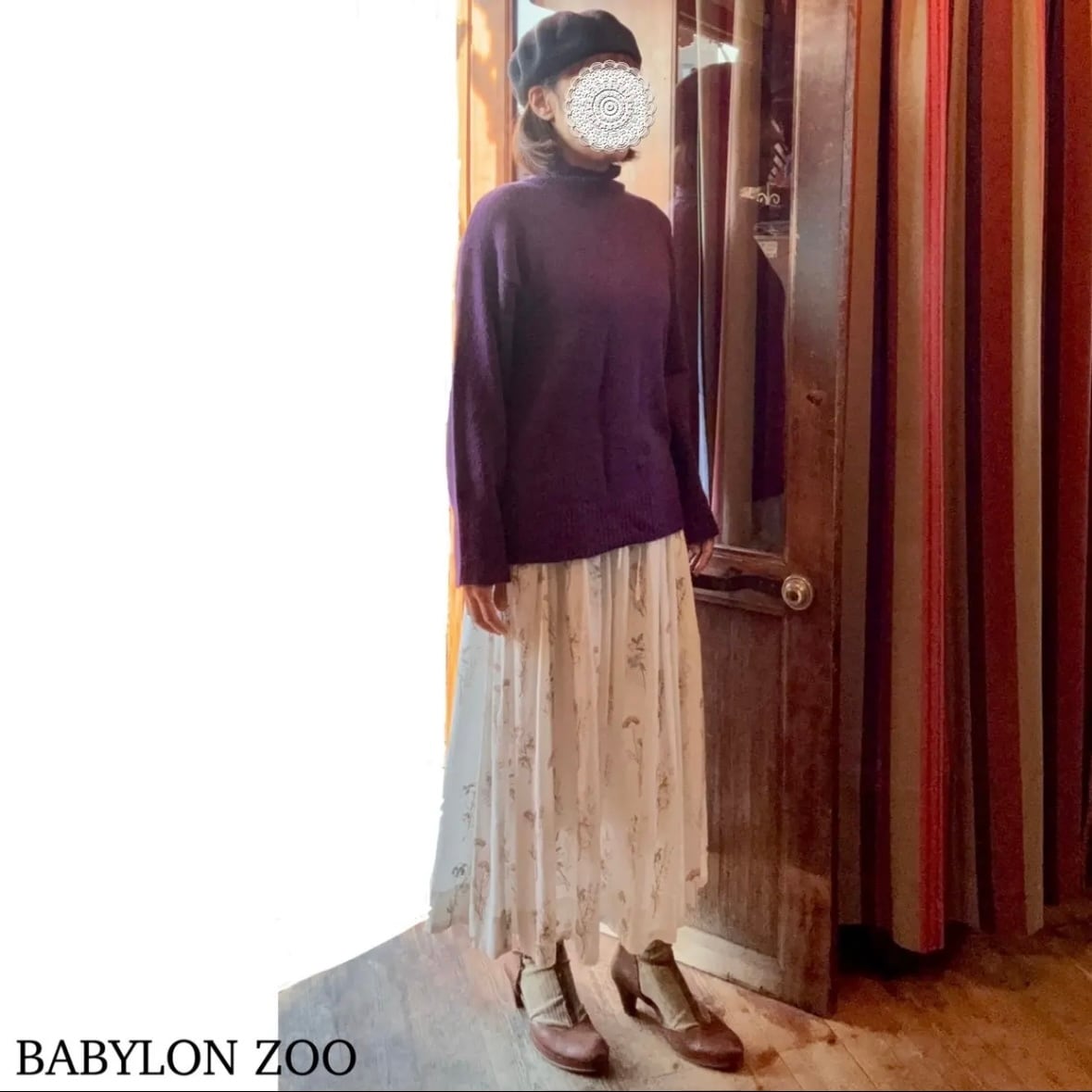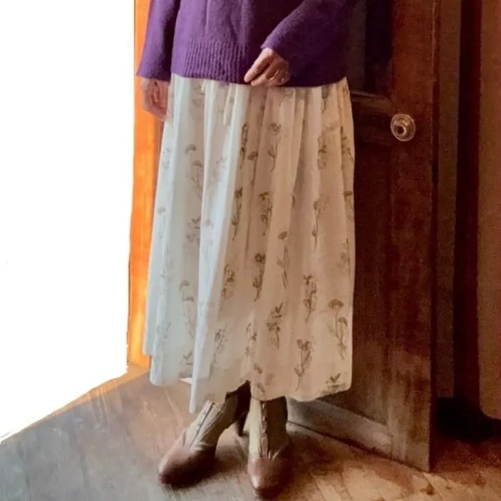 総柄花刺繍のロングスカート。