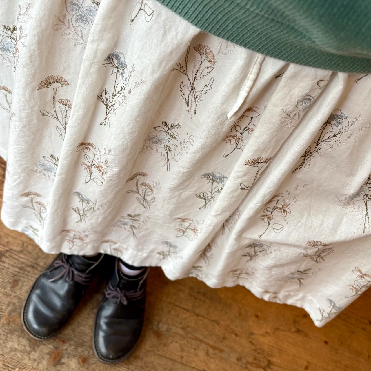 tukuroiのフラワー刺繍ロングスカート・オフホワイト