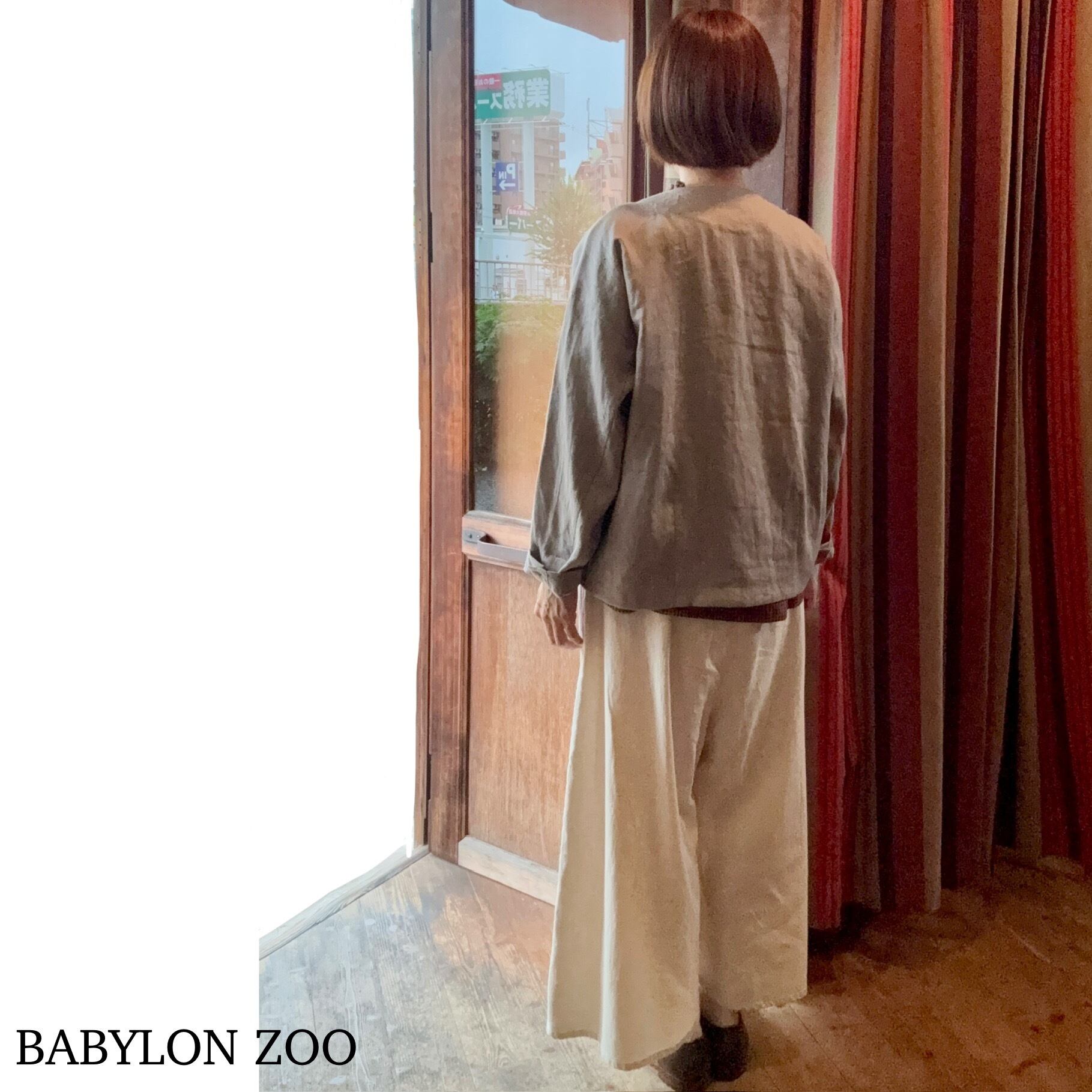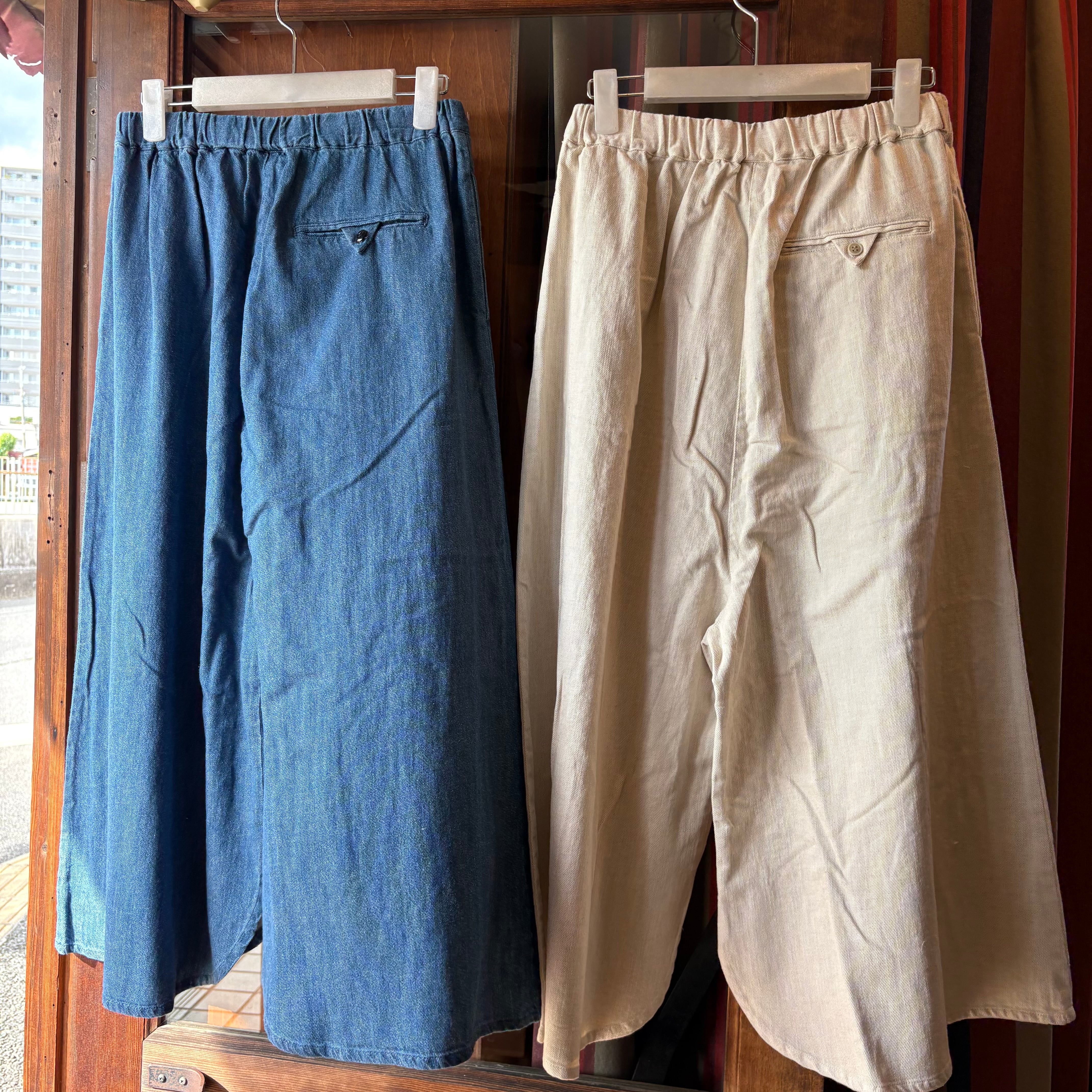 nachukaraのコットンリネンデニム裾ラウンドスリットパンツ。