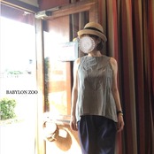 フロントから見ると一見ベーシックなノースリーブブラウスですが、後ろ肩から両脇にかけてタックが入ったようなディテールになっています。