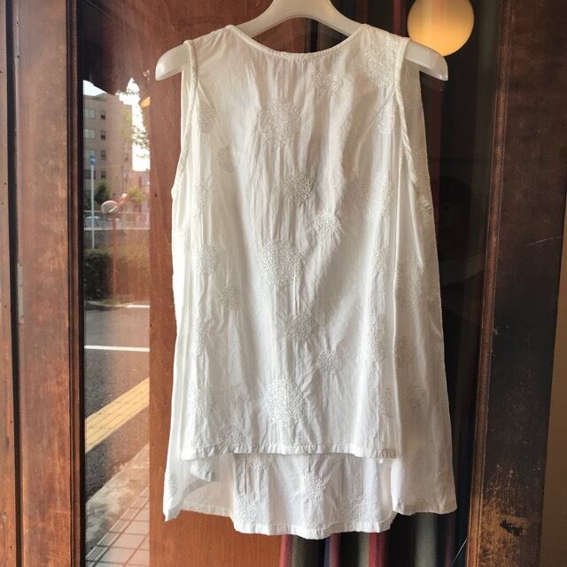 SORTEのエンブロイダリーコットンローン ドレープノースリブラウスです。