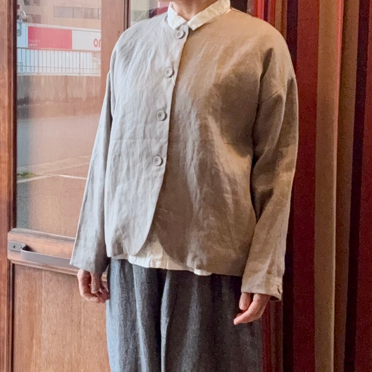 tukuroiのリネンノーカラージャケット
