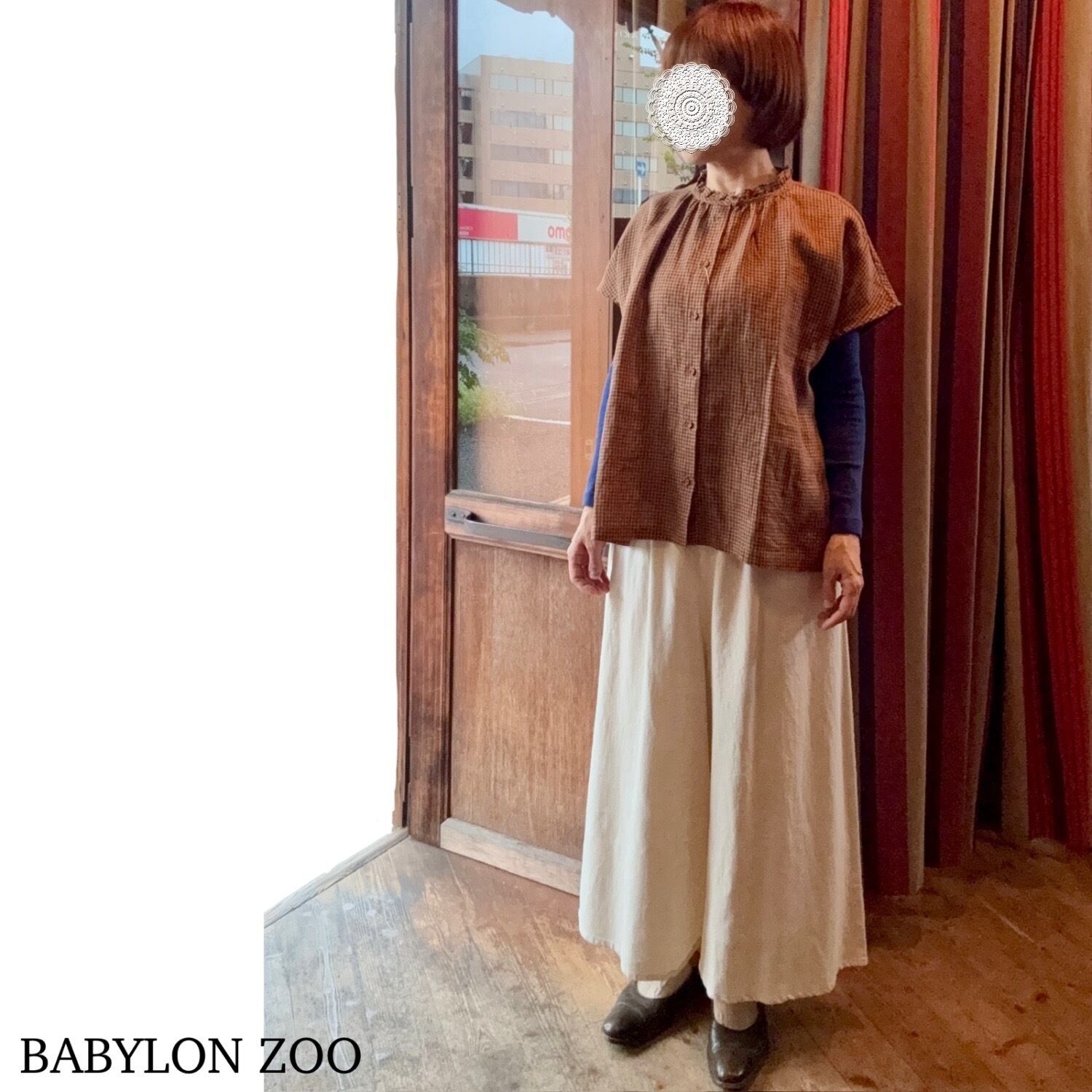 blue willowのリネンギンガムチェックフリルブラウスです。