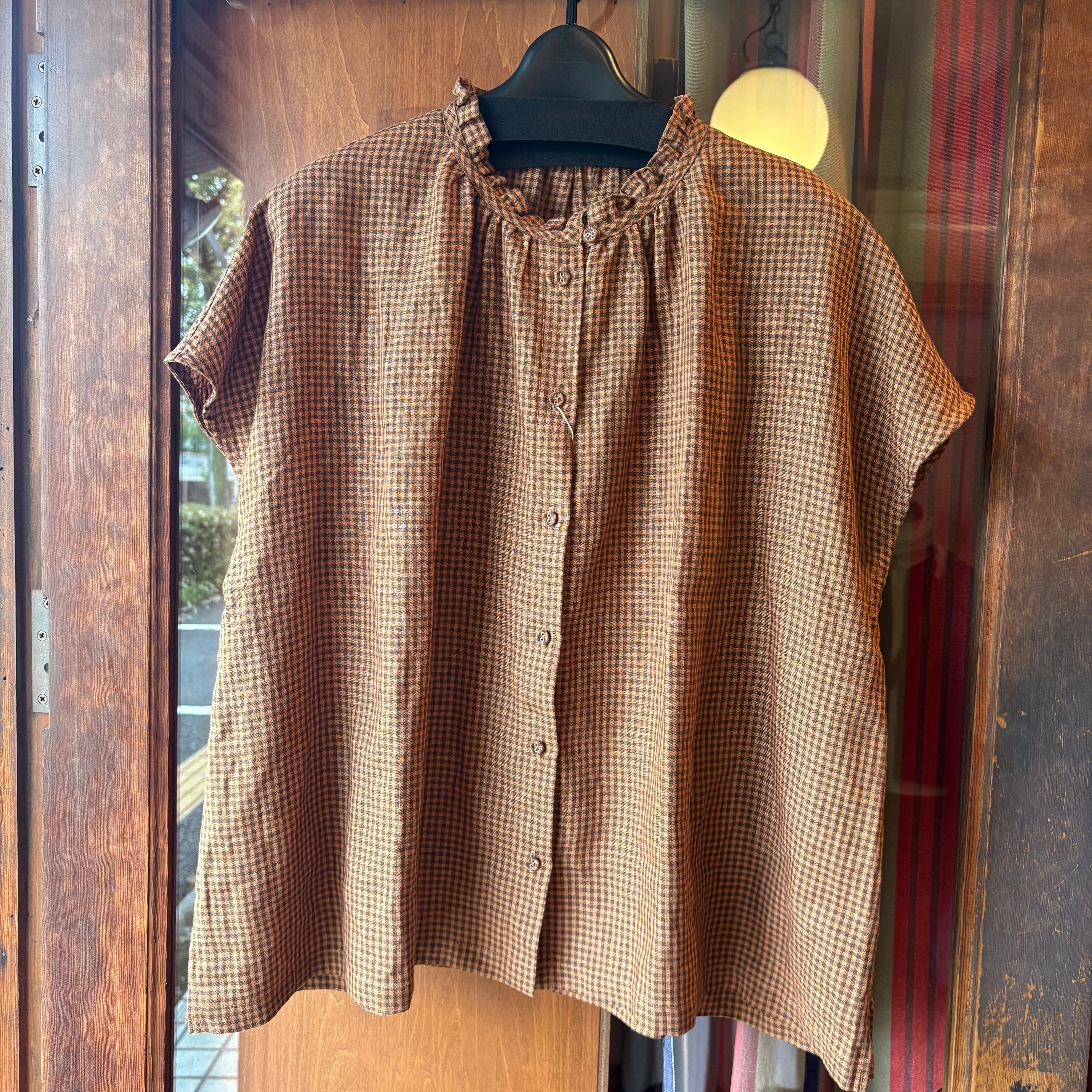 blue willowのリネンギンガムチェックフリルブラウスです。