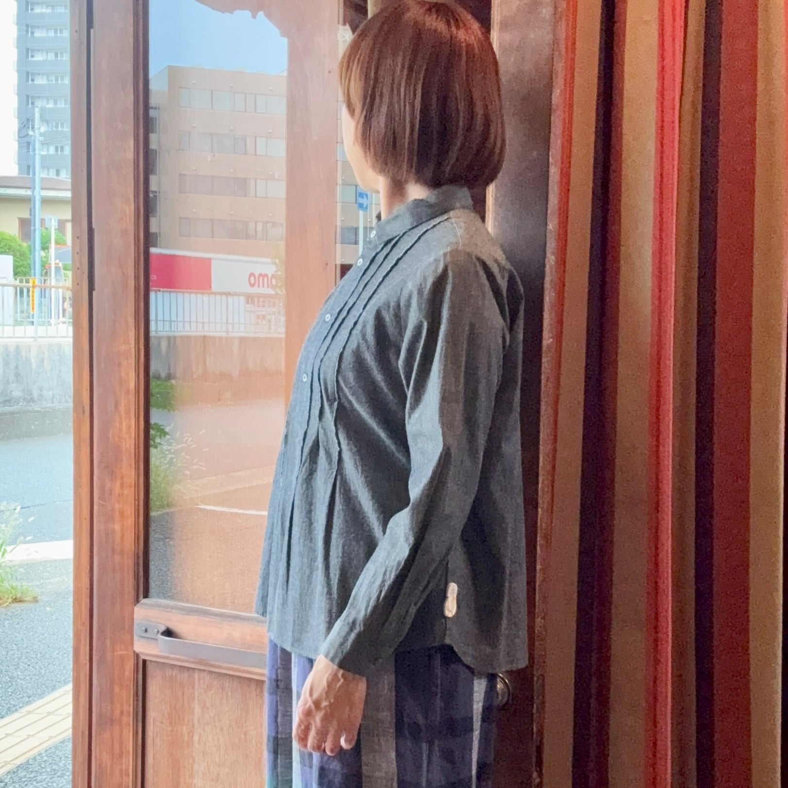 vmのインディゴ染めフロントタックブラウス