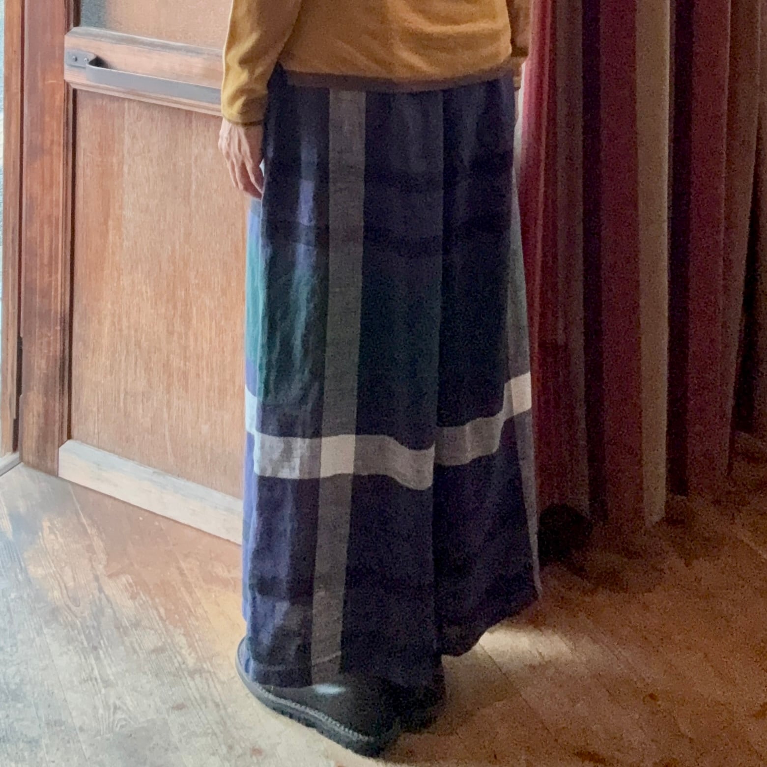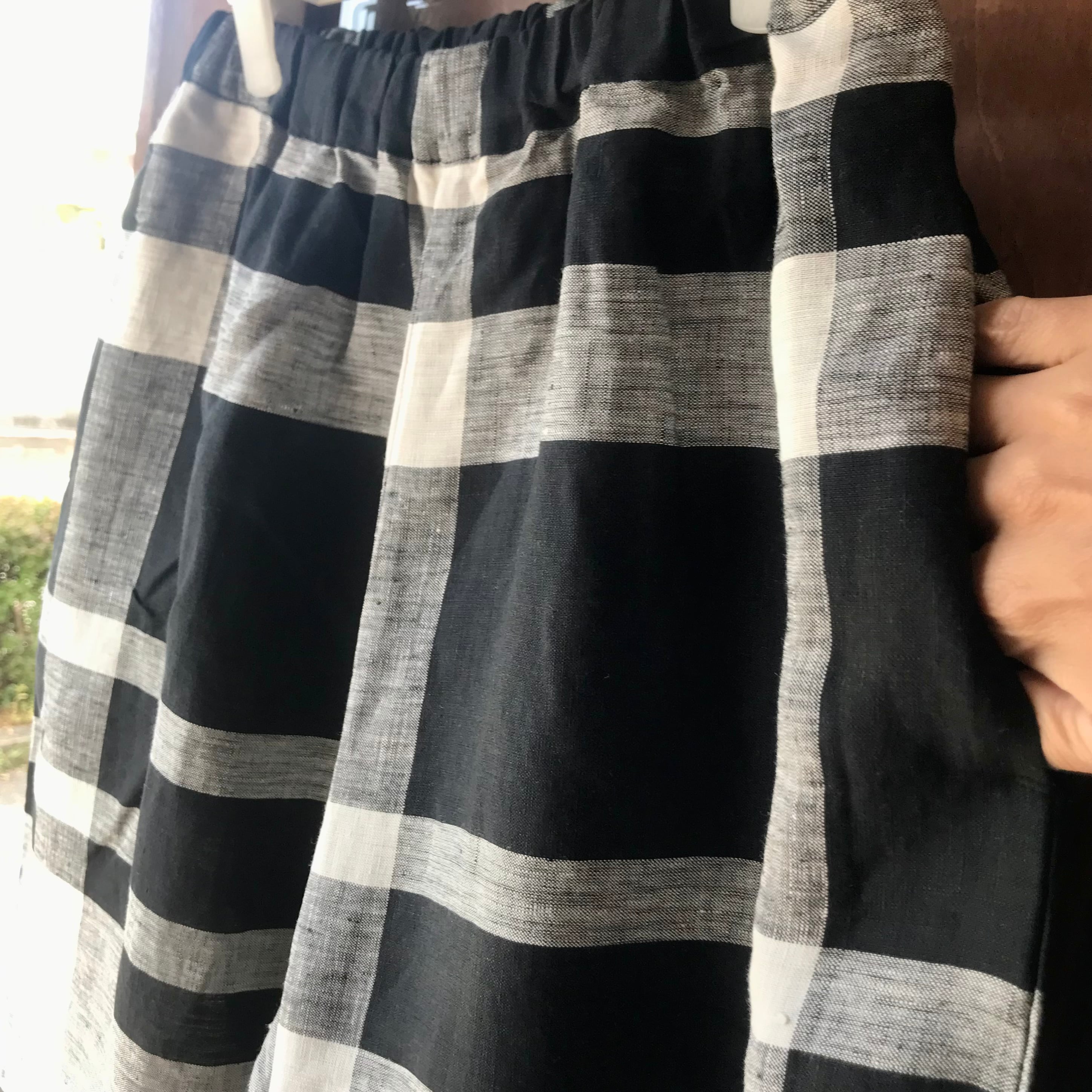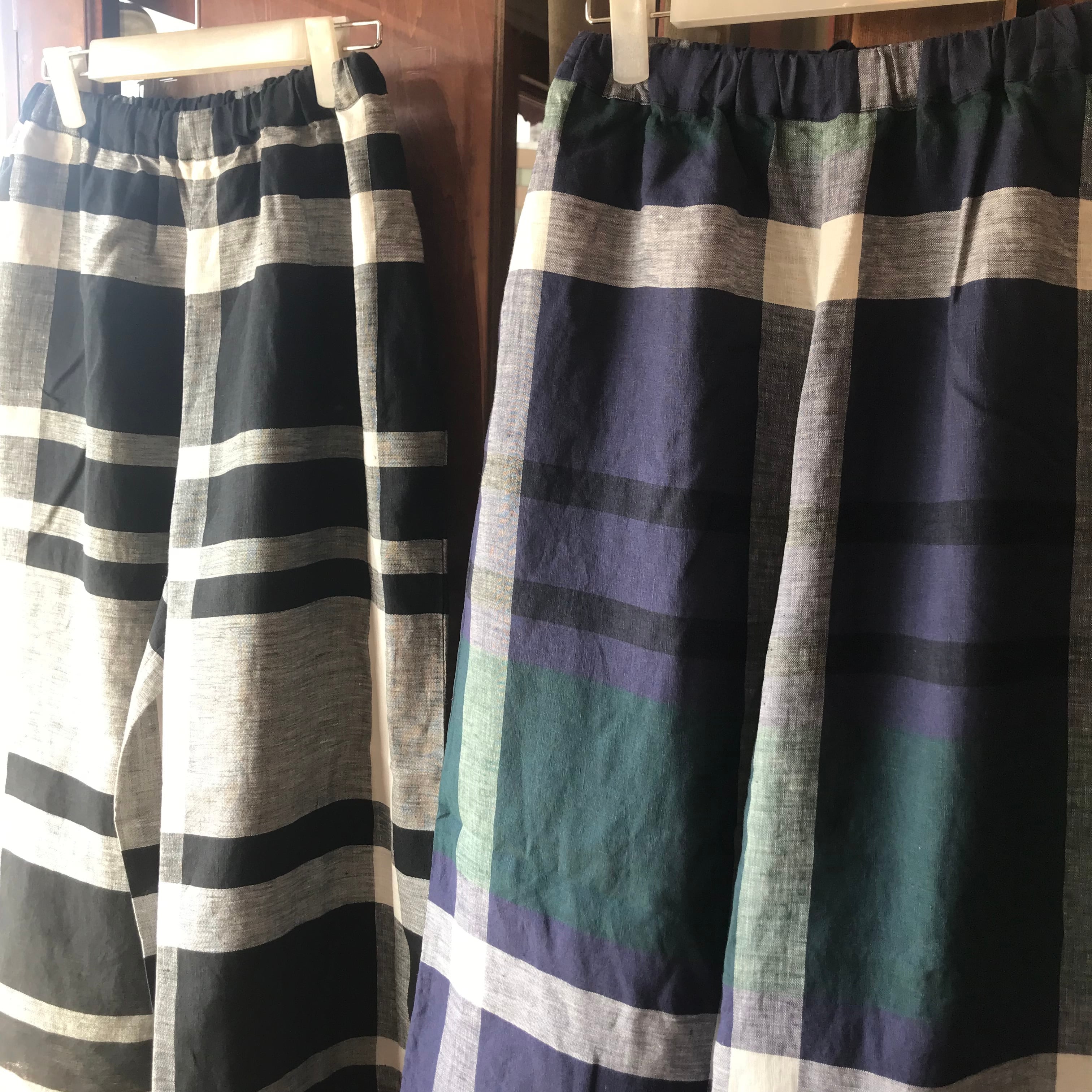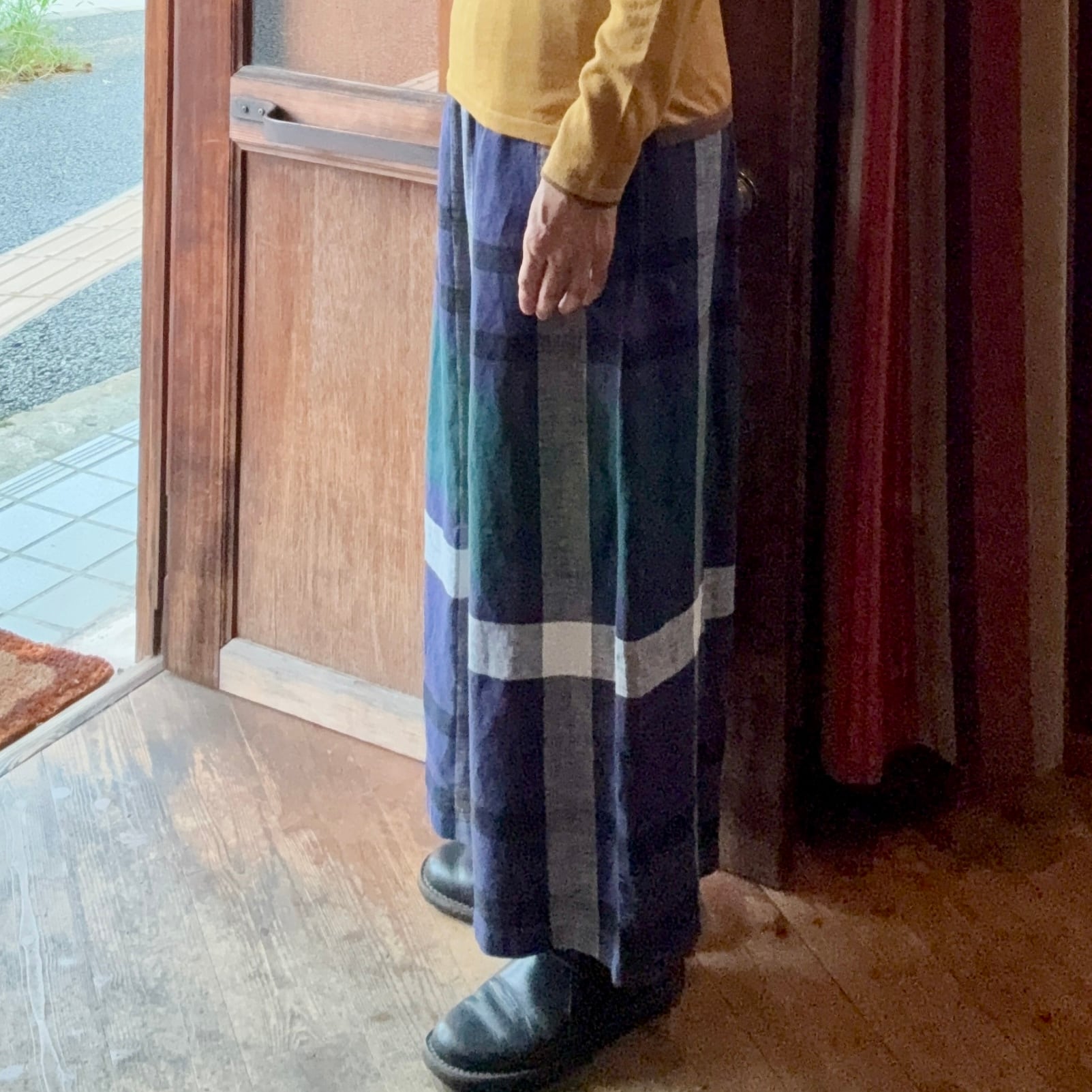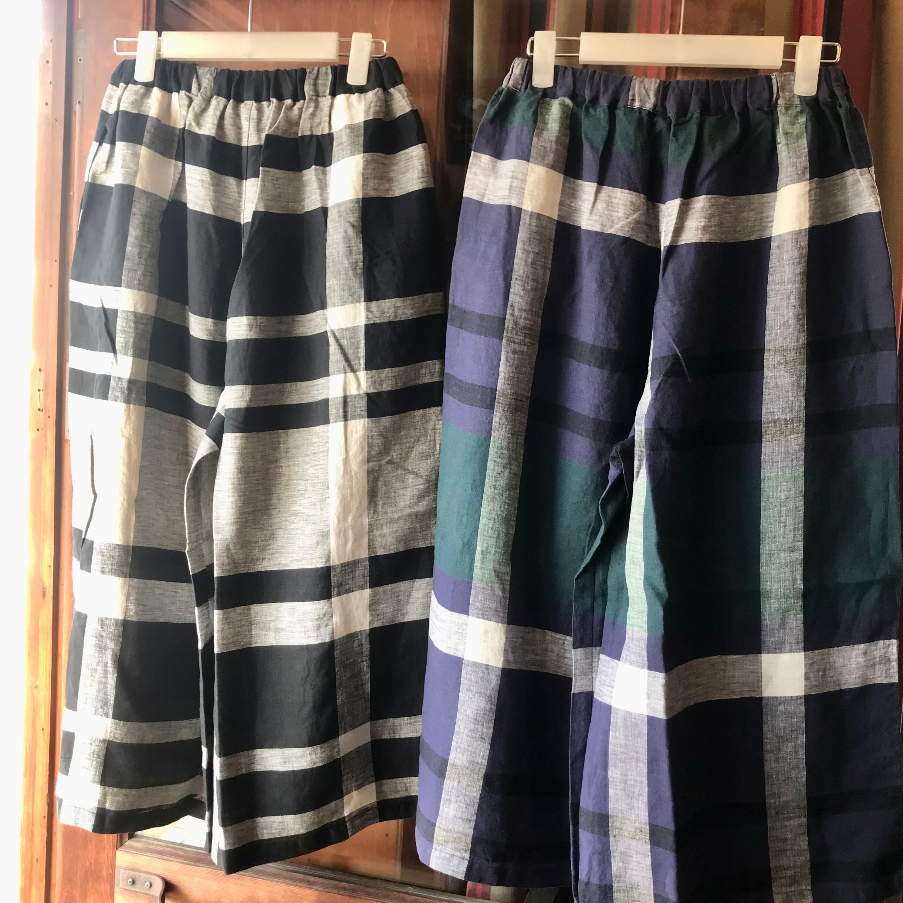 blue willowのリネンパネルチェックワイドパンツ・ネイビー