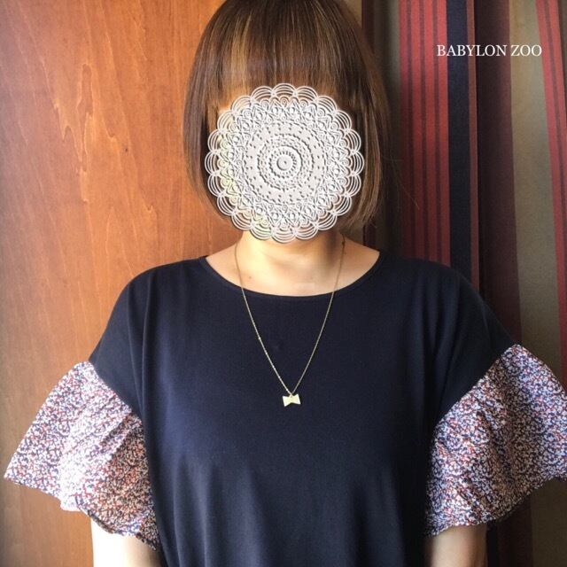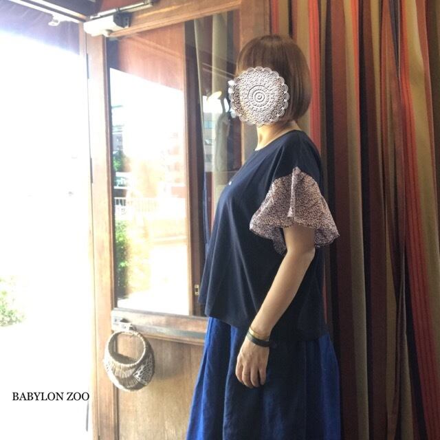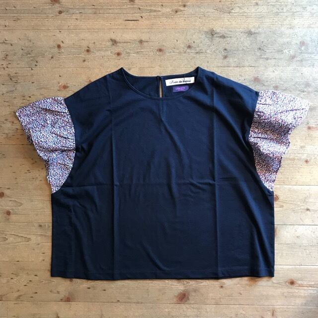 LIBERTY社のプリント生地を袖につかったギャザースリーブカットソー。