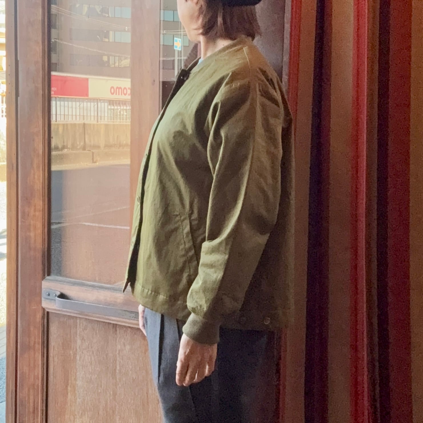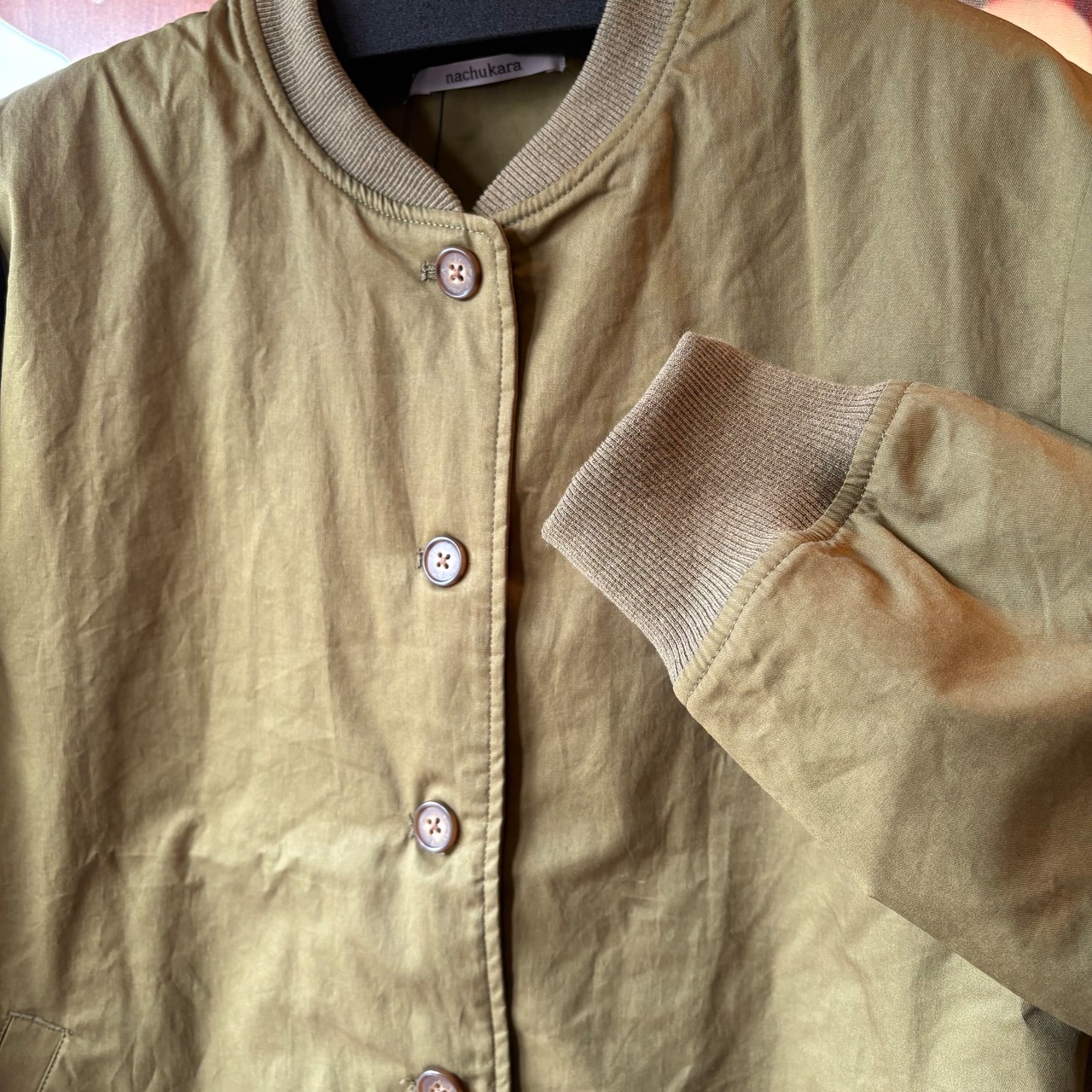 nachukaraのライトツイル 薄中綿リブ衿ブルゾン・カーキ