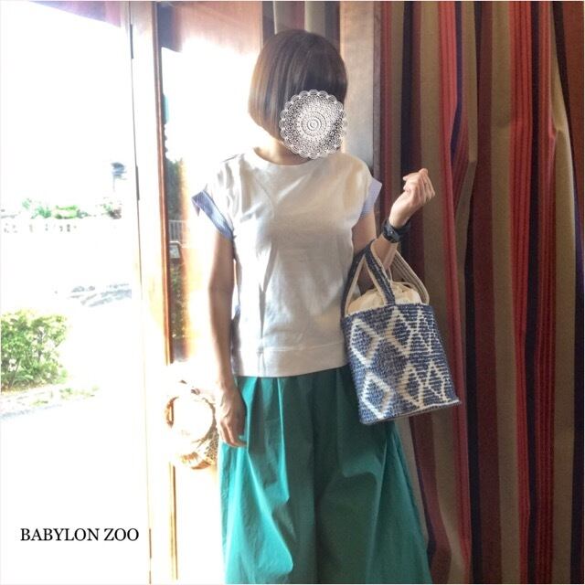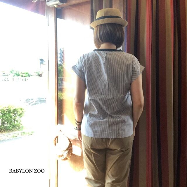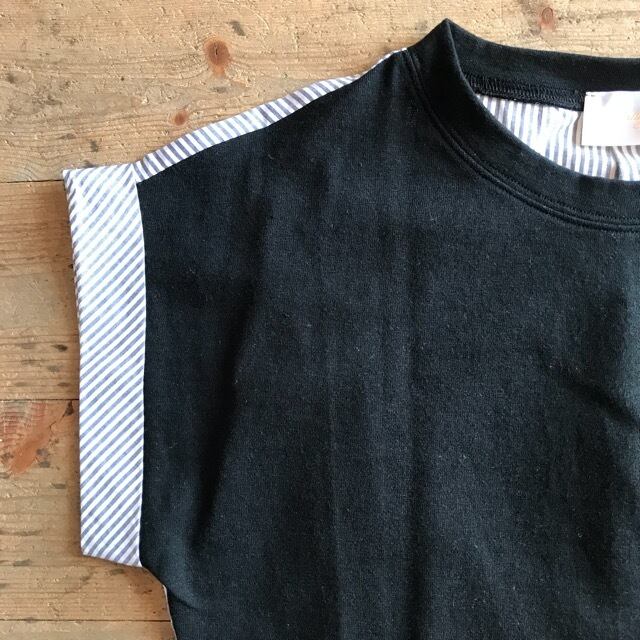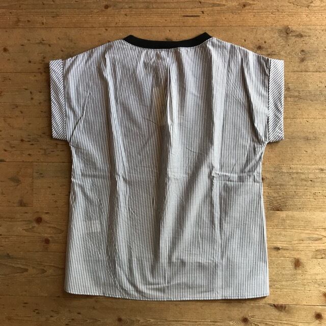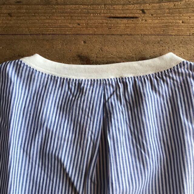 袖口や脇の部分にもストライプ生地が見えて、とっても可愛いデザインとなります。