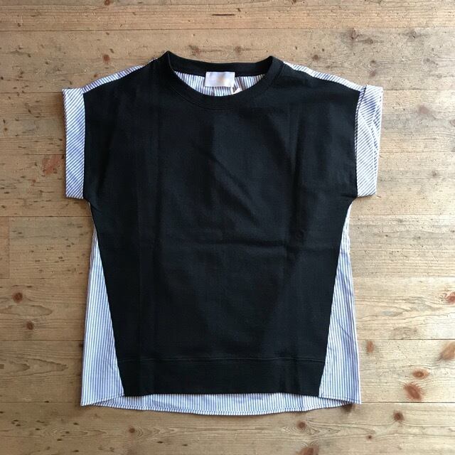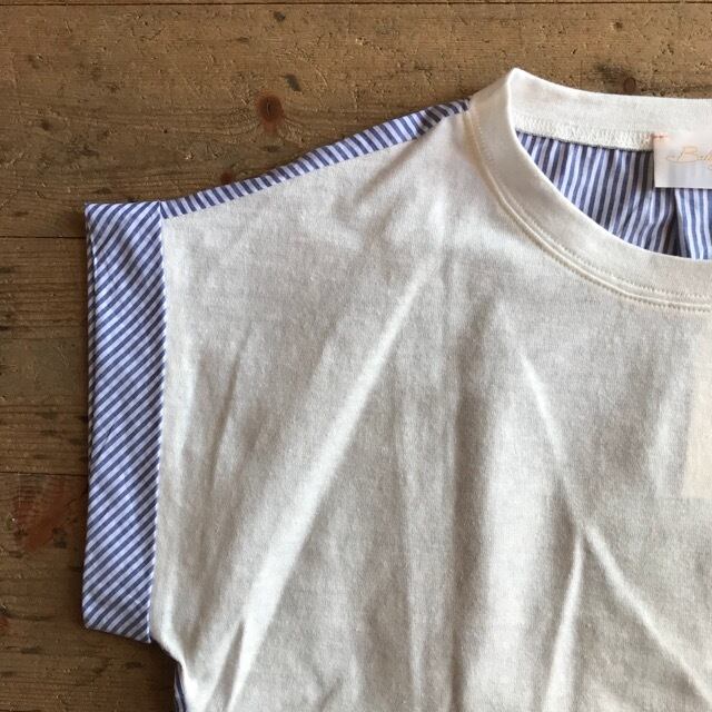 背中部分がシャツ生地になった清涼感のあるカットソー。