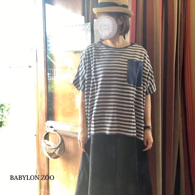 nachukaraのリネンジャージーボーダー ワイドプルオーバーです。