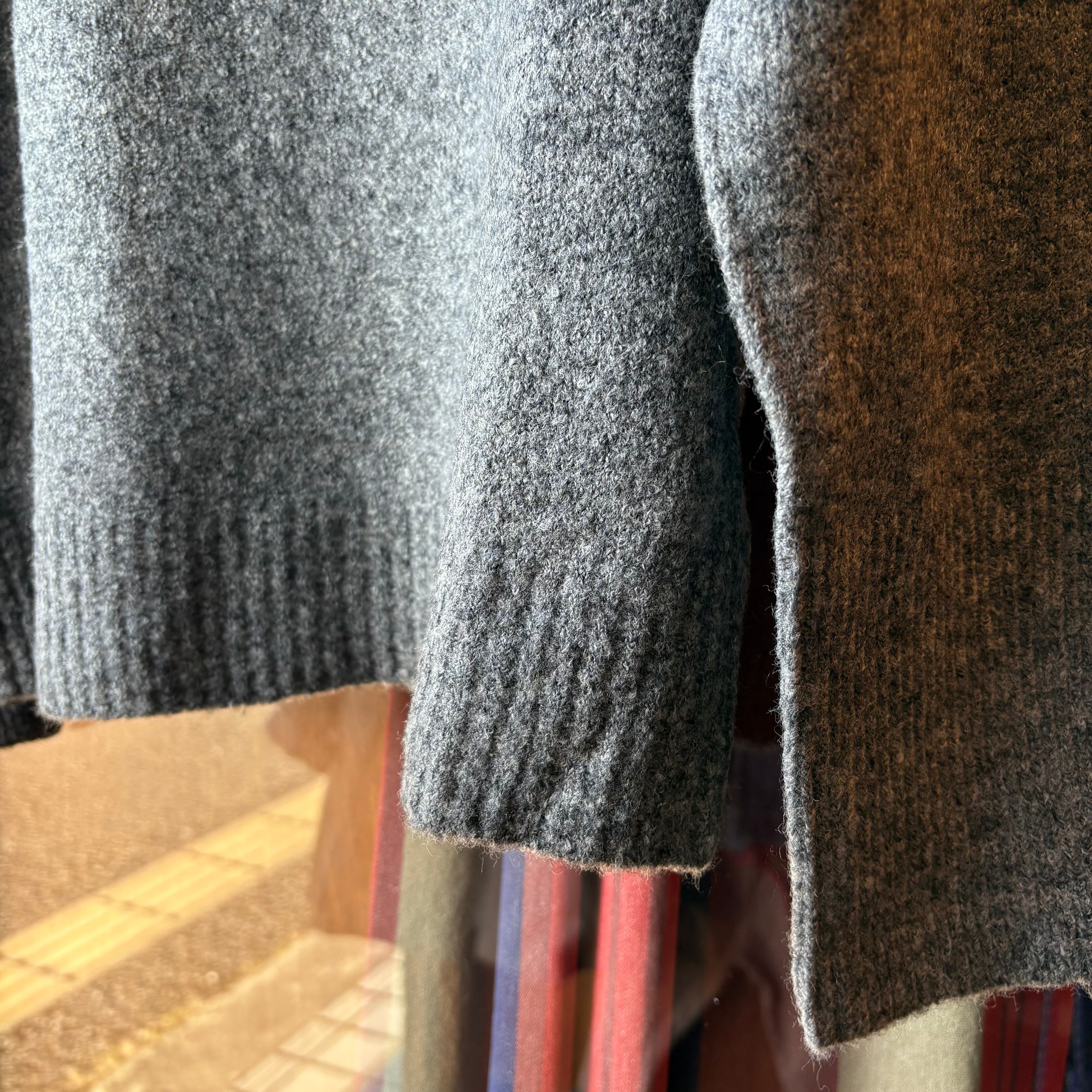 ドロップショルダー、大き過ぎず小さ過ぎずのややゆとりのあるシルエットでベーシックなニットとなります。